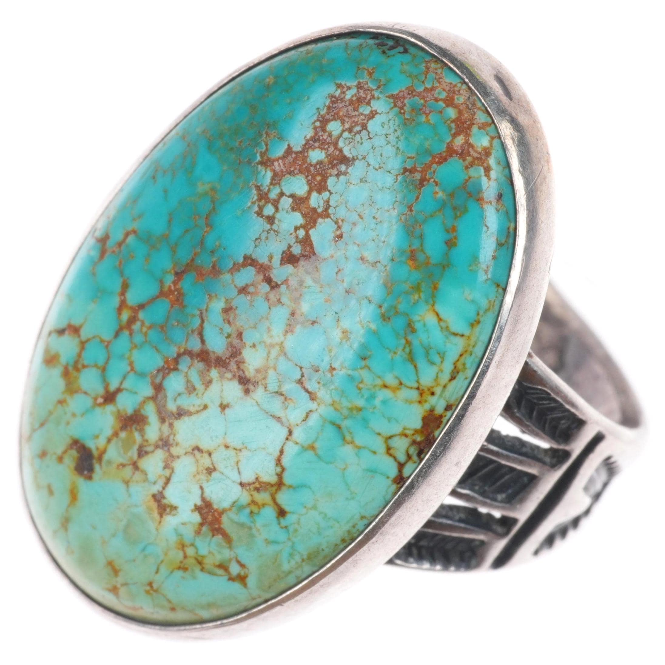 sz8 c1940 Vintage Navajo sterling silver snake/arrow red web turquoise ring. Tested and guaranteed solid sterling silver, circa second quarter... Read more