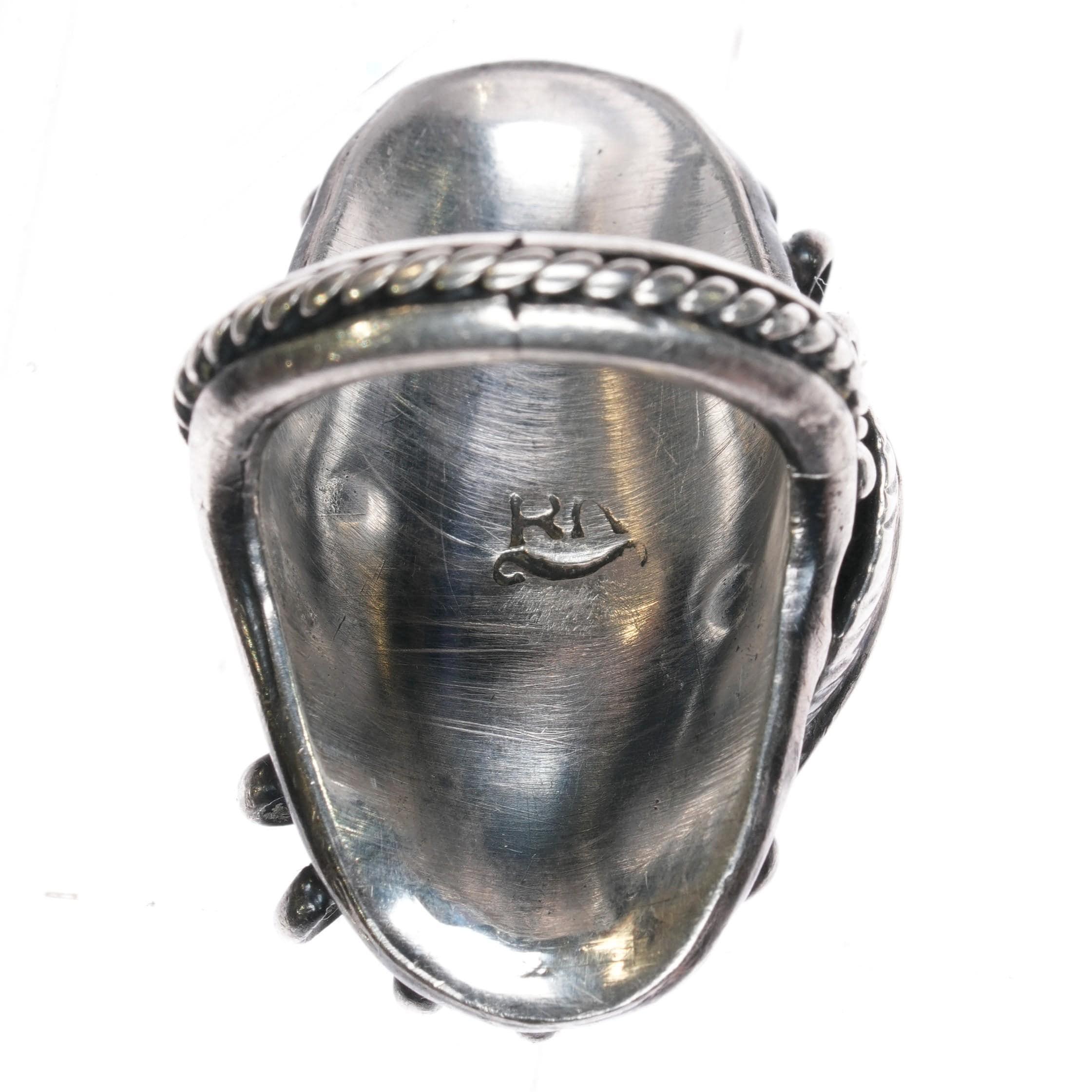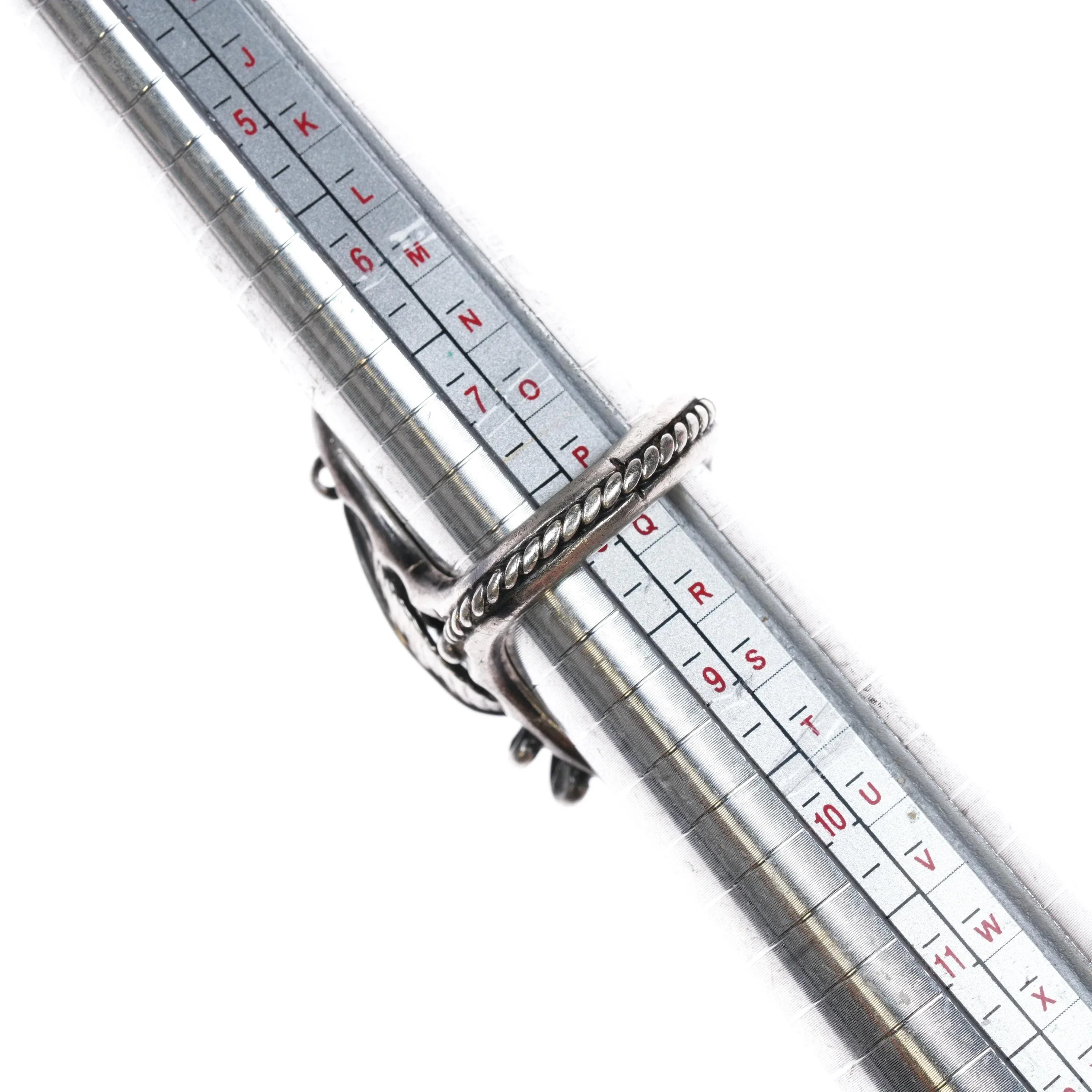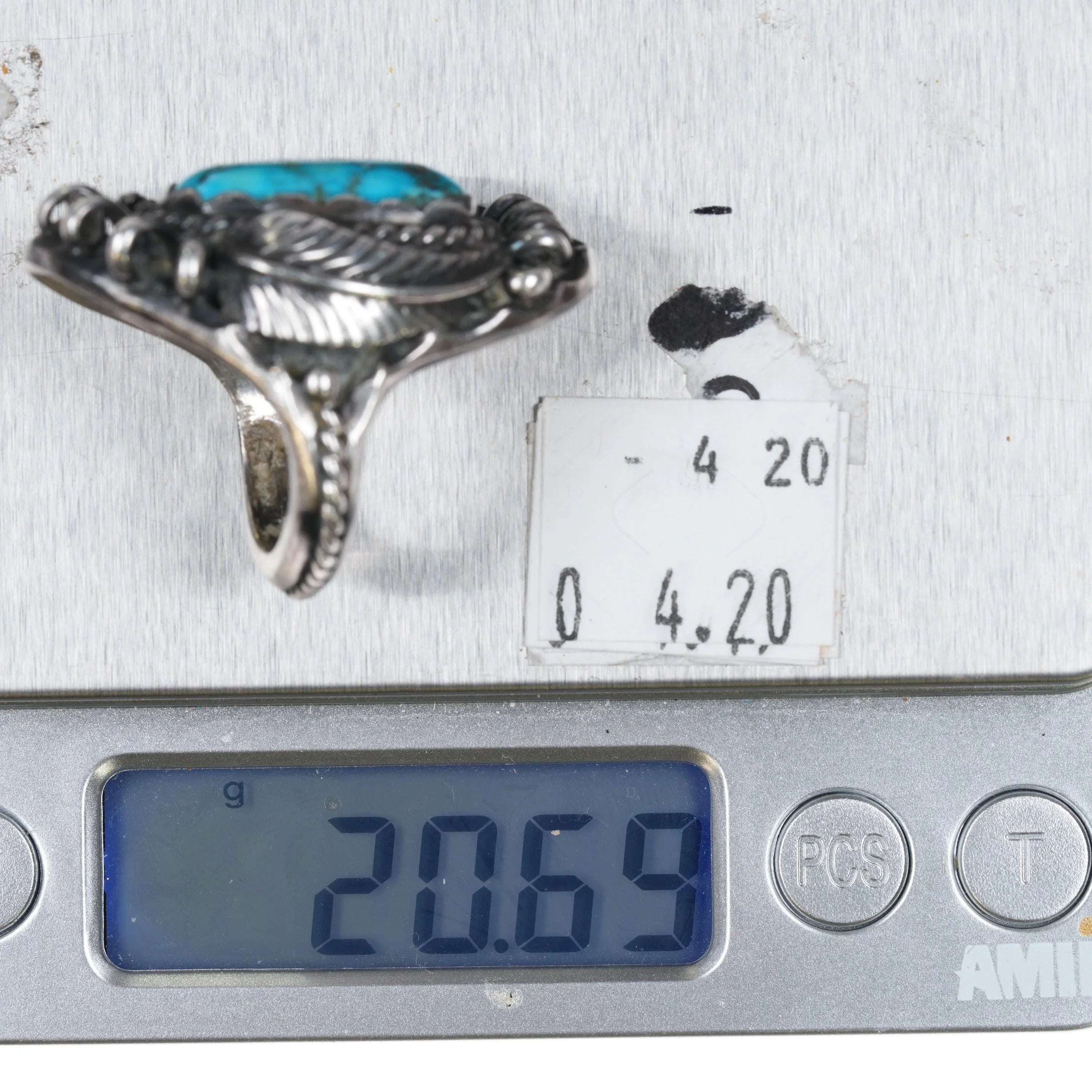 sz8 c1970's Navajo sterling silver feather ring with nice turquoise