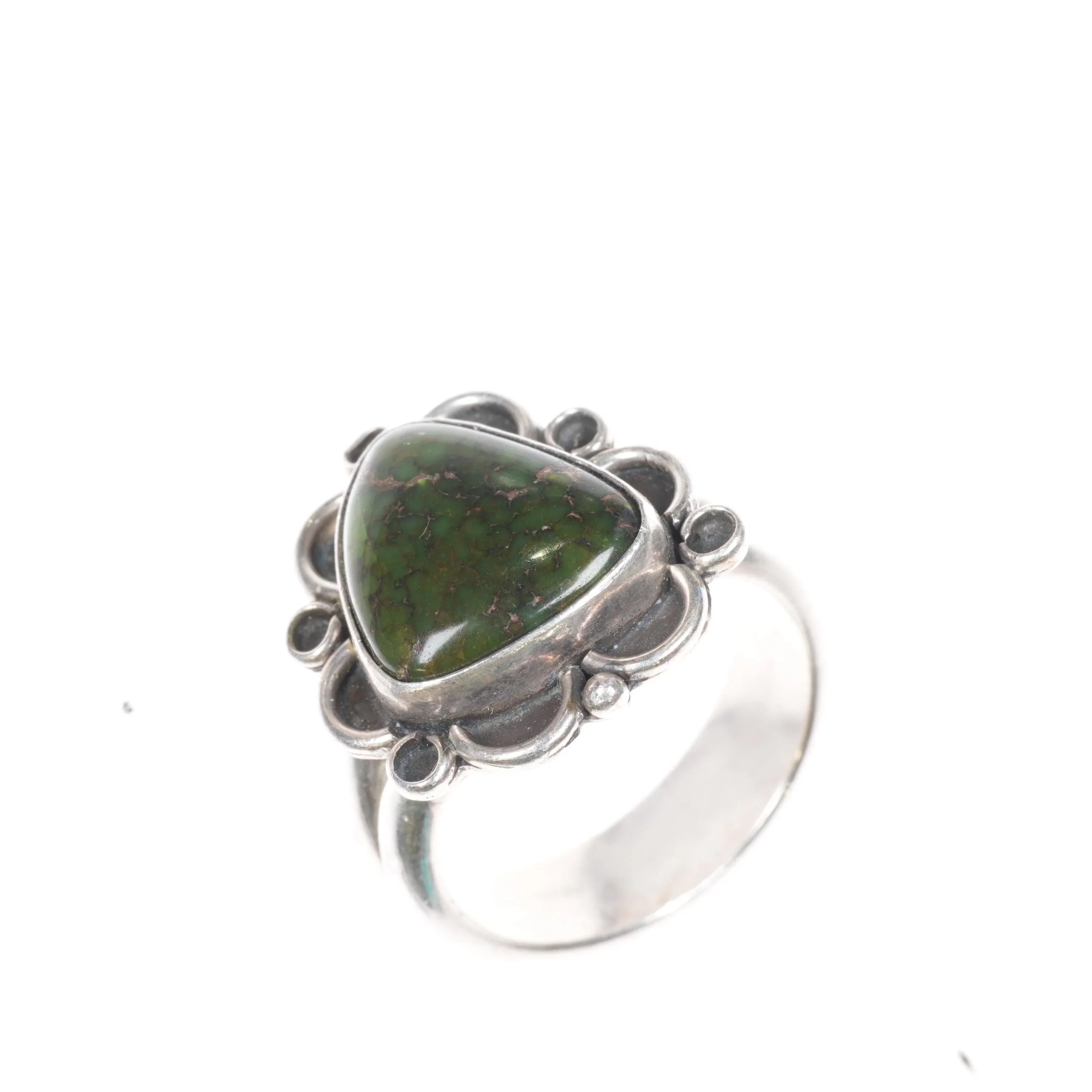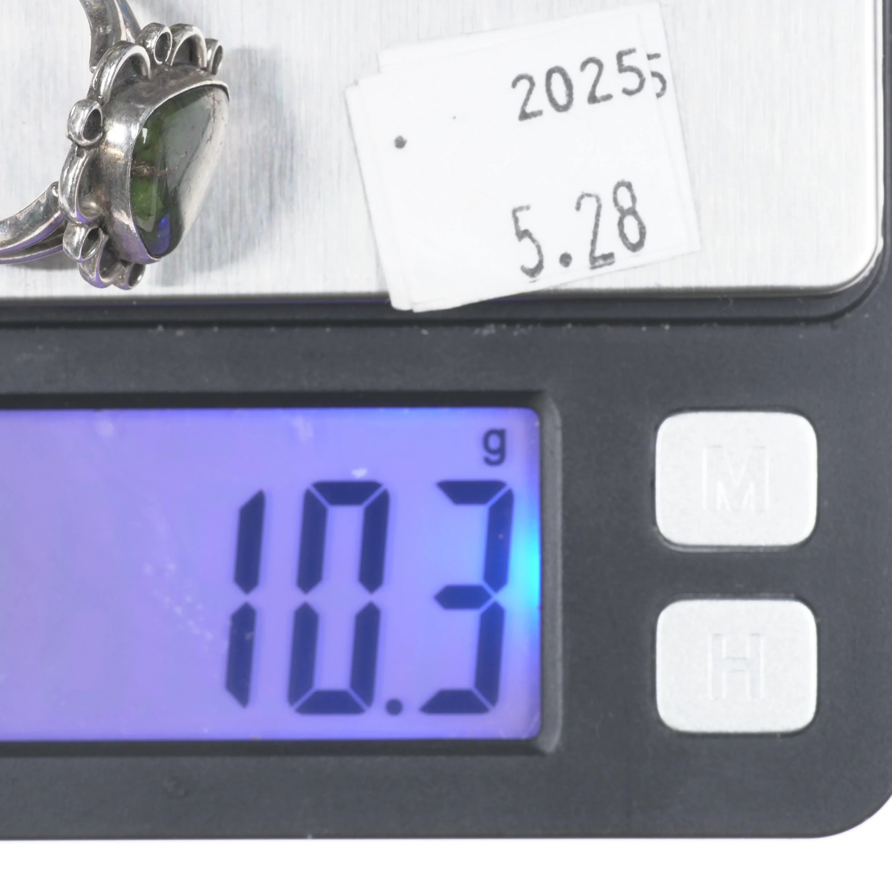 Sz8 SD Navajo green spiderweb Variscite sterling silver ring. Weight and measurements in pictures. Solid sterling silver, with unidentified mark shown, no issues.