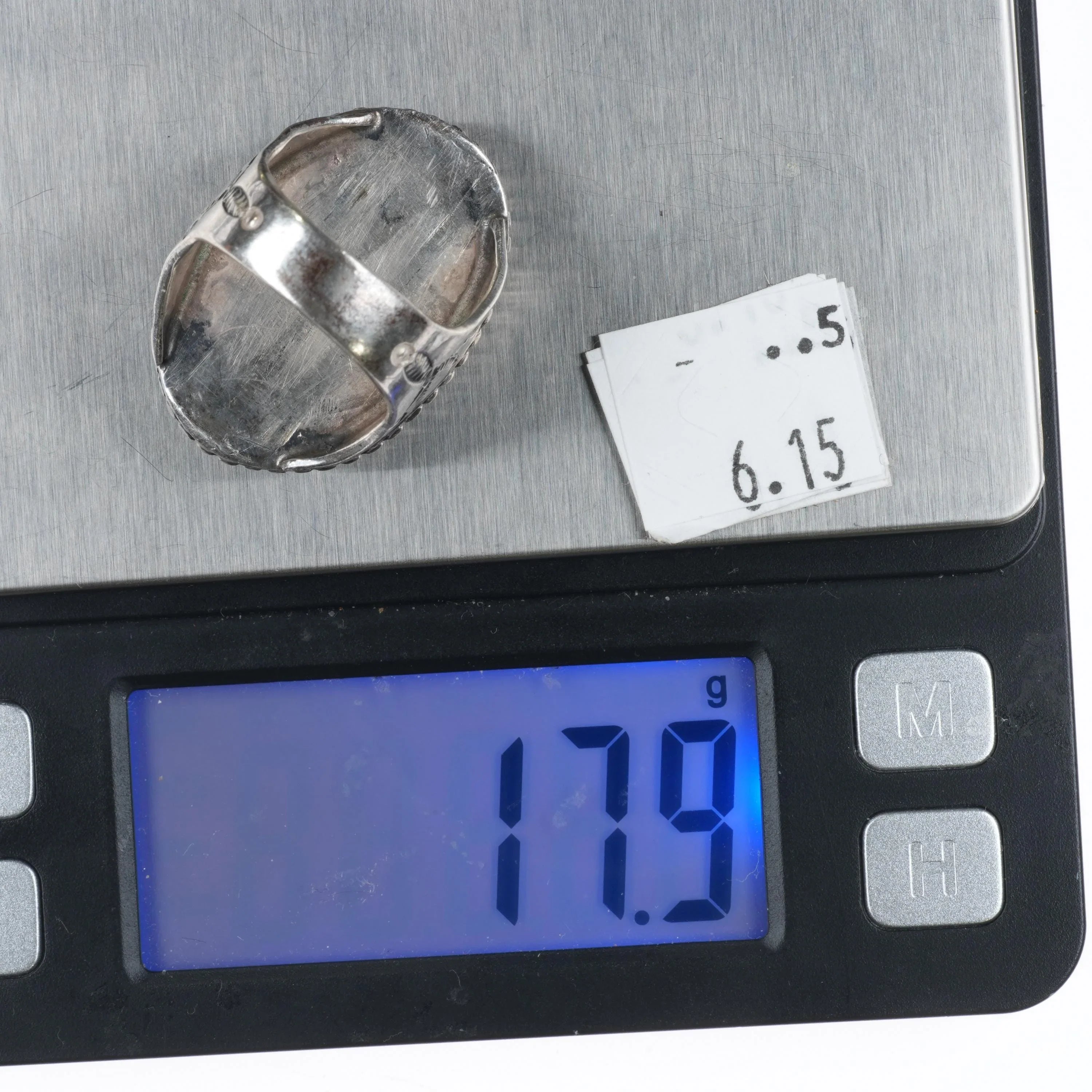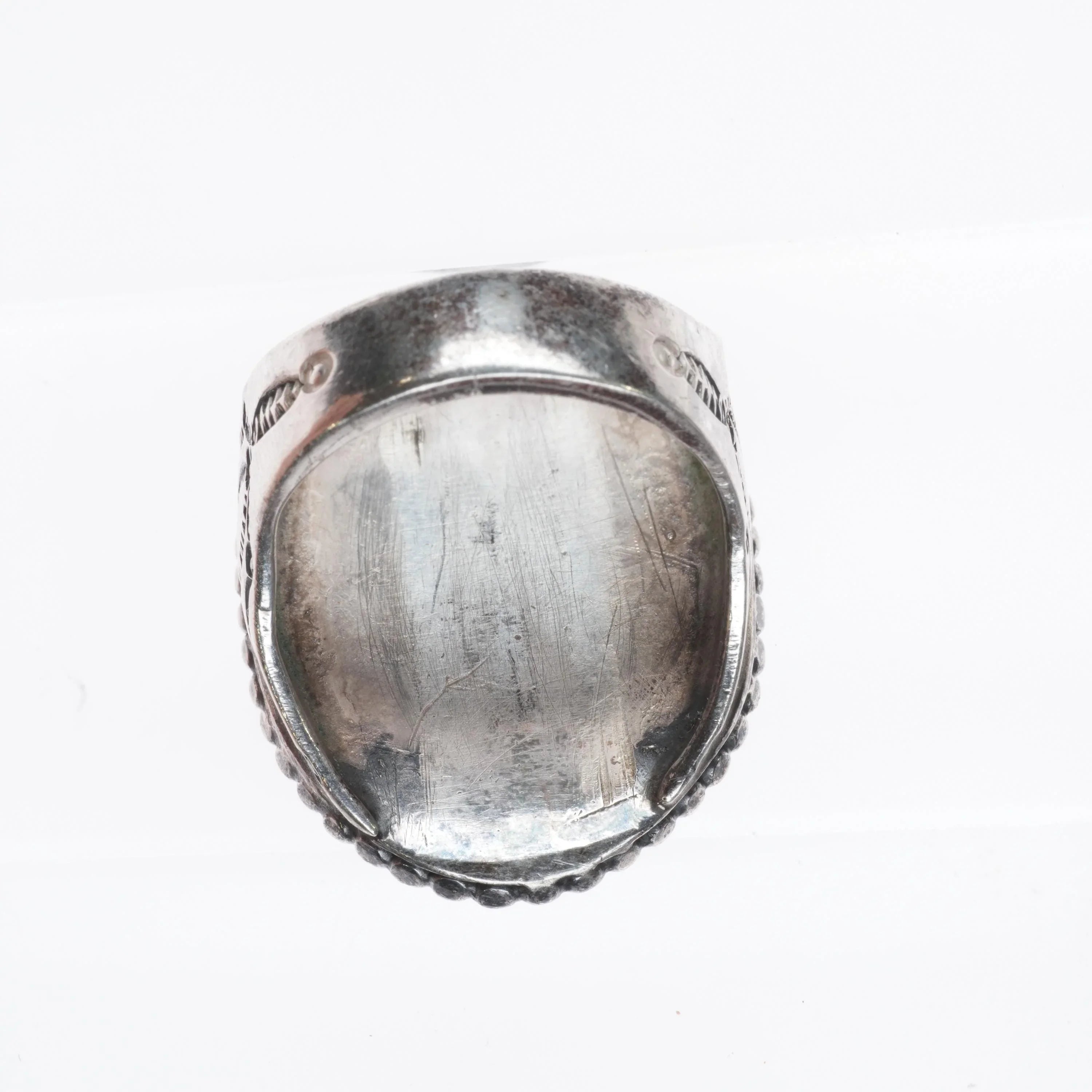 sz9.25 Large Vintage Native American sterling silver turquoise ring stamped side