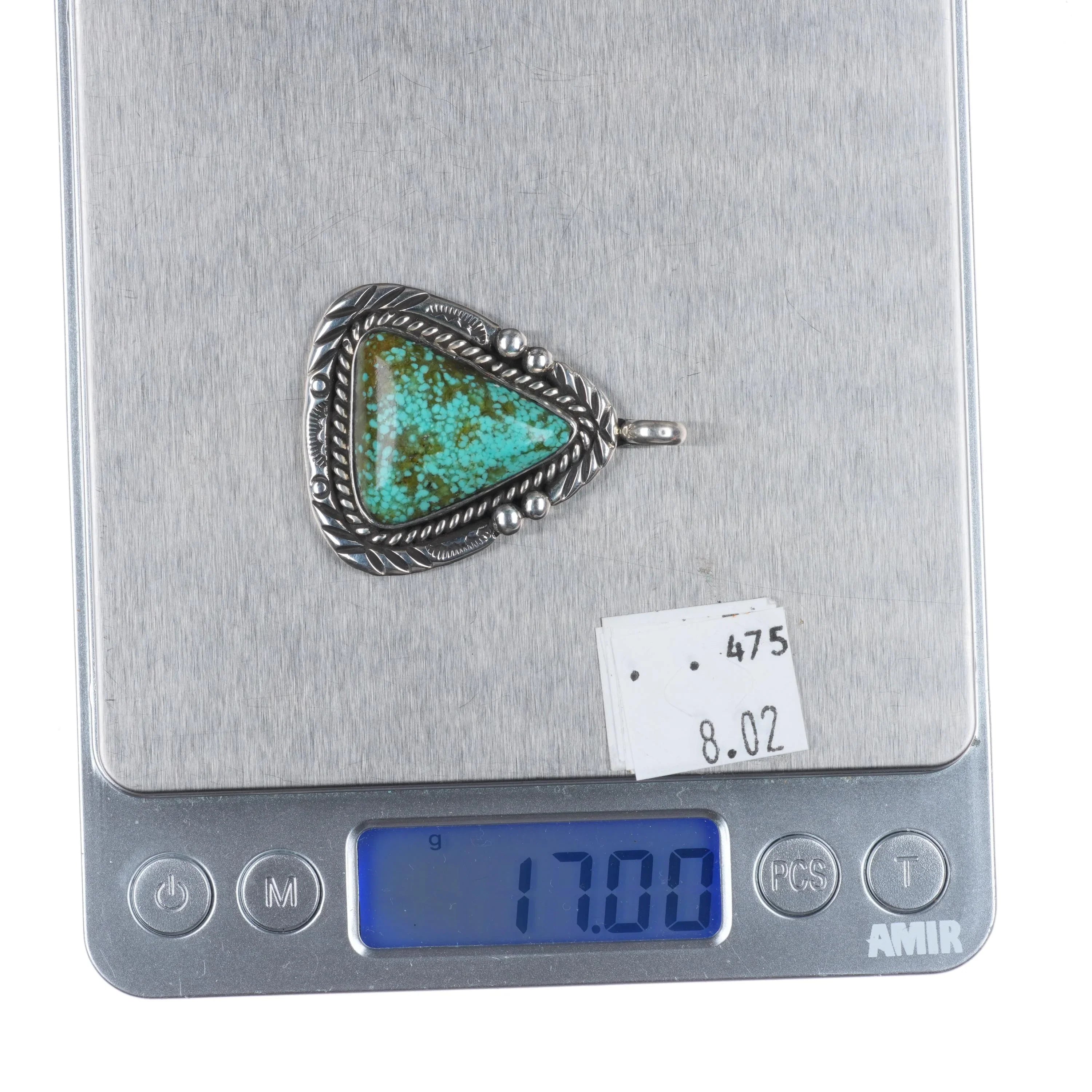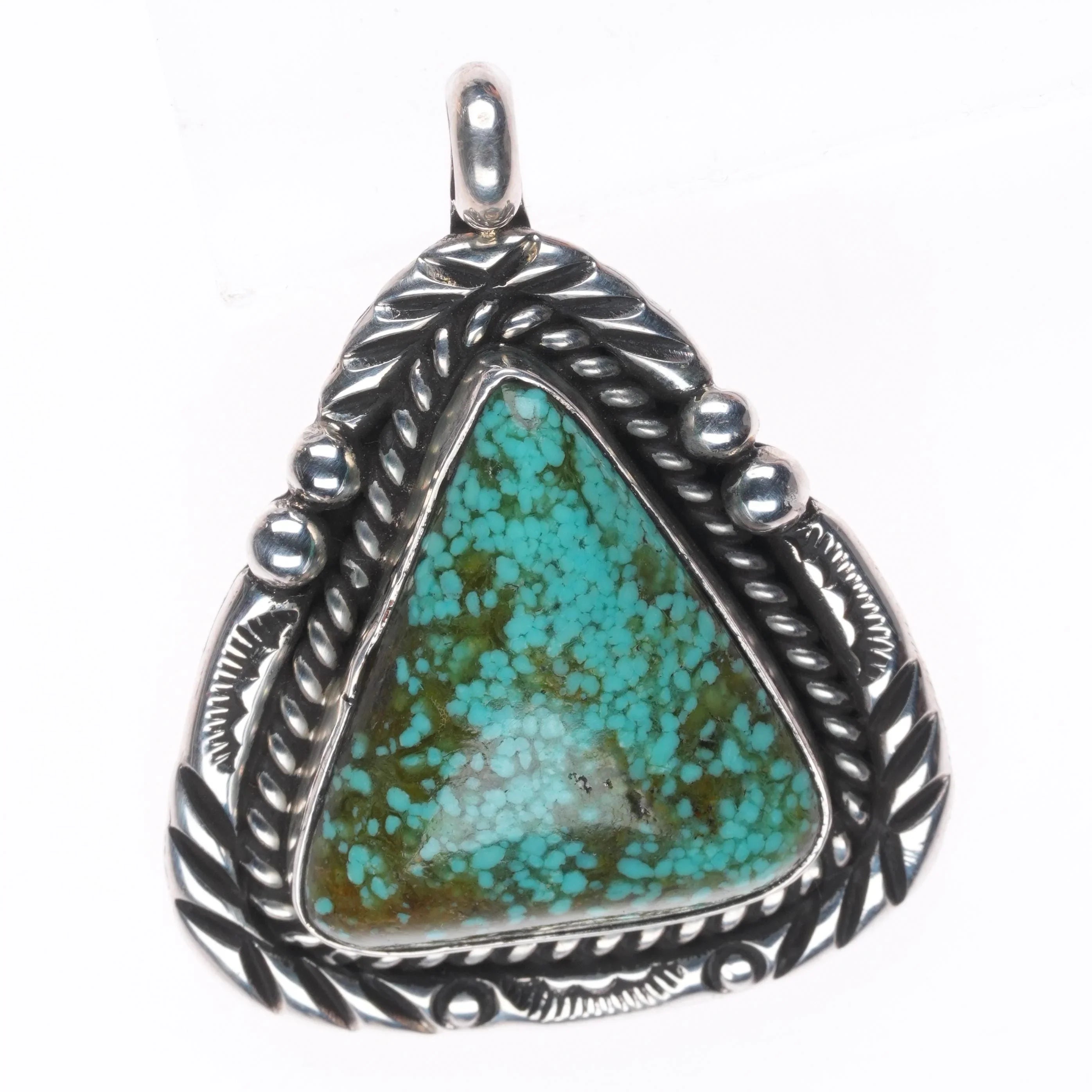 Vintage CH Navajo sterling silver Ceremonial Kingman waterweb turquoise pendant