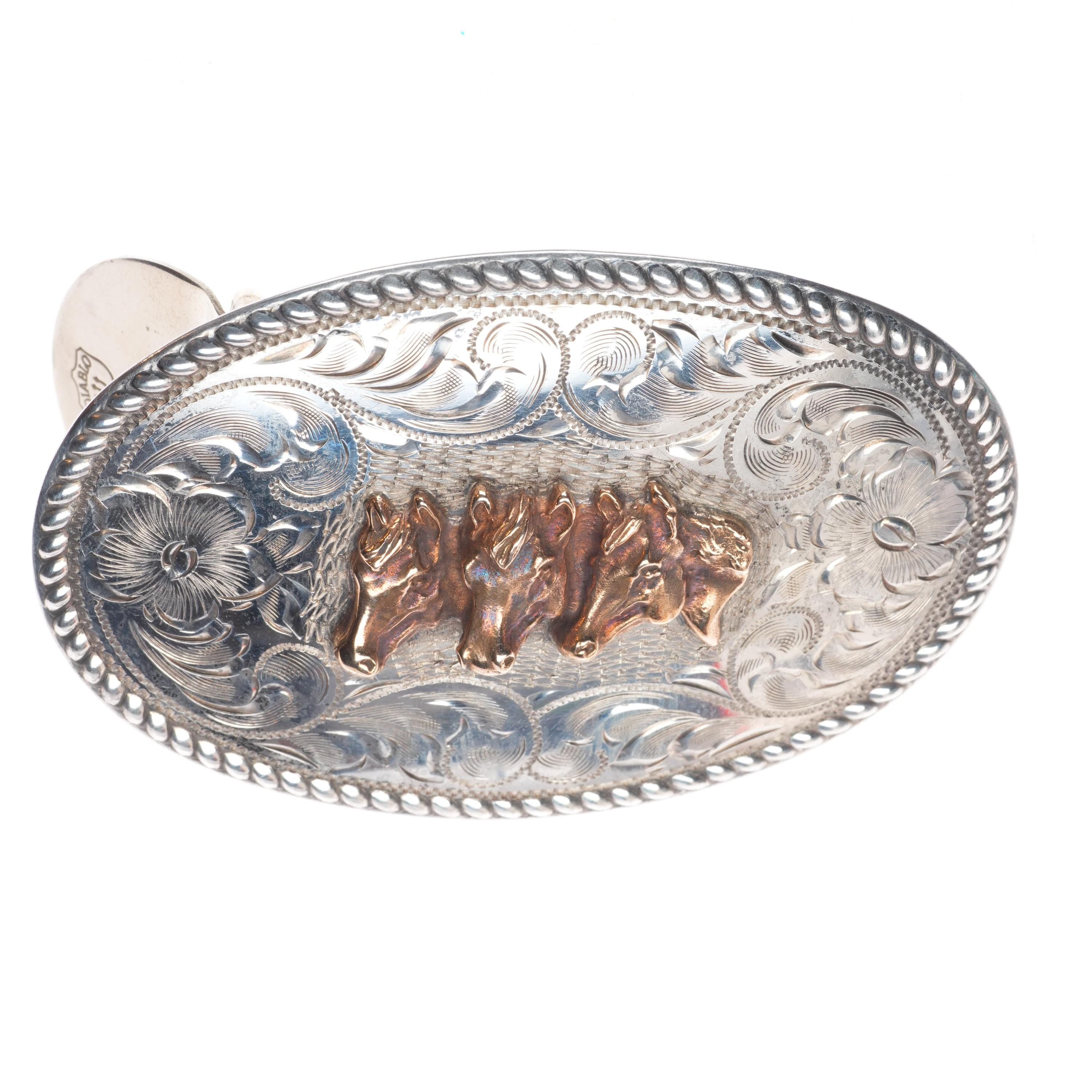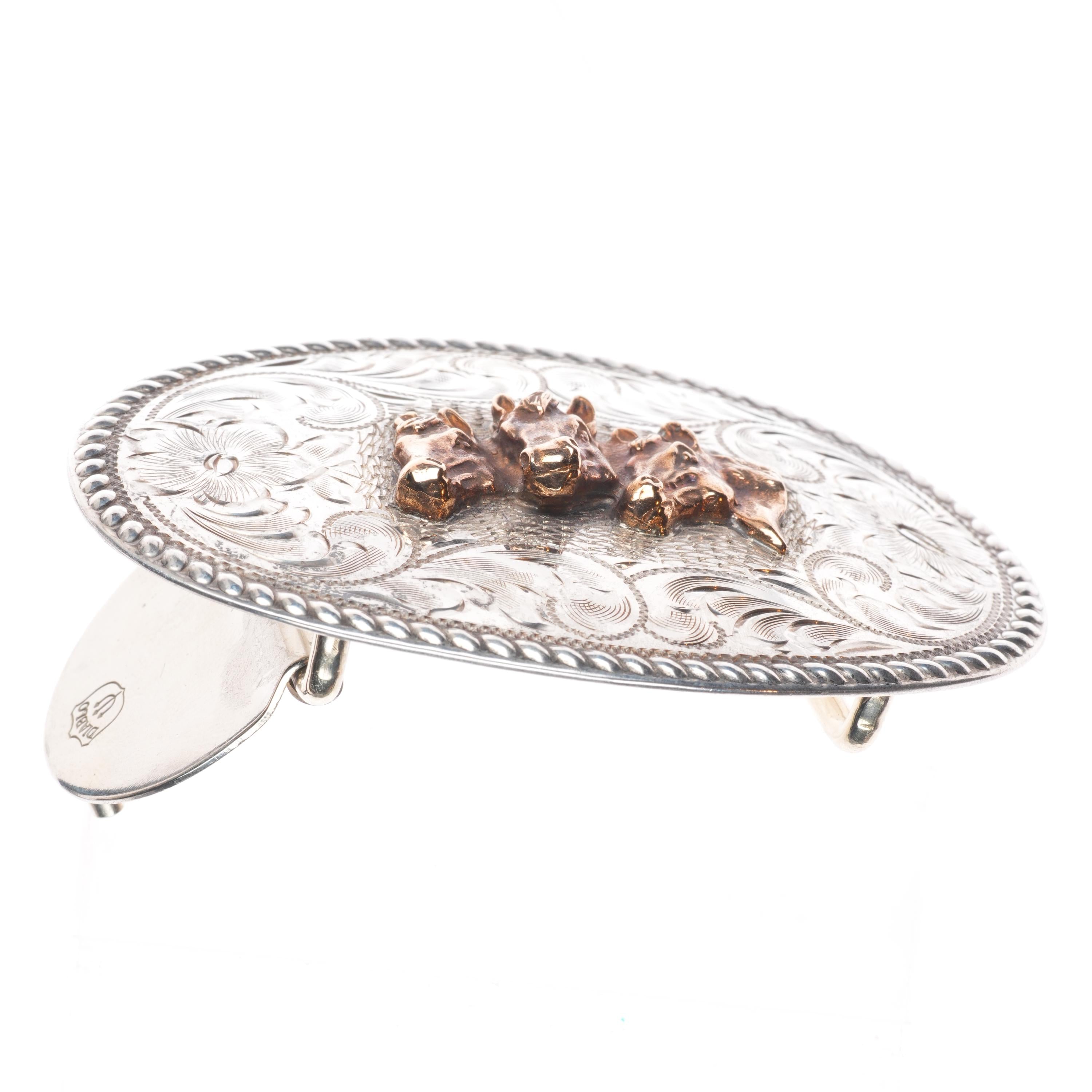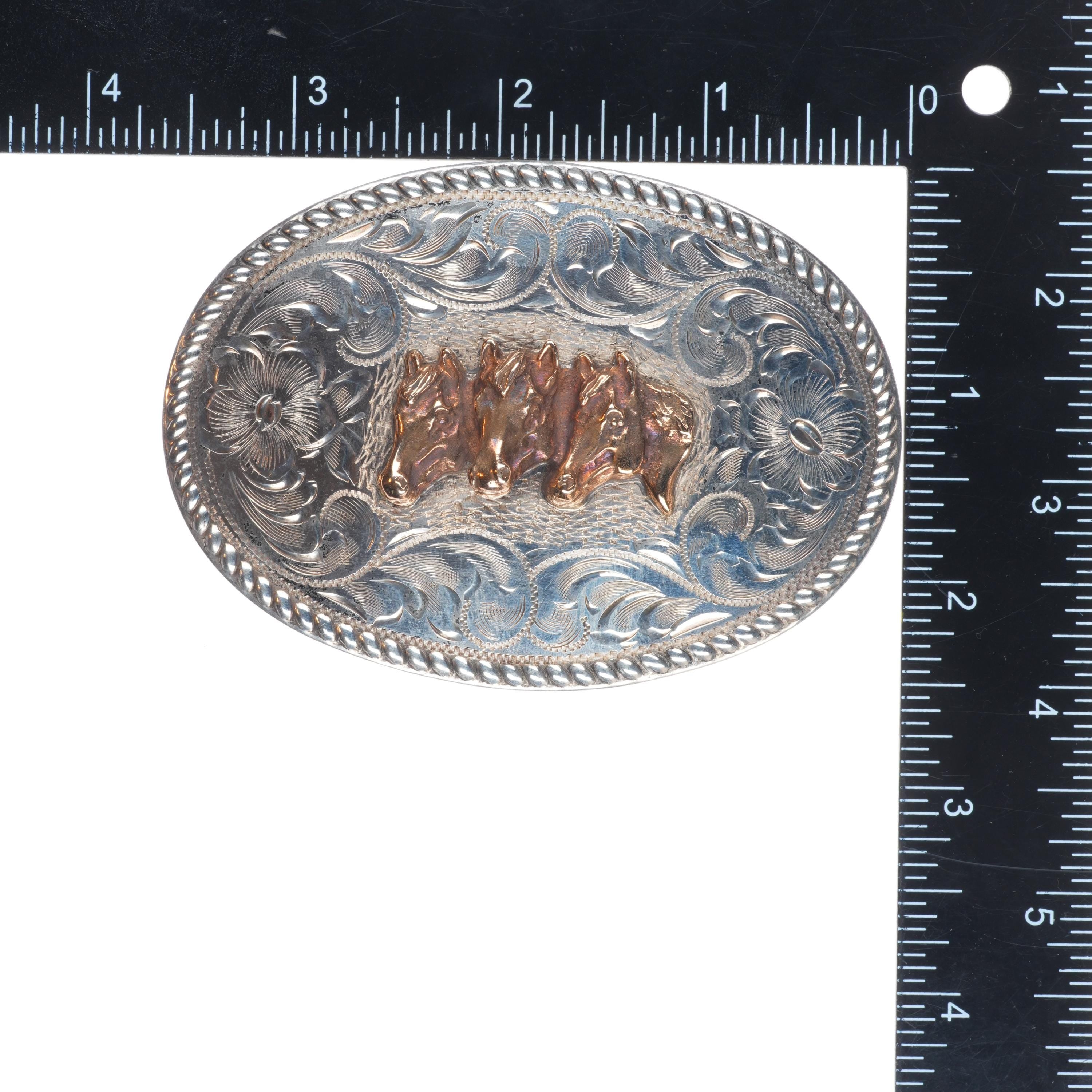 Vintage Diablo Sterling silver 3 horse heads western rodeo belt buckle