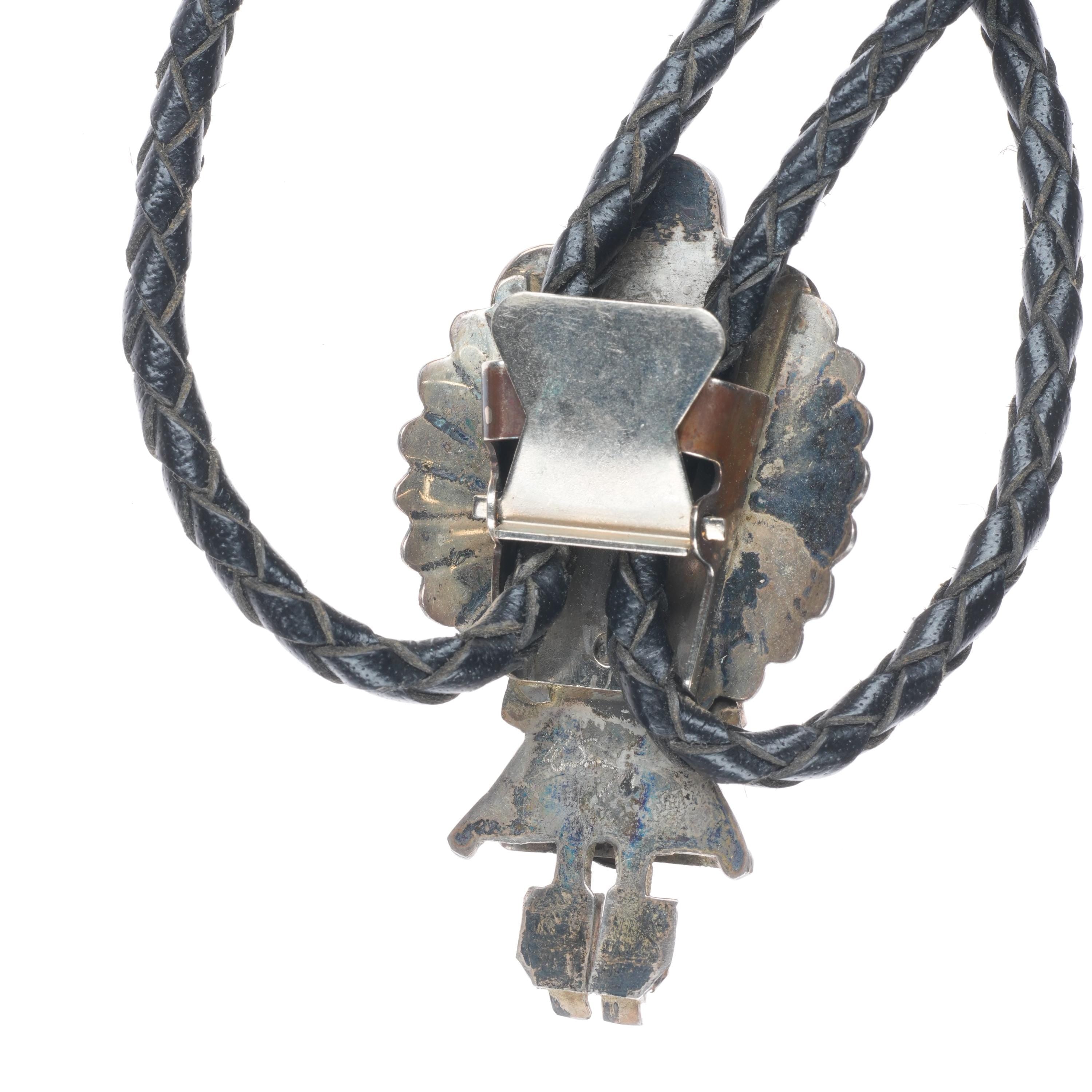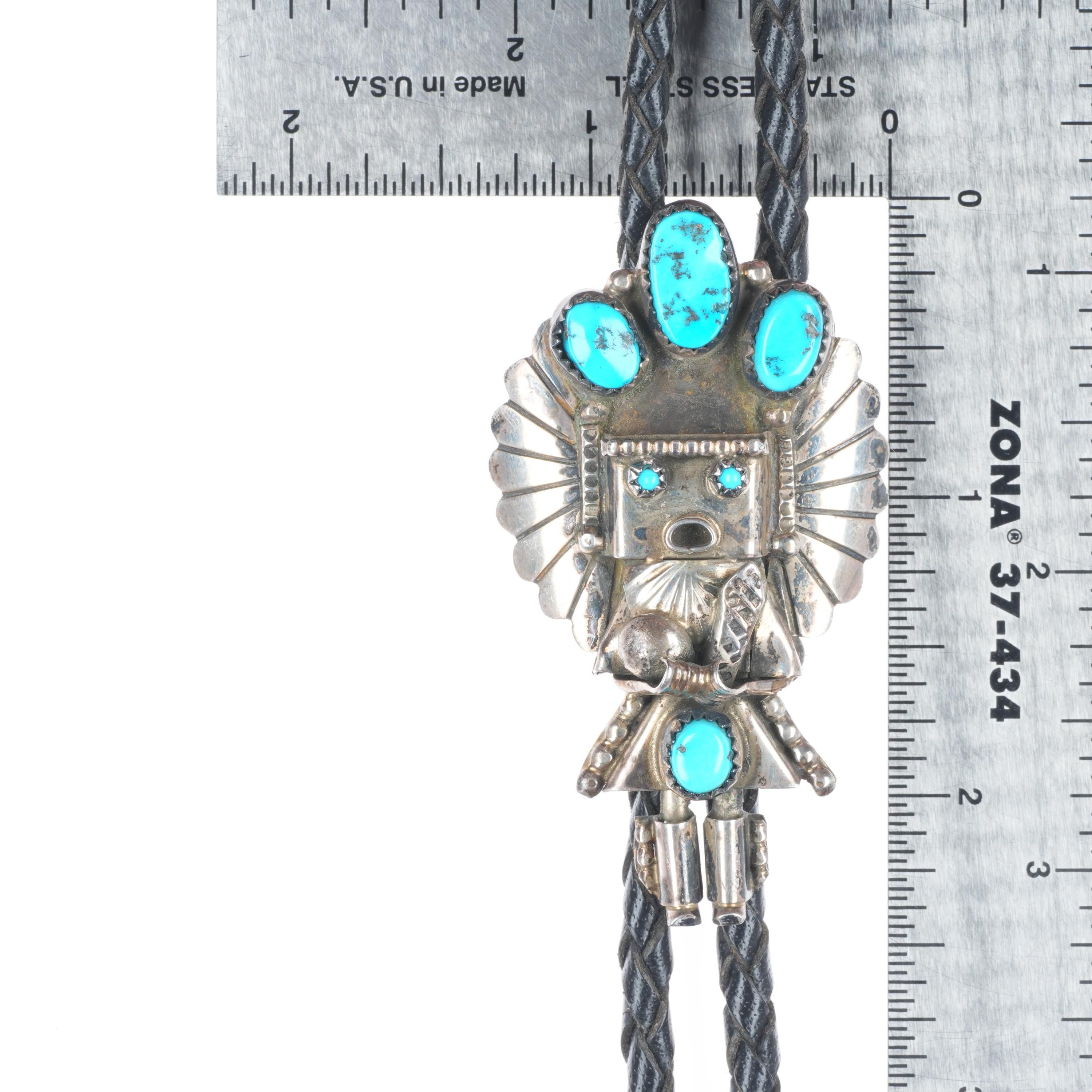 Vintage Doris Smallcanyon Navajo sterling silver Kachina bolo tie w/turquoise