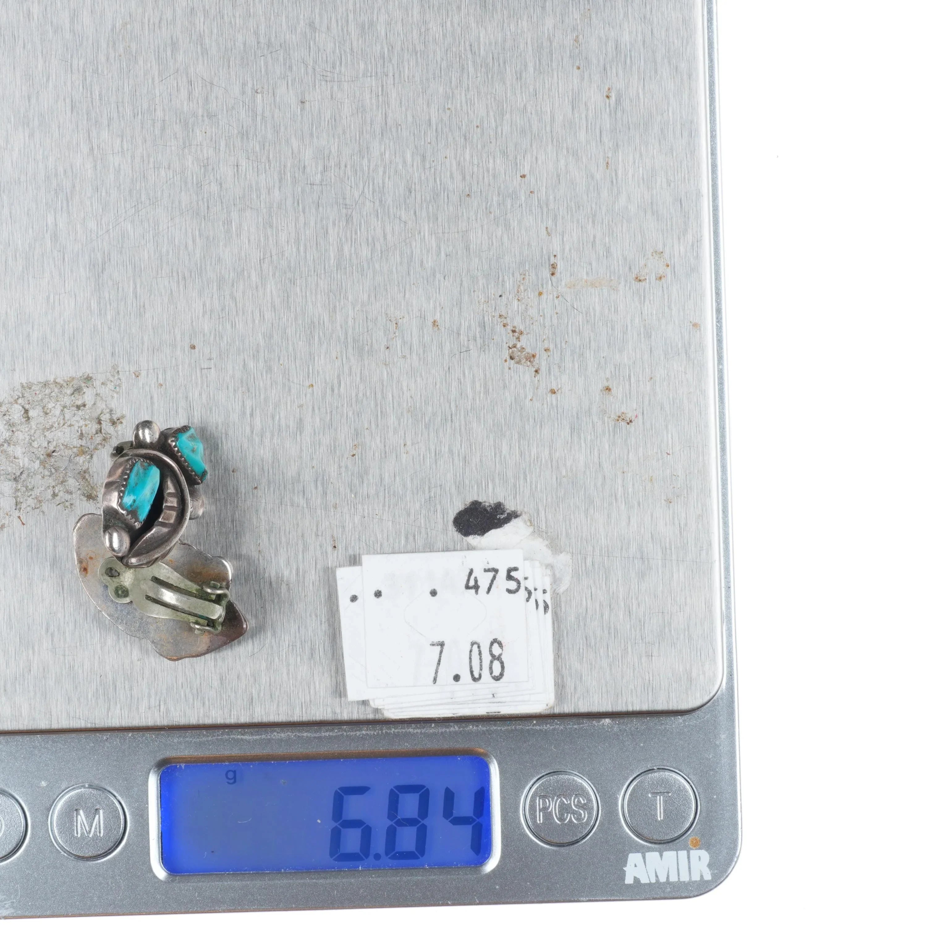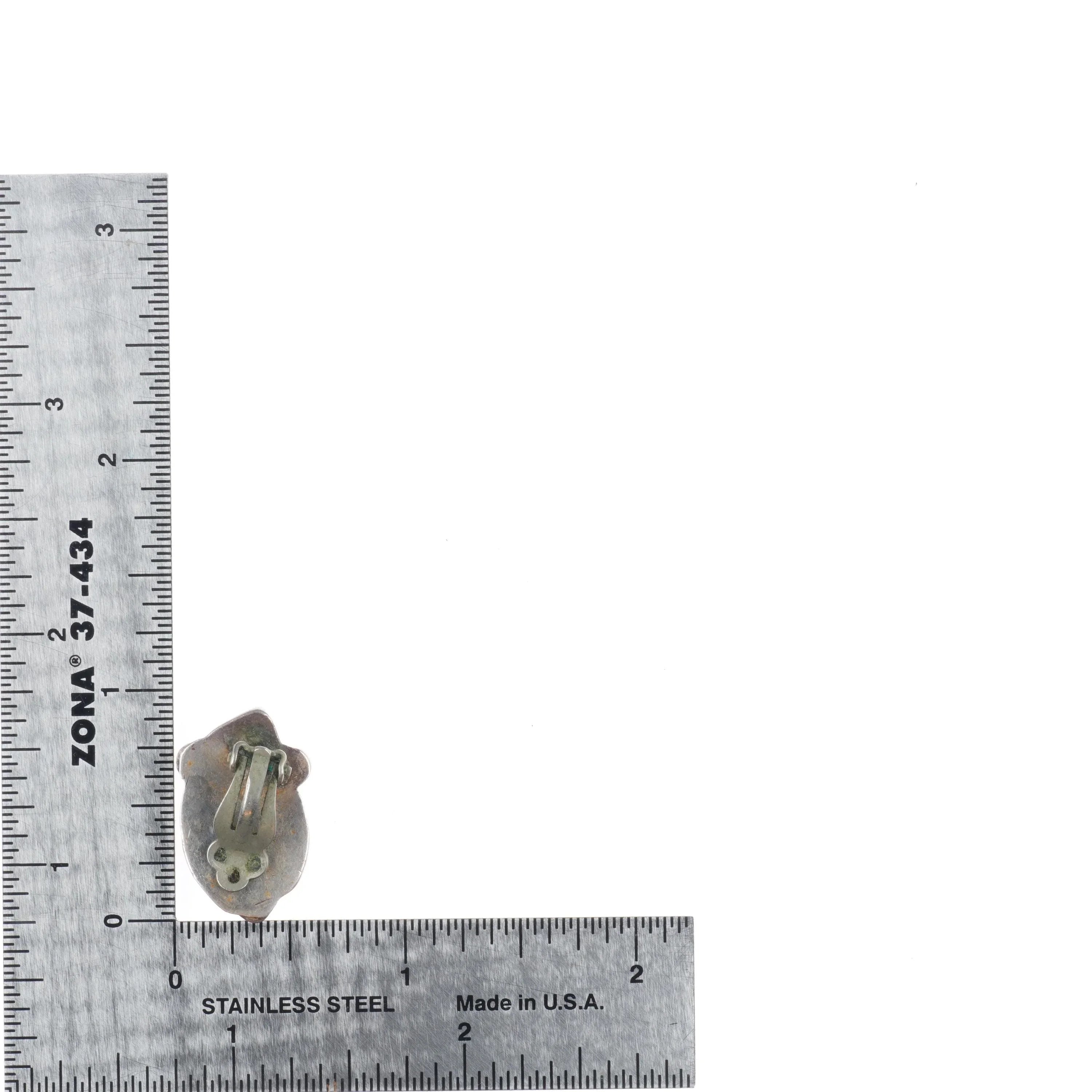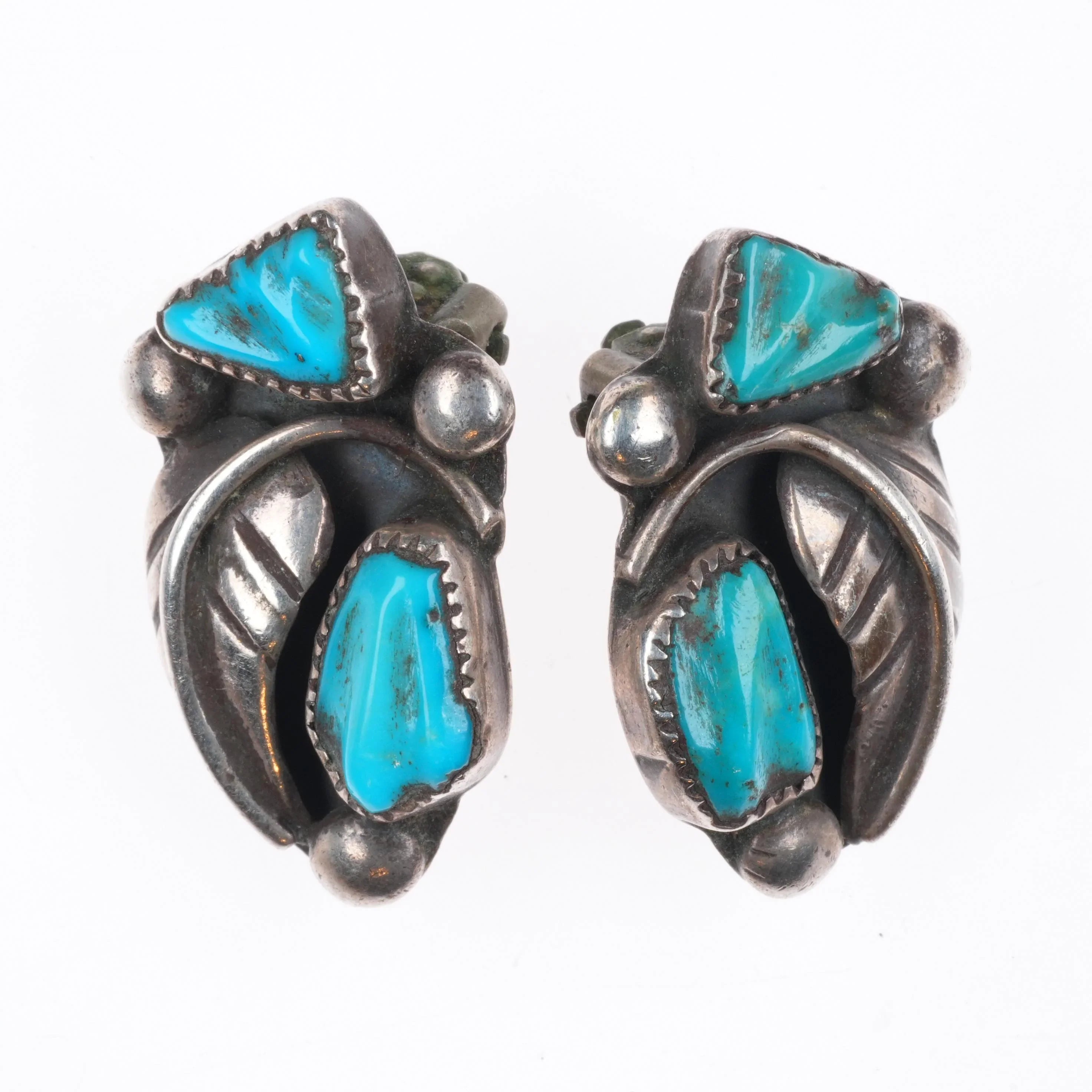 Vintage Eustace Cochiti Pueblo Sterling silver carved turquoise clip-on earrings