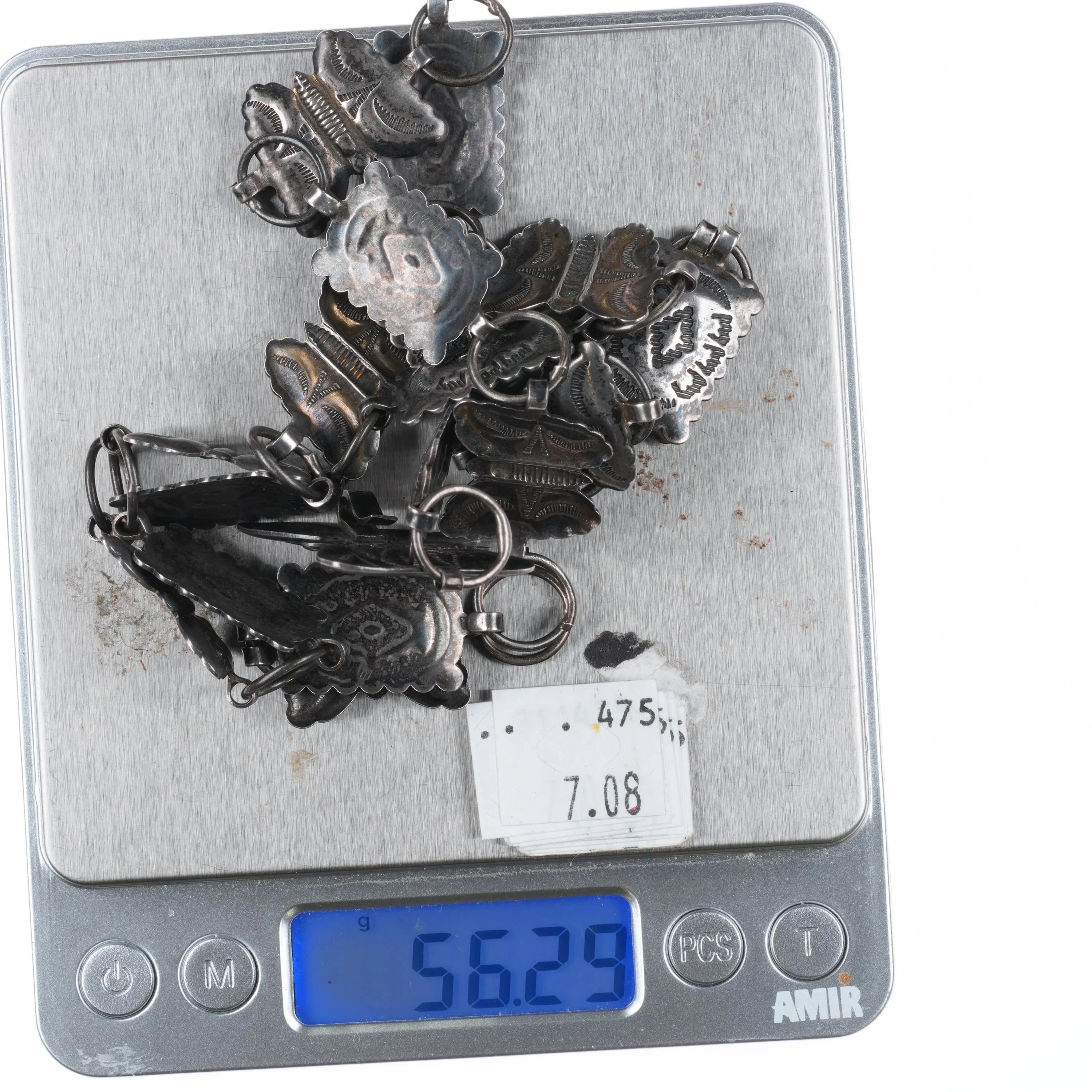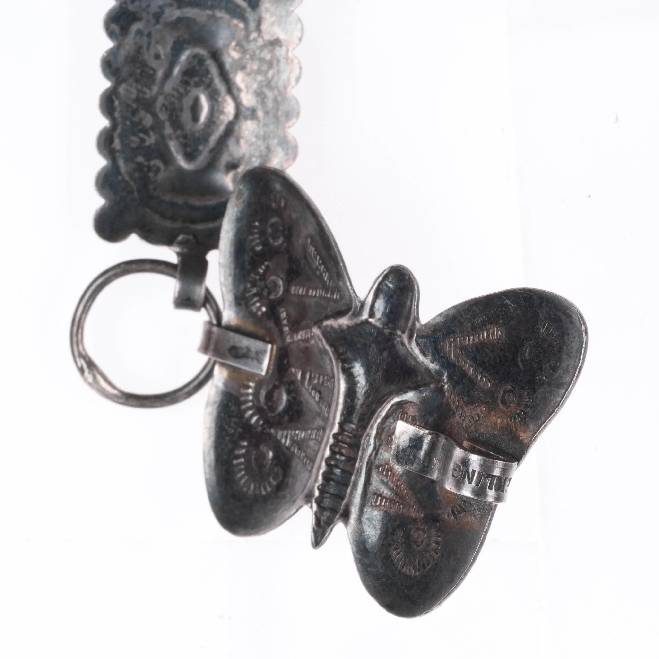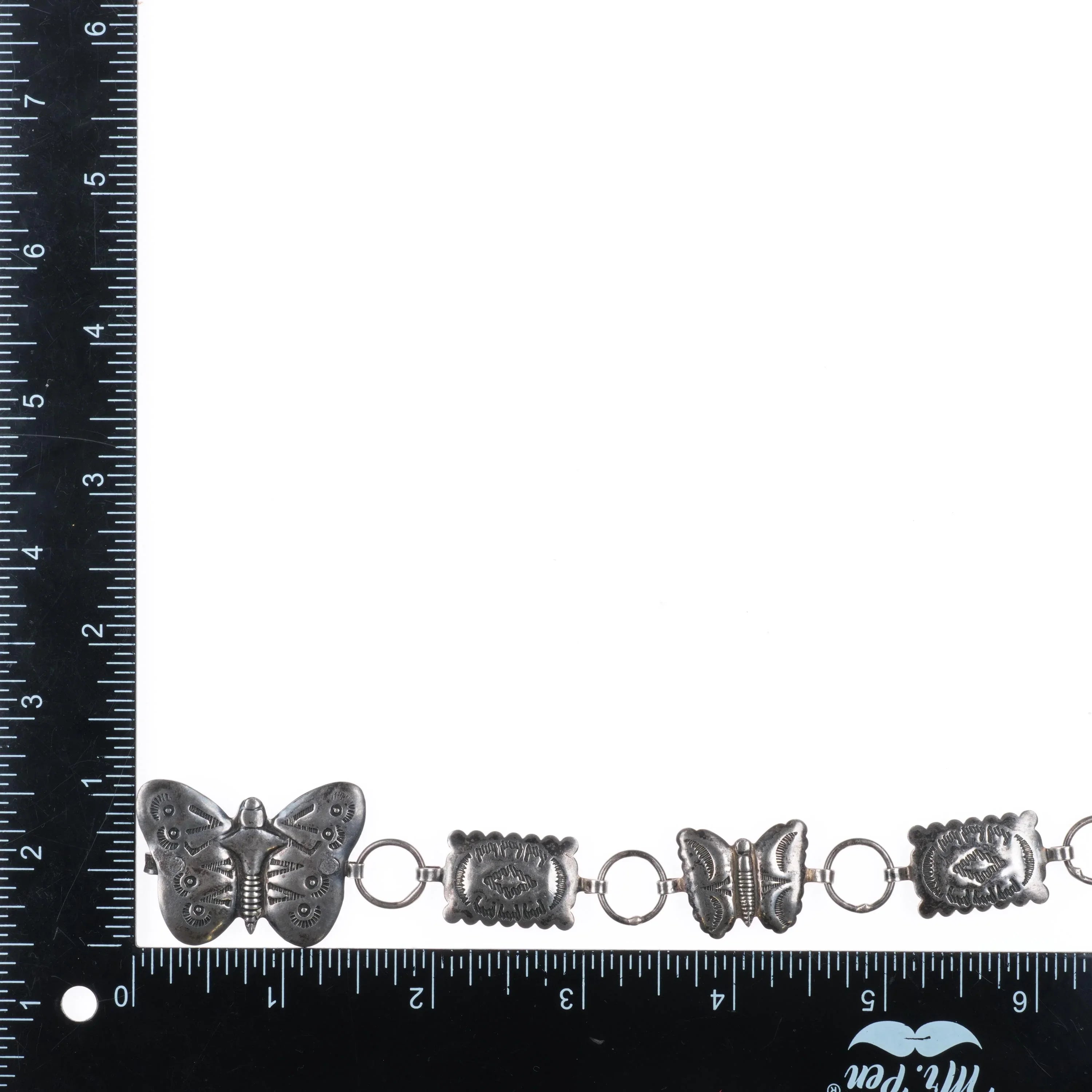 Vintage Fred Harvey Era Sterling silver butterfly stamped concho belt. Tested and guaranteed solid sterling silver with weight and measurements in pictures. Fully functional, 30" long but could be worn shorter and hooked anywhere. Also could be worn as a necklace.. All items will likely have some expected wear, the older they are the more wear they should have. Circa mid 20th century, stamped sterling with no other detectable markings.