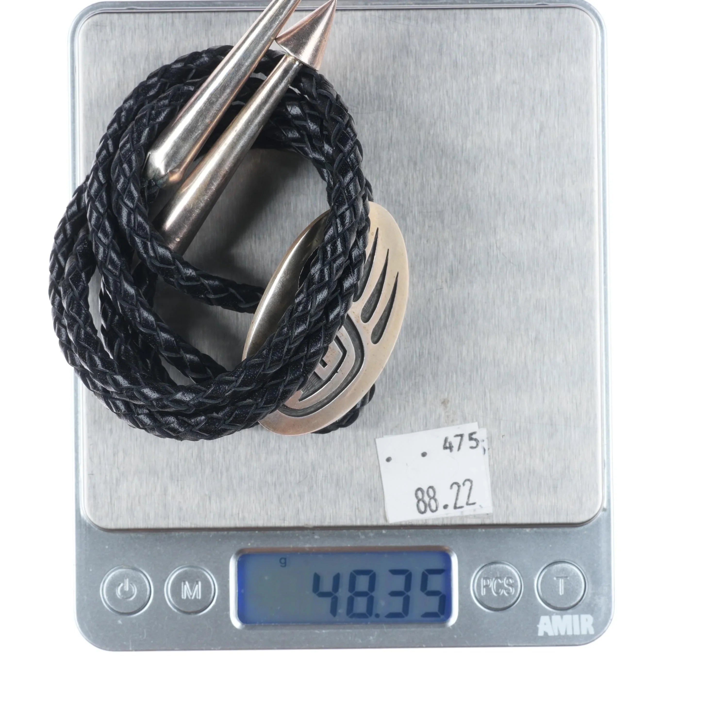 Vintage Gene Pooyouma Hopi Overlay bear paw bolo tie sterling silver. Tested and guaranteed solid sterling silver slide and tips. Weight and measurements in pictures. 39" long with no issues. Tray is tared out, so weight shown is just the bolo of course.