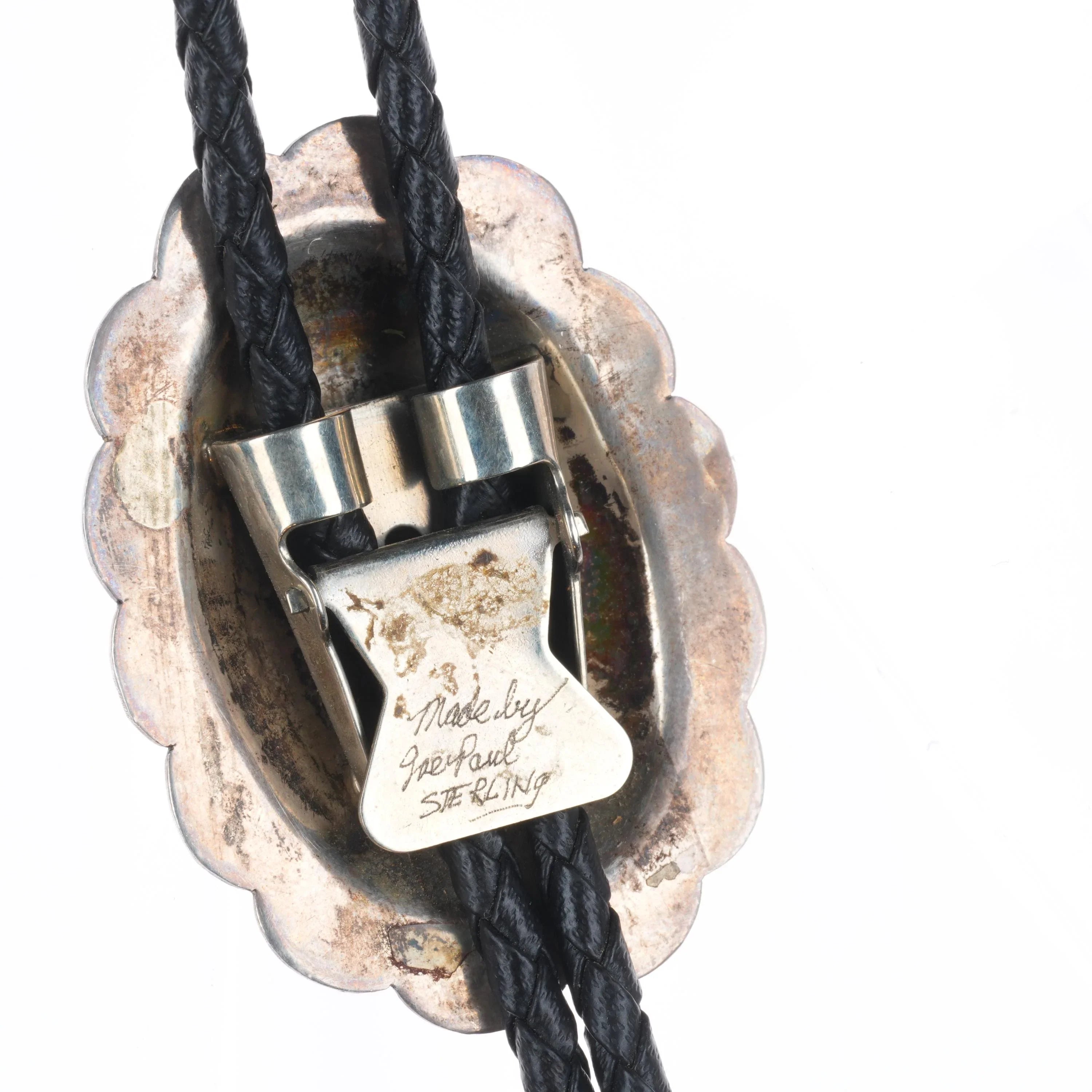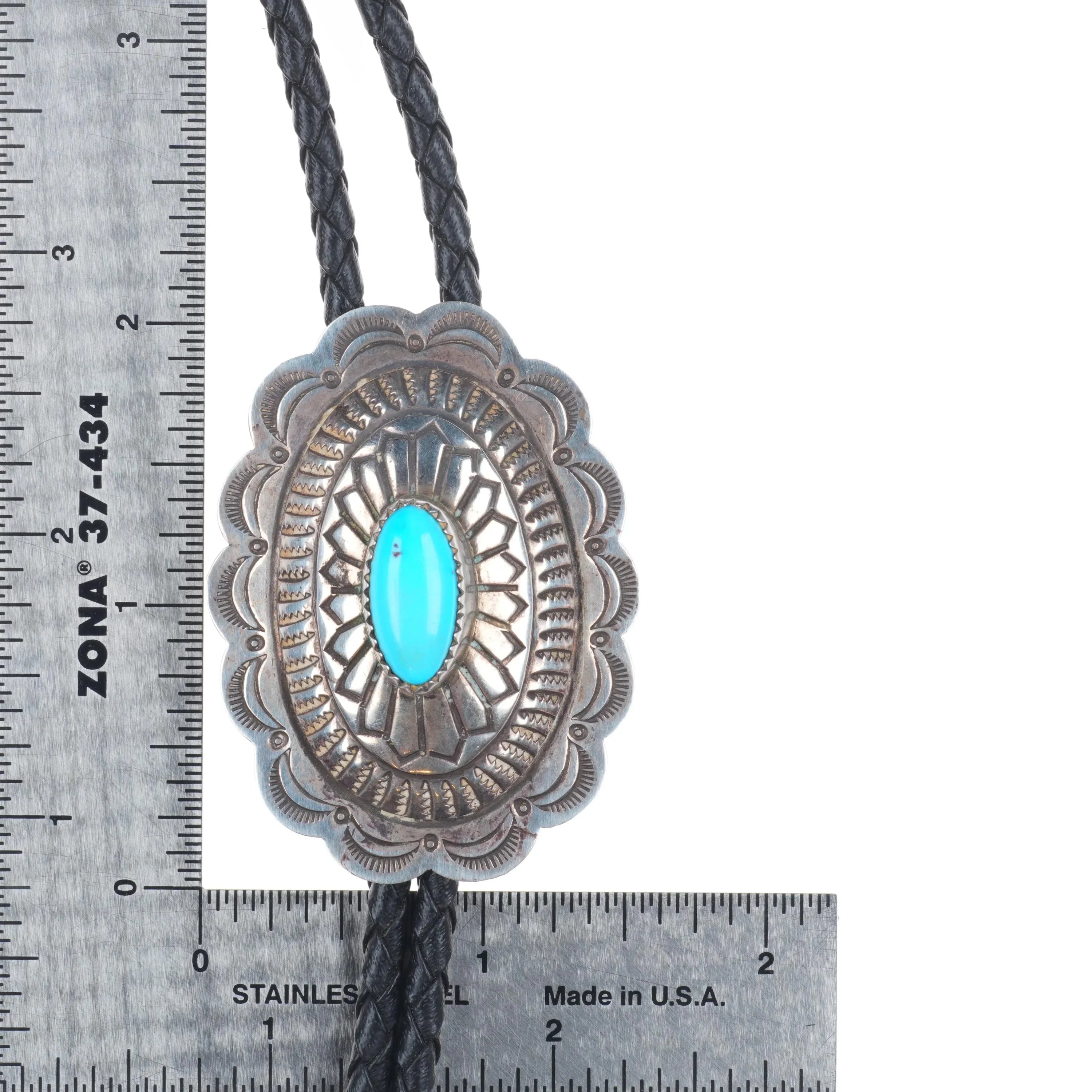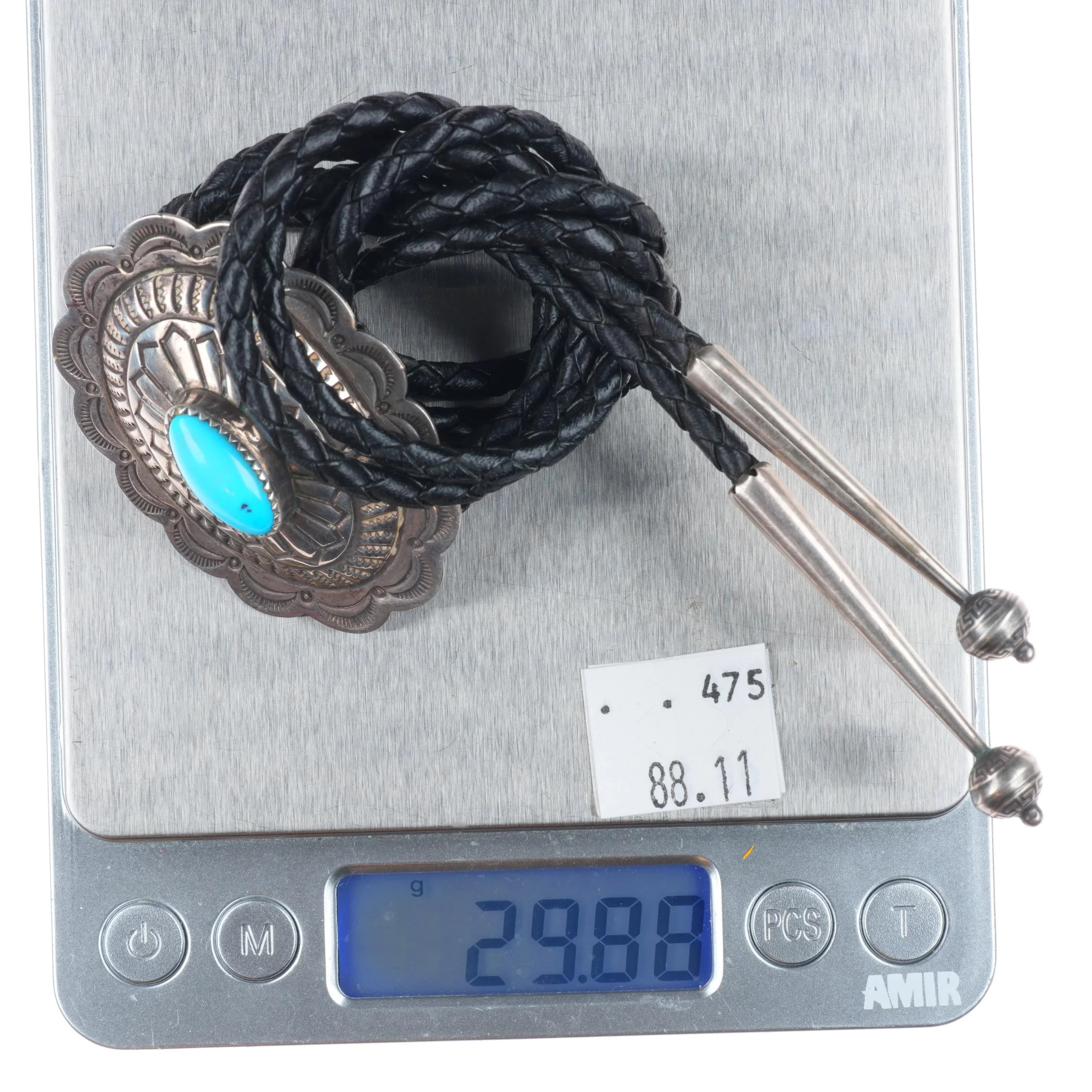 Vintage Joe Paul Navajo sterling silver concho style bolo tie w/turquoise