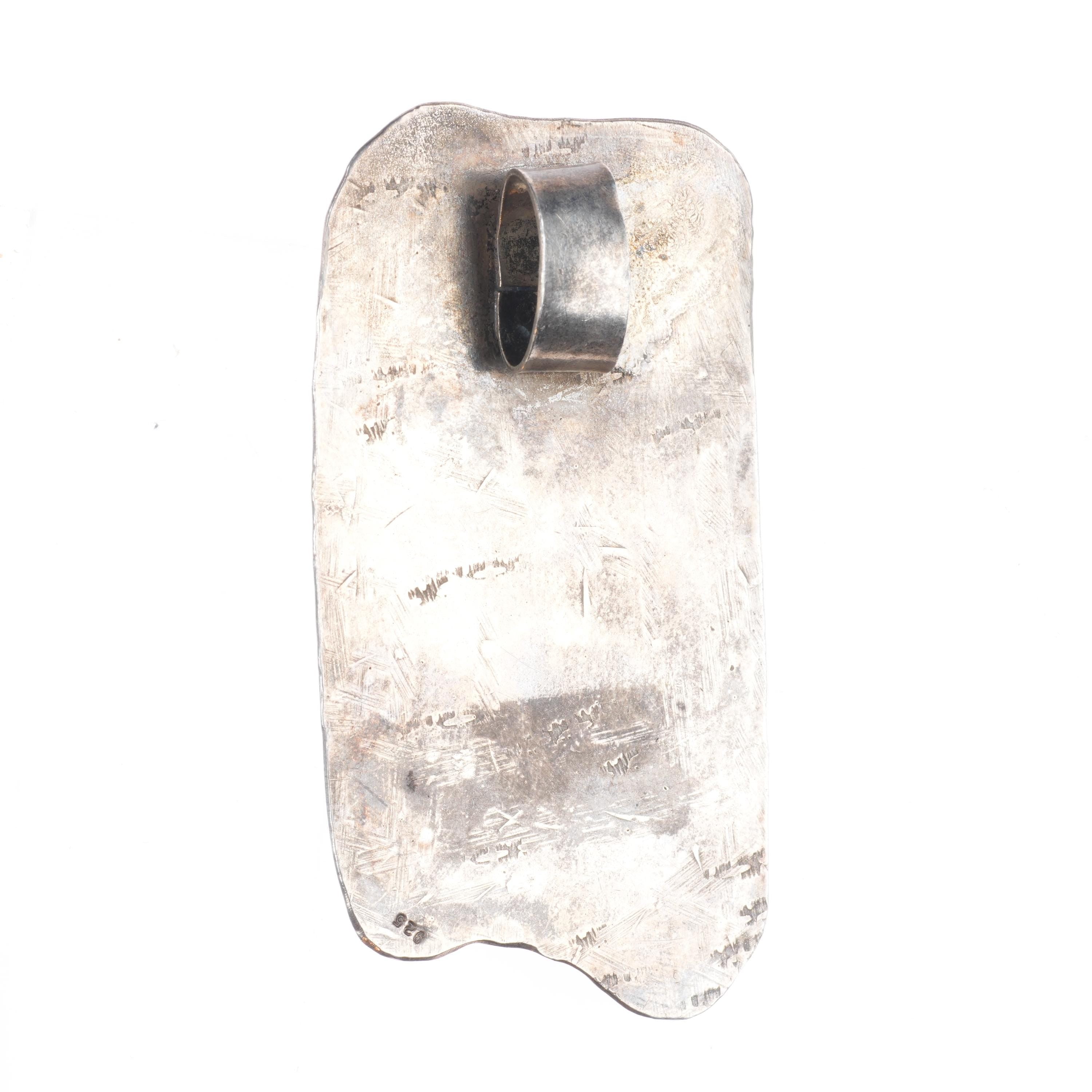 Vintage southwestern modernist sterling silver boulder turquoise pendant Solid sterling silver tested and guaranteed with weight and measurements in the pictures. No issues, fairly modern. Marked 925 with no other apparent markings.