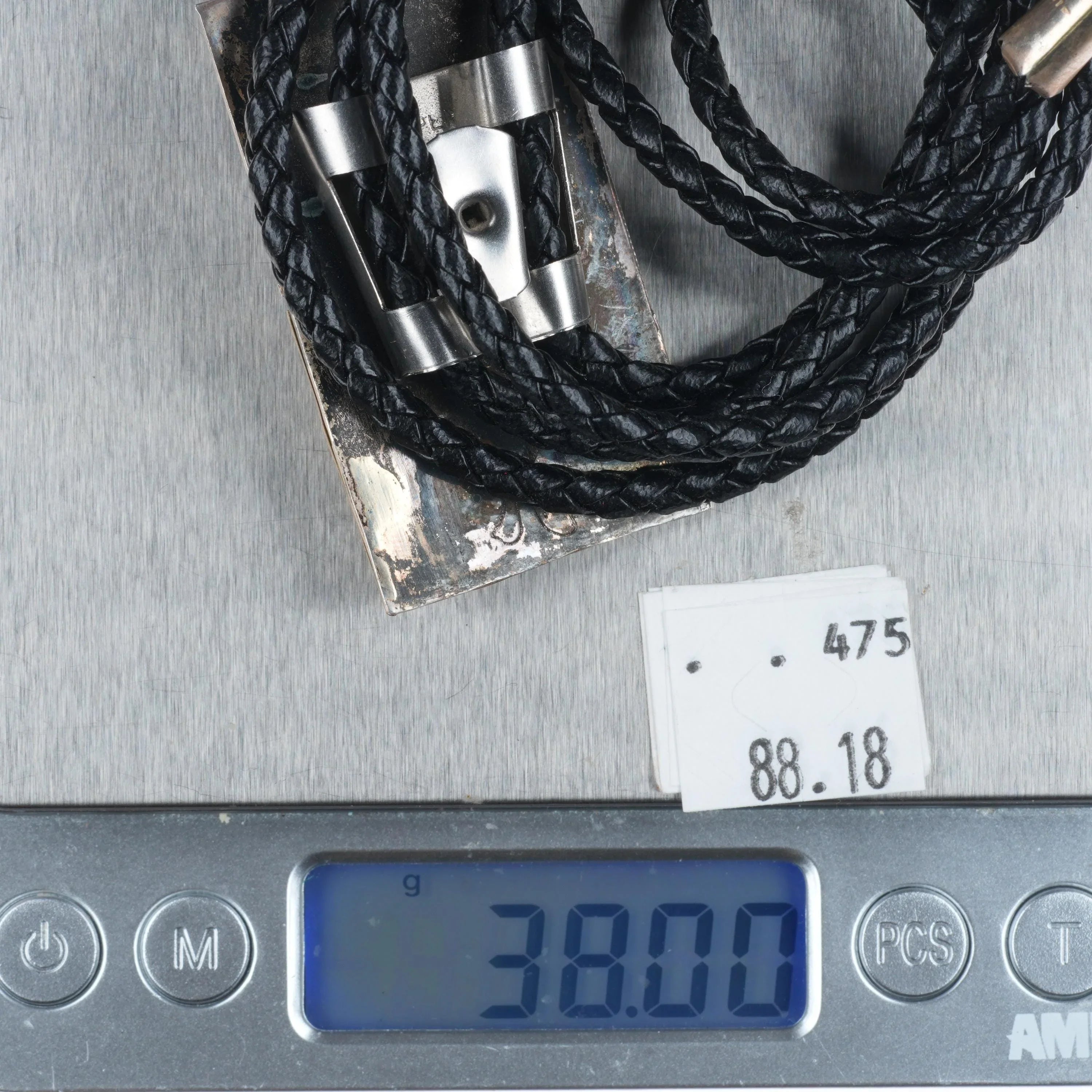 Vintage southwestern modernist sterling silver/brass mixed metals onyx bolo tie. Tested and guaranteed solid sterling silver slide and tips. Weight and measurements in pictures. Tray is tared out, so weight shown is just the bolo of course. Illegibly signed by unknown artist.