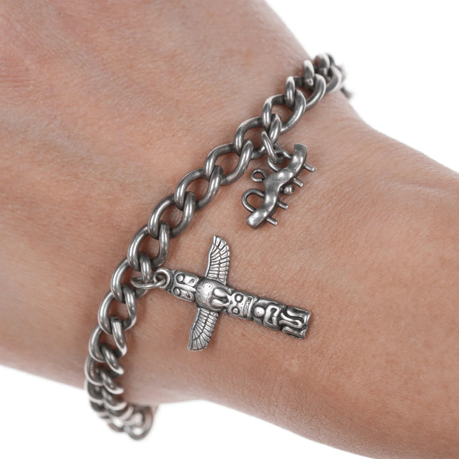Vintage Southwestern/Native American Sterling and turquoise charm bracelet