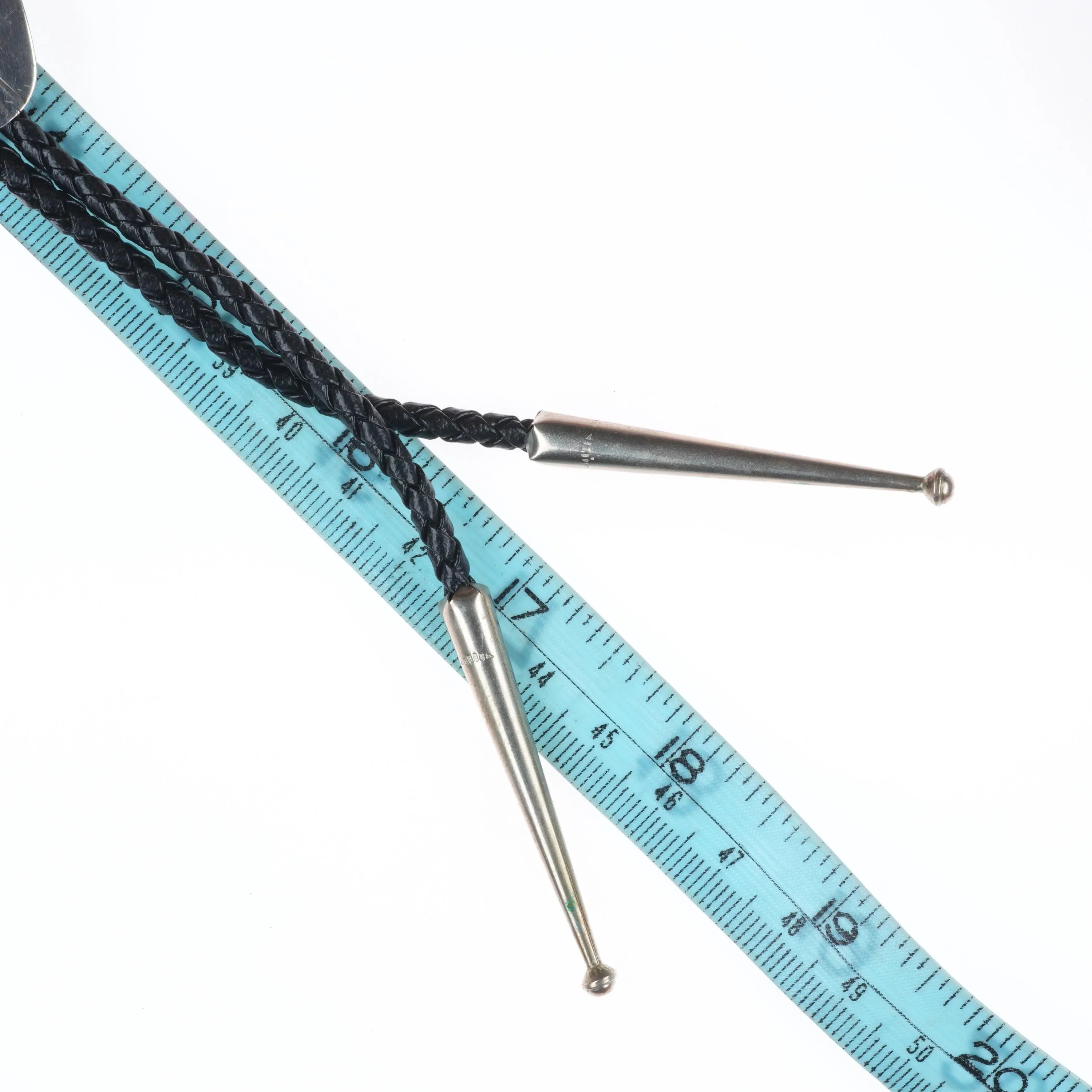 Vintage southwestern sterling silver shell, onyx inlay modernist bolo tie. Tested and guaranteed solid sterling silver slide and tips. Weight and measurements in pictures. Tray is tared out, so weight shown is just the bolo of course. 38" long