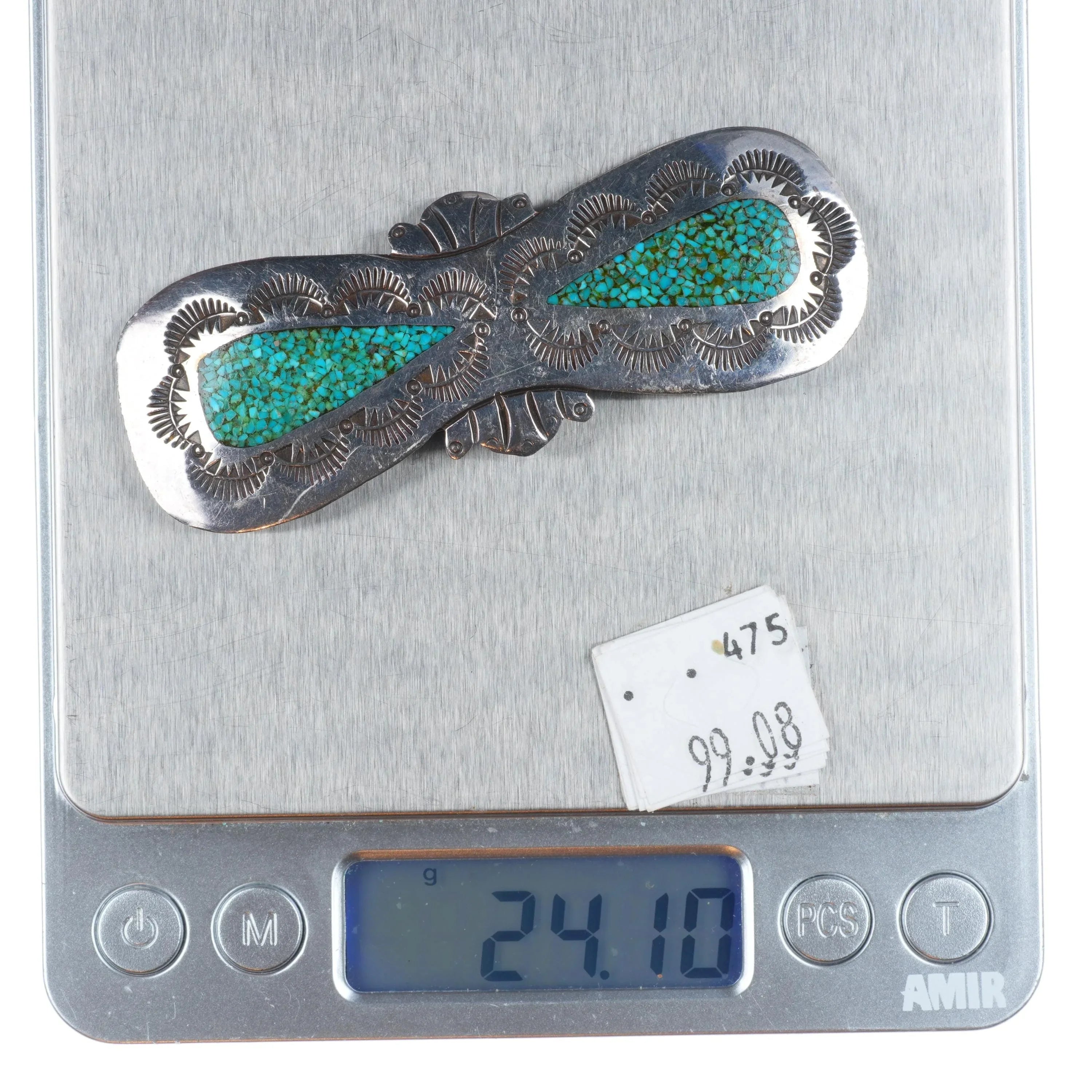 Tommy Singer Navajo Sterling silver chip inlay bowtie/Butterfly pin/brooch