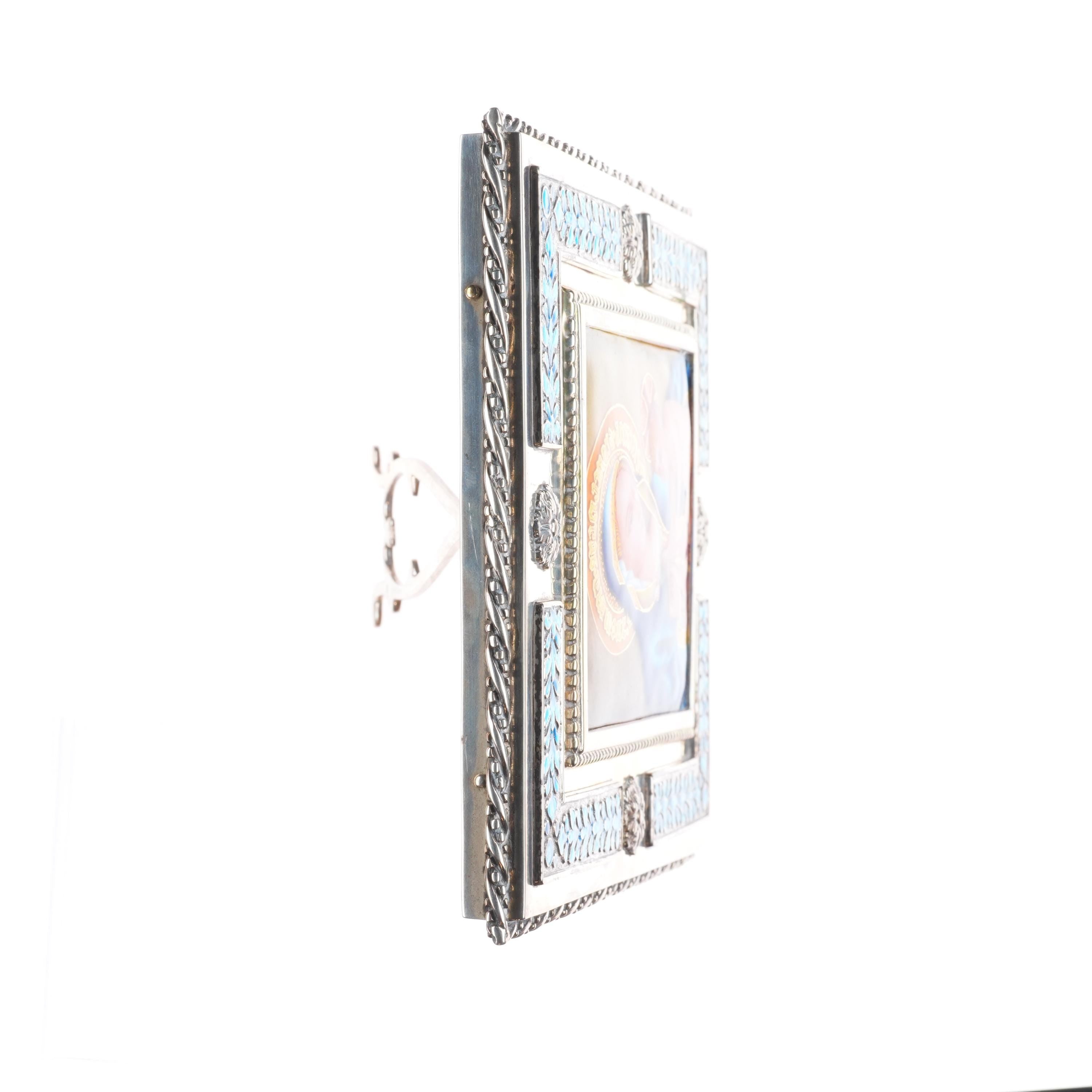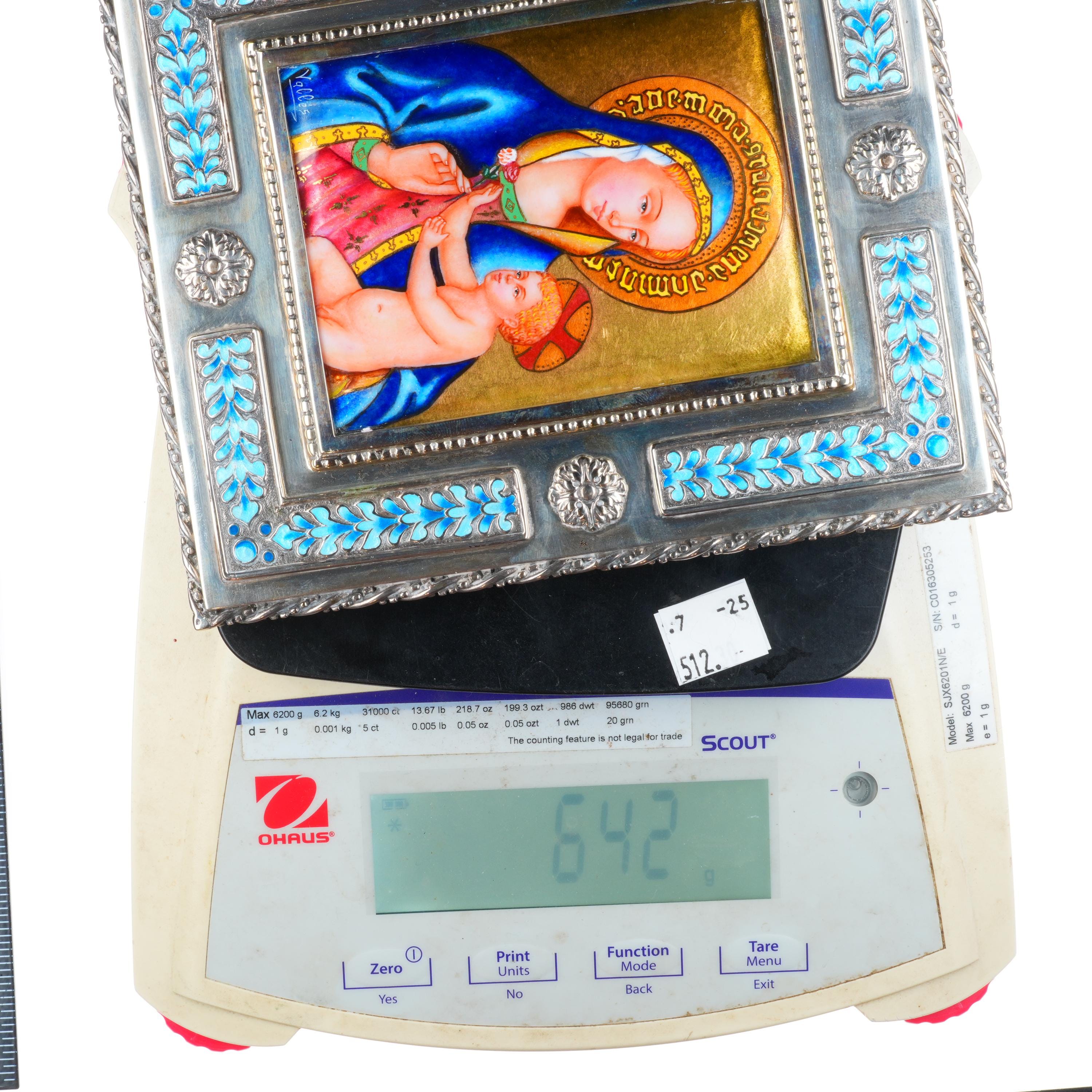 Vintage Valles Sterling silver Enamel Nativity Baby Jesus & Mary scene. Weight and measurements in pictures, no issues, clean enamel. Very heavy marked, tested, and guaranteed solid sterling silver. No damage to enamel, circa last quarter of the 20th century. Most of the weight is the solid sterling silver frame, wood back, I'm unsure if the enamel plaque is on copper or silver.