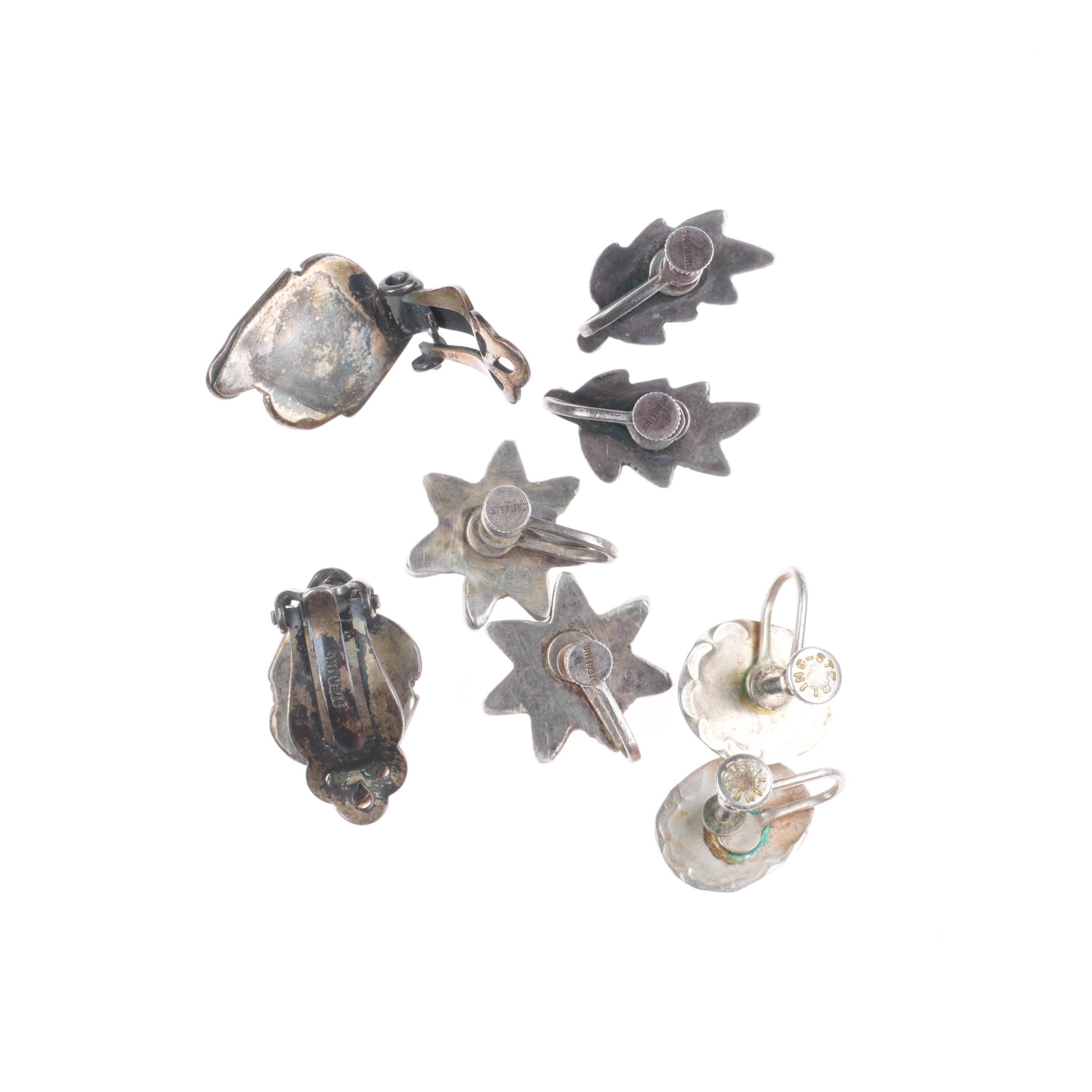 Vintage Zuni petit point turquoise/Navajo sterling silver/shell clip earring lot