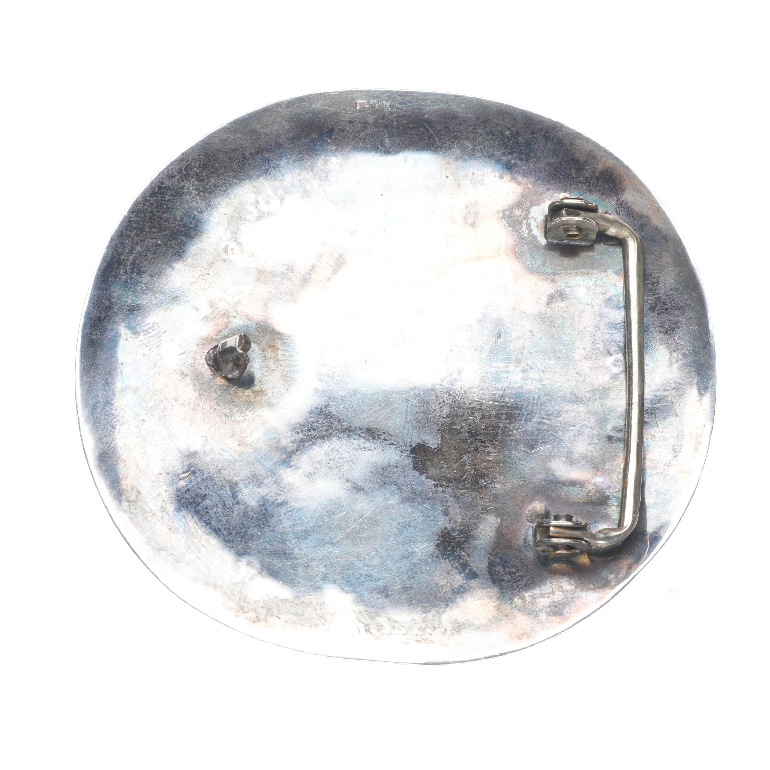 Vintage Zuni sterling silver shell inlay knifewing belt buckle. Tested and guaranteed solid sterling silver, weight and measurements in pictures. Fully functional. All items will likely have some age appropriate/expected wear, the older they are the more wear they should have. Circa third quarter of the 20th century.. Fits up to a 1.5" belt