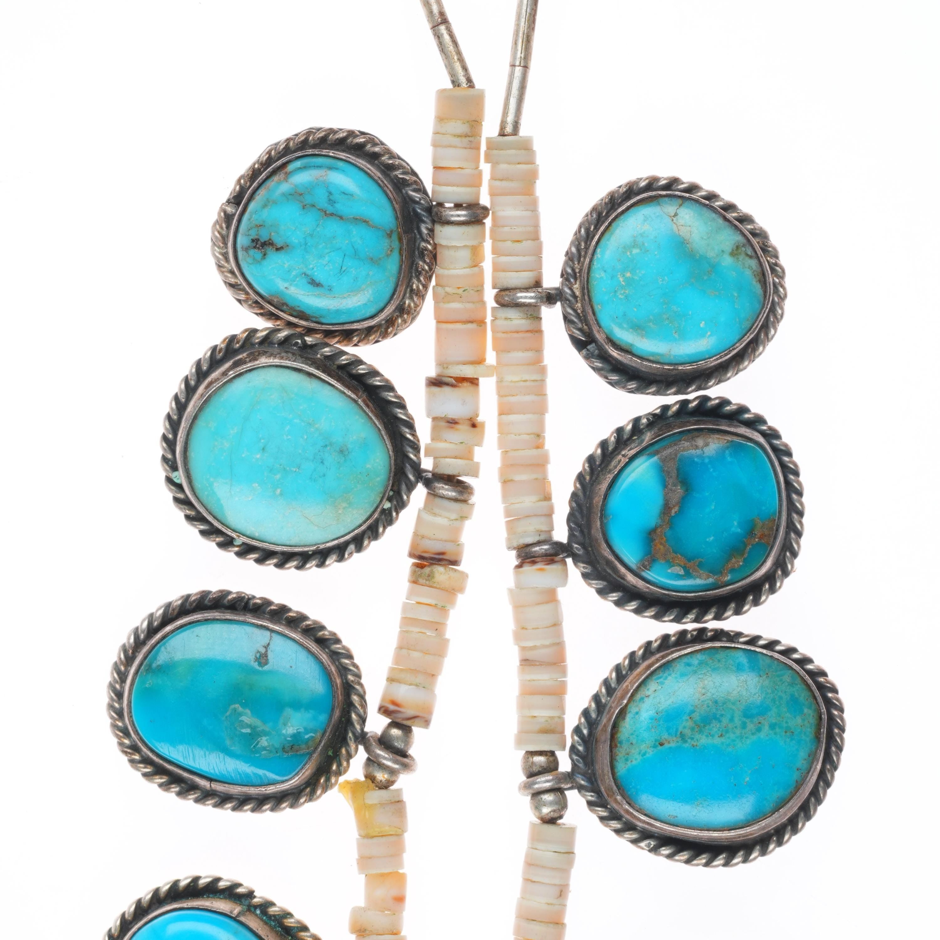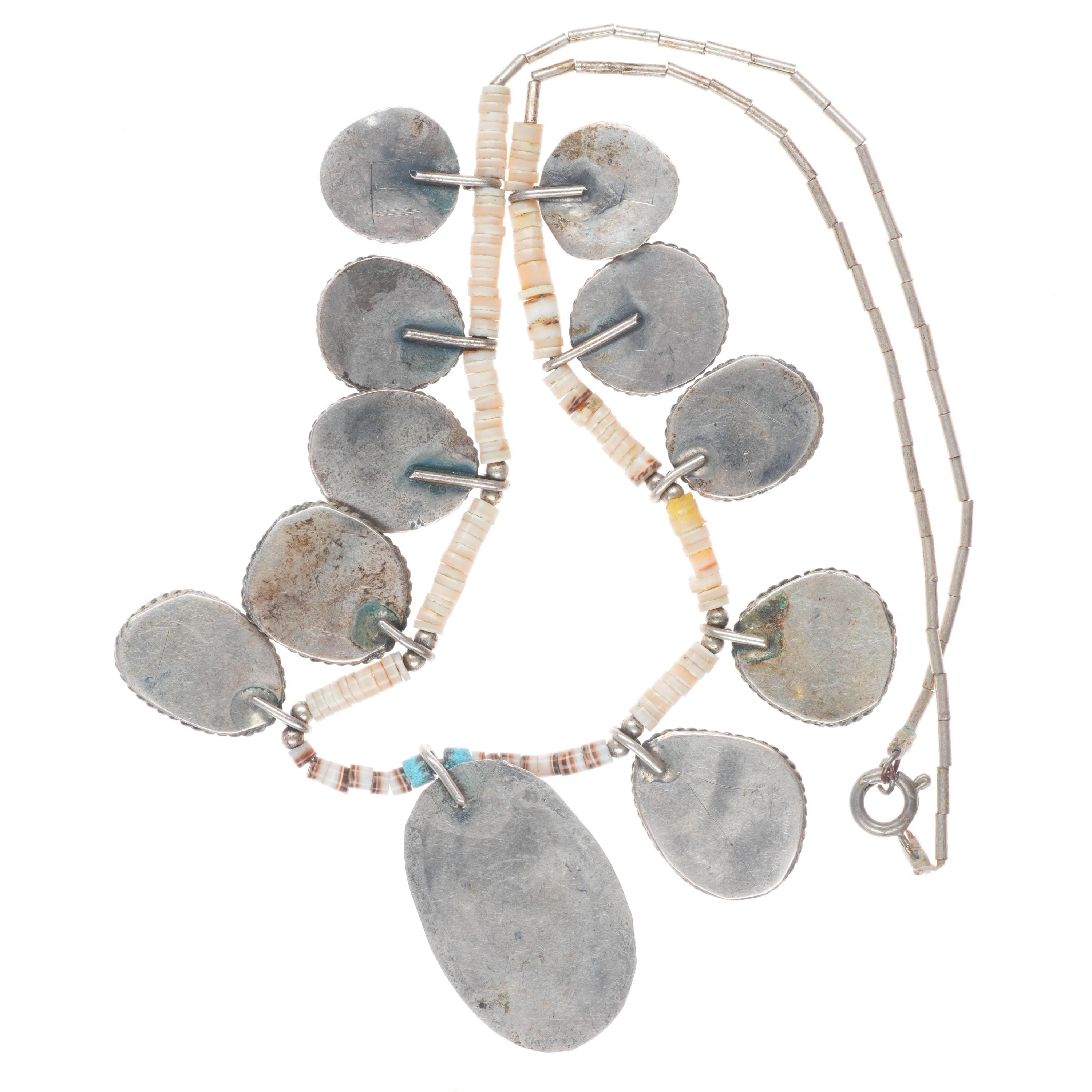 16" Vintage Native American sterling silver shell heishi turquoise tab necklace