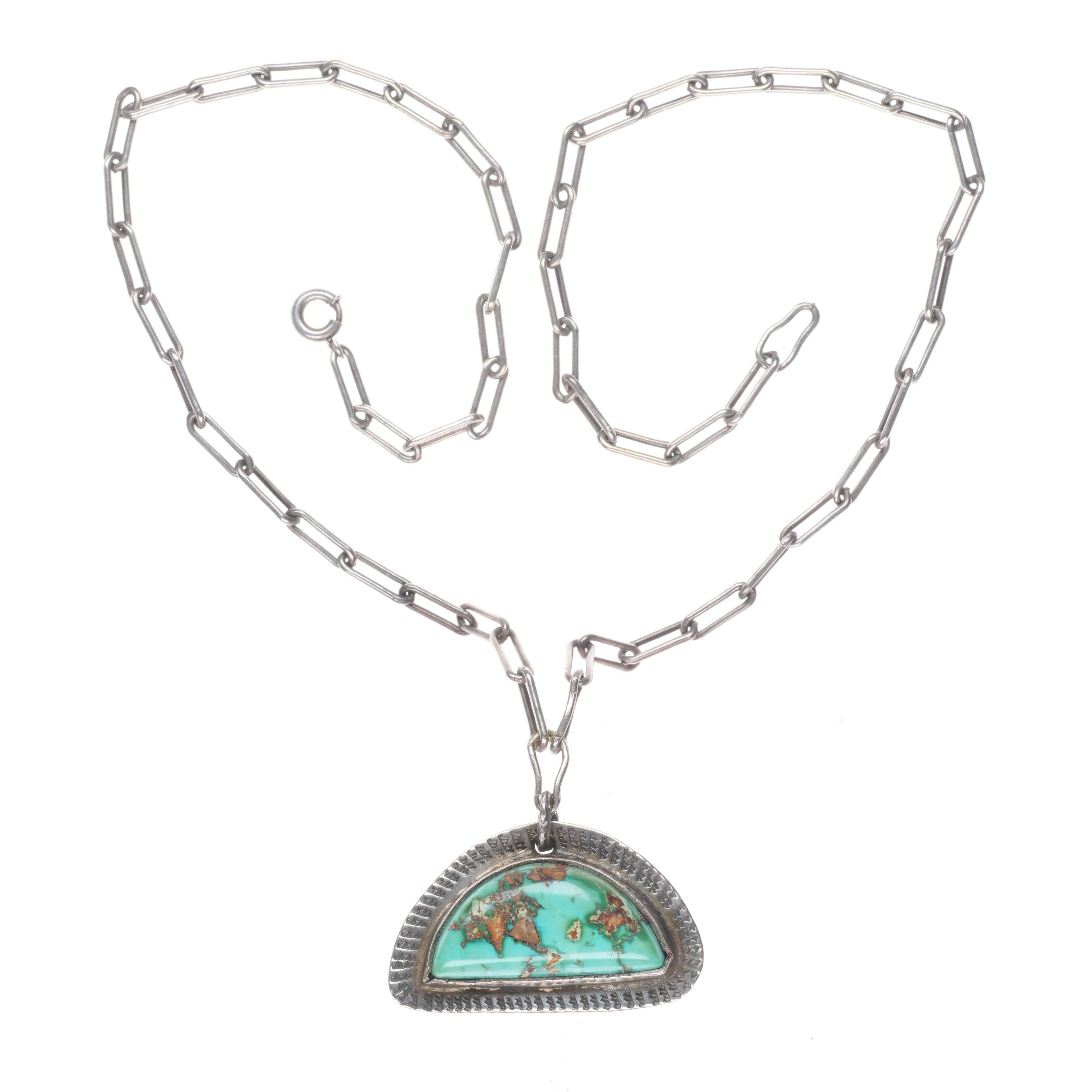 17" c1940's Navajo sterling silver high grade turquoise pendant necklace