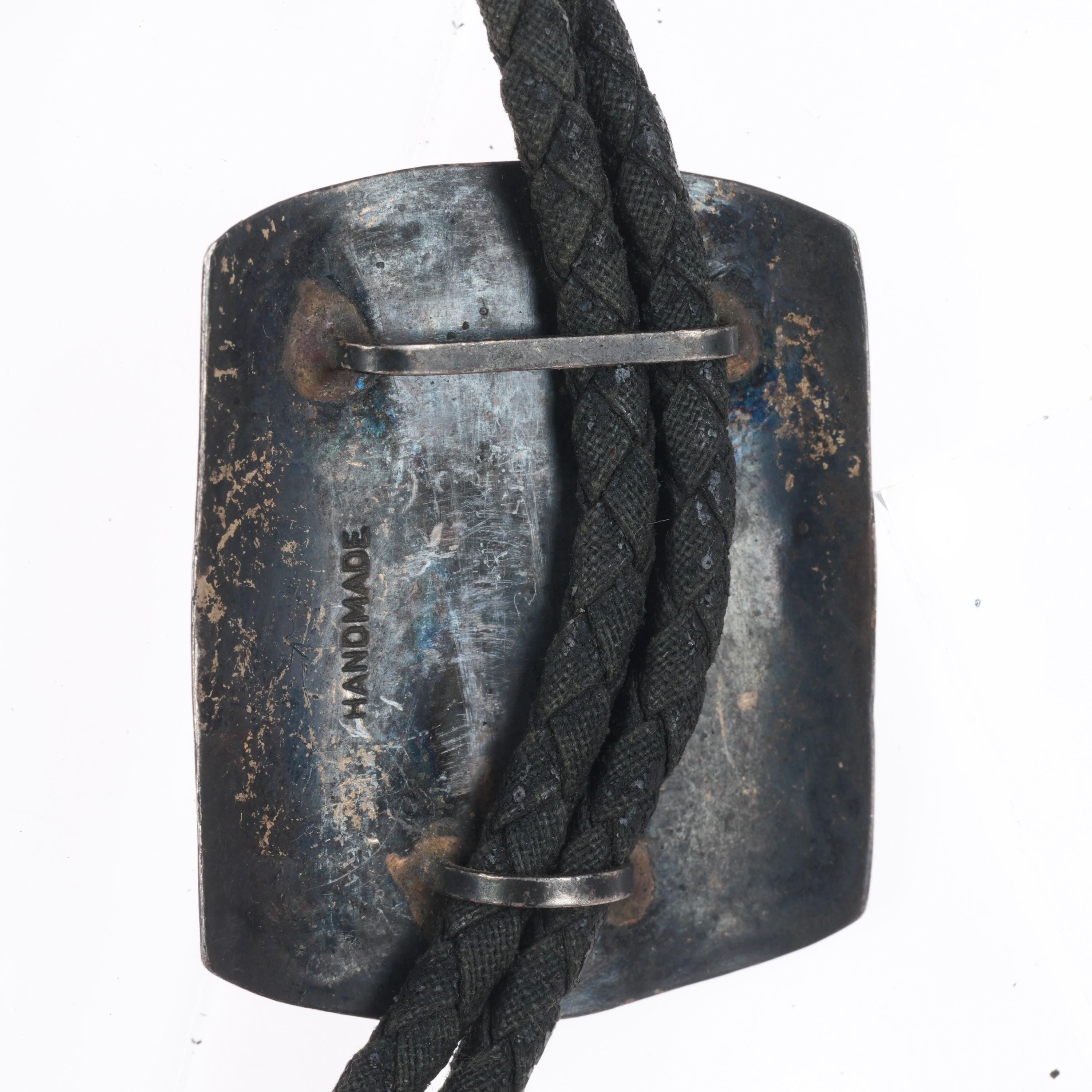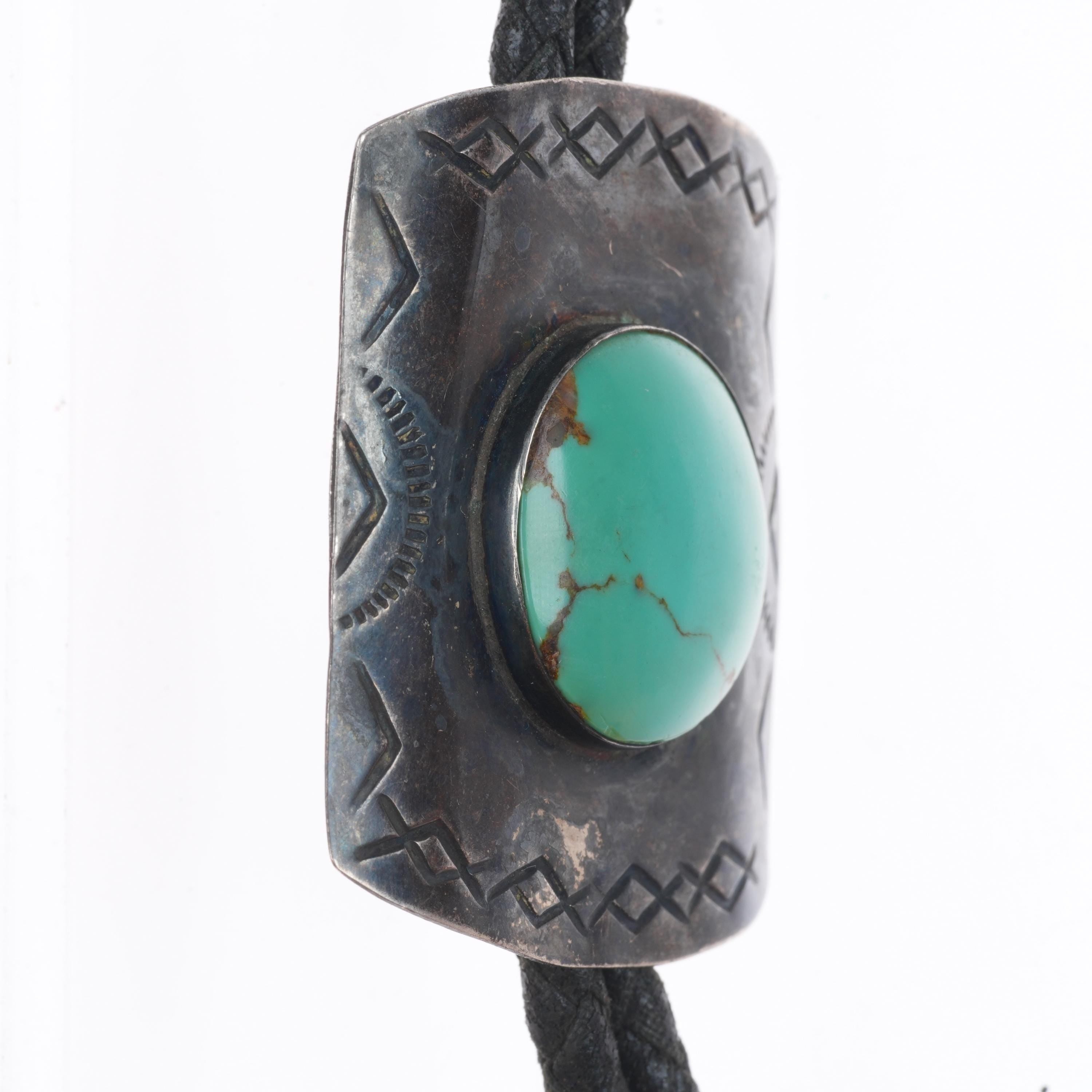 1950's Navajo hand stamped sterling silver green turquoise bolo tie