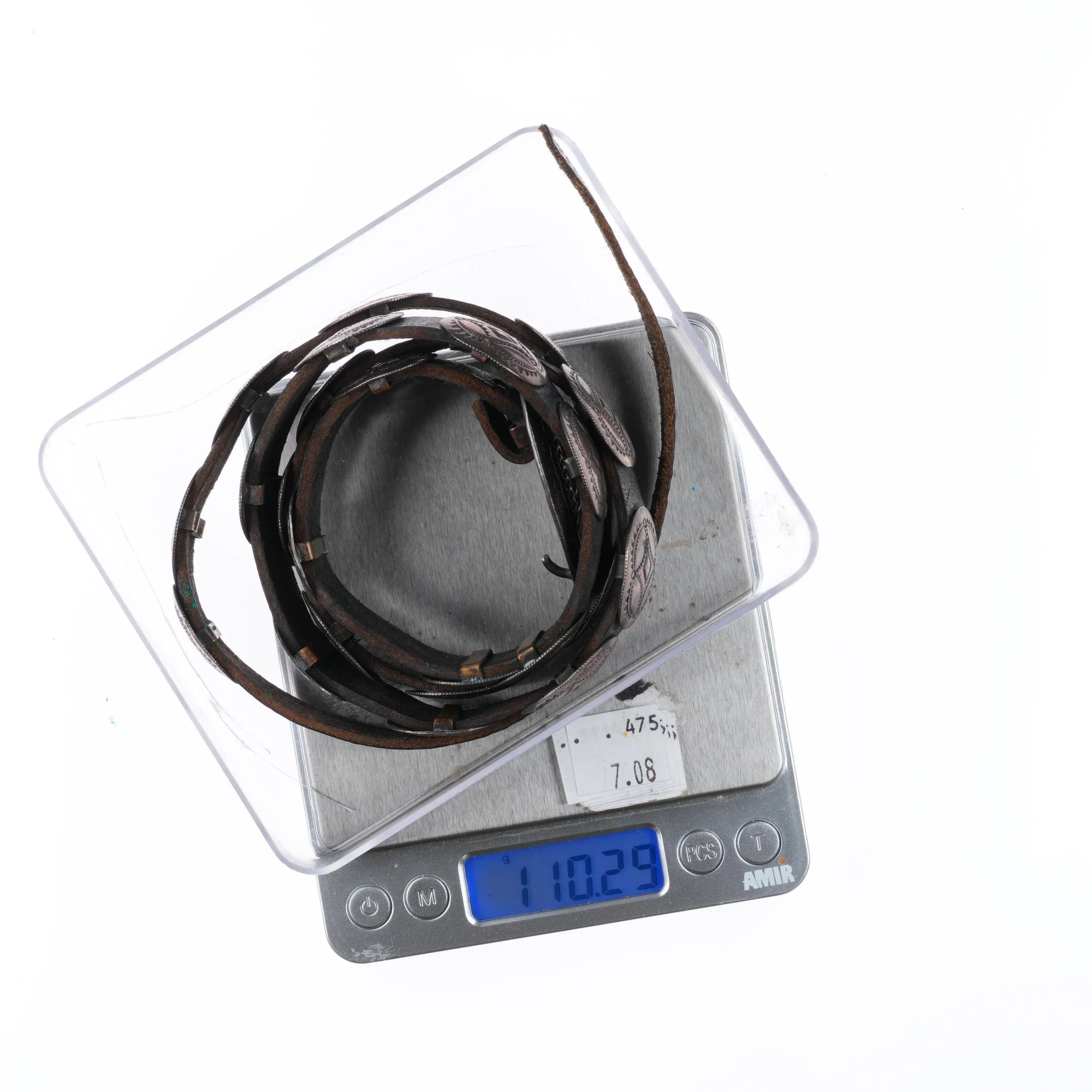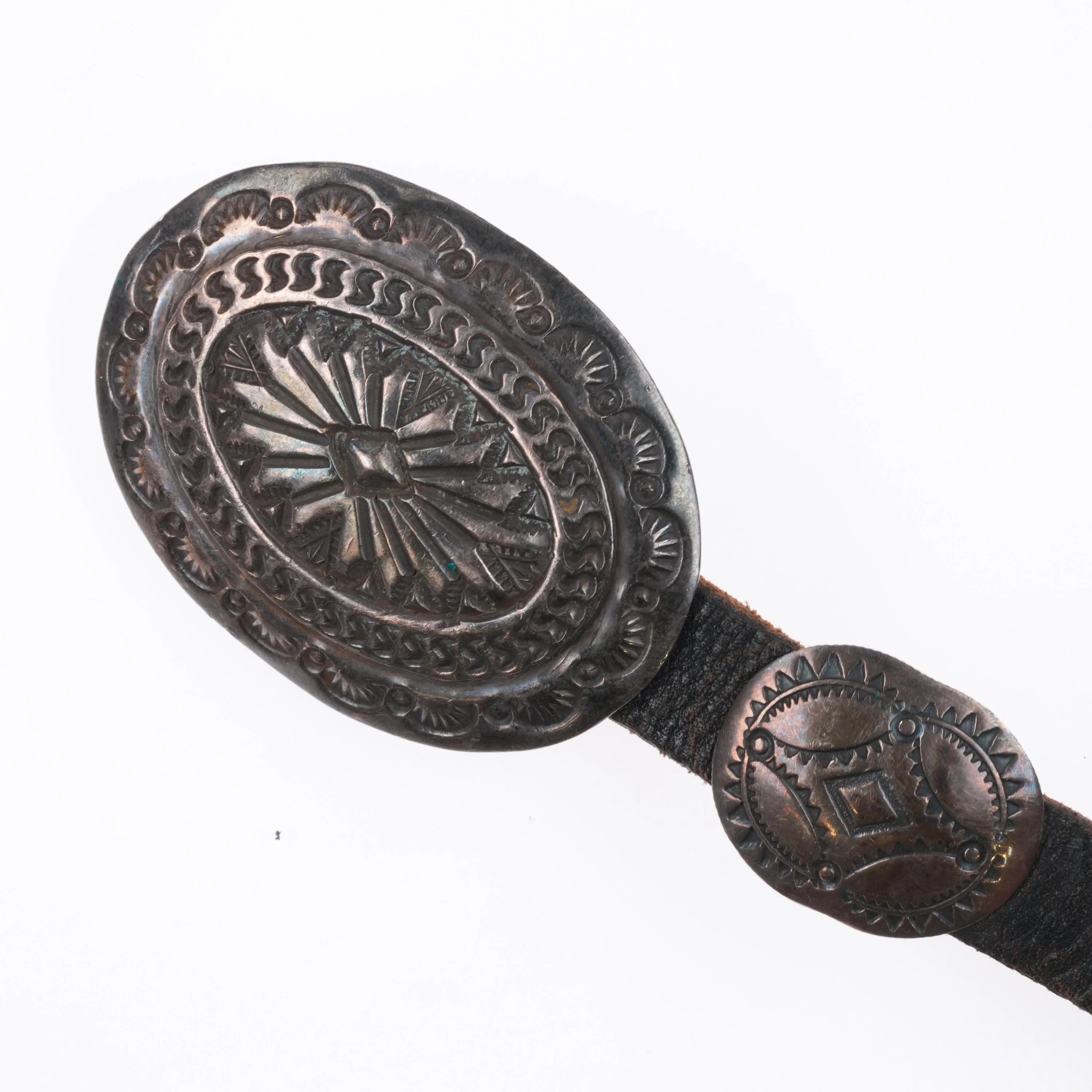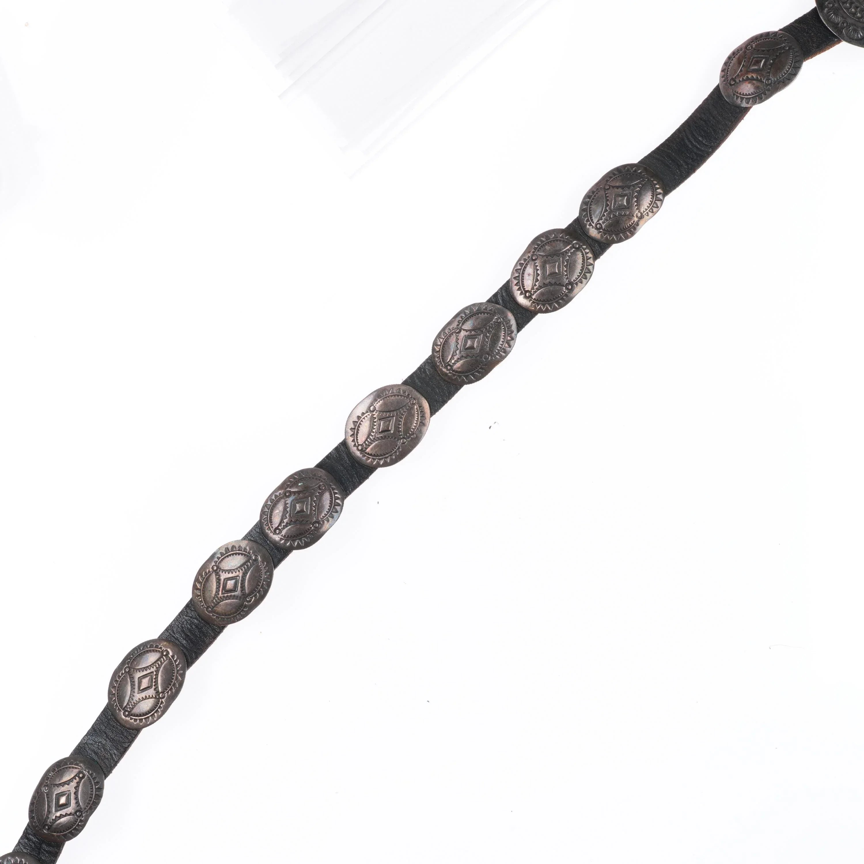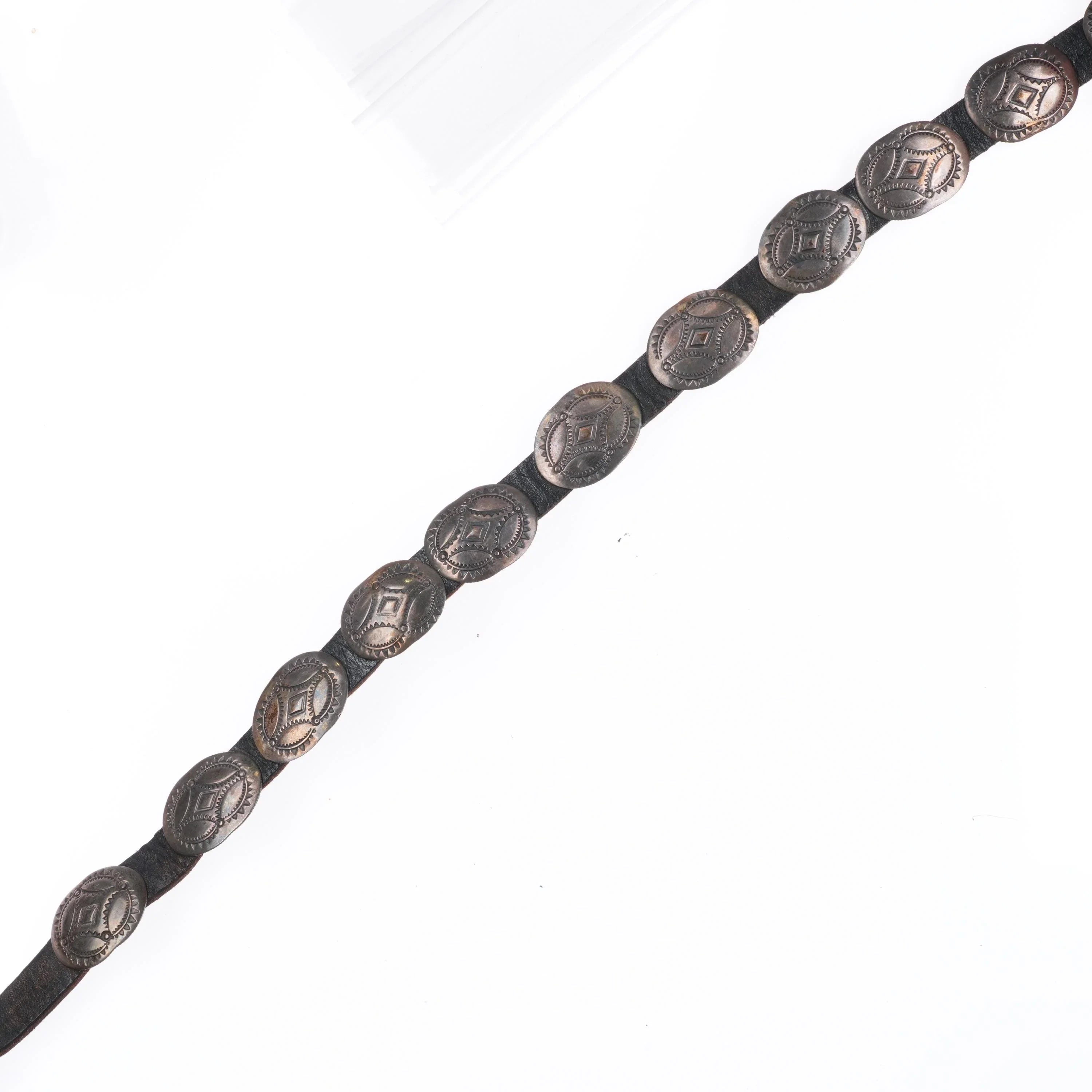 40" Vintage Navajo Slim hand stamped sterling silver coin concho belt/hatband