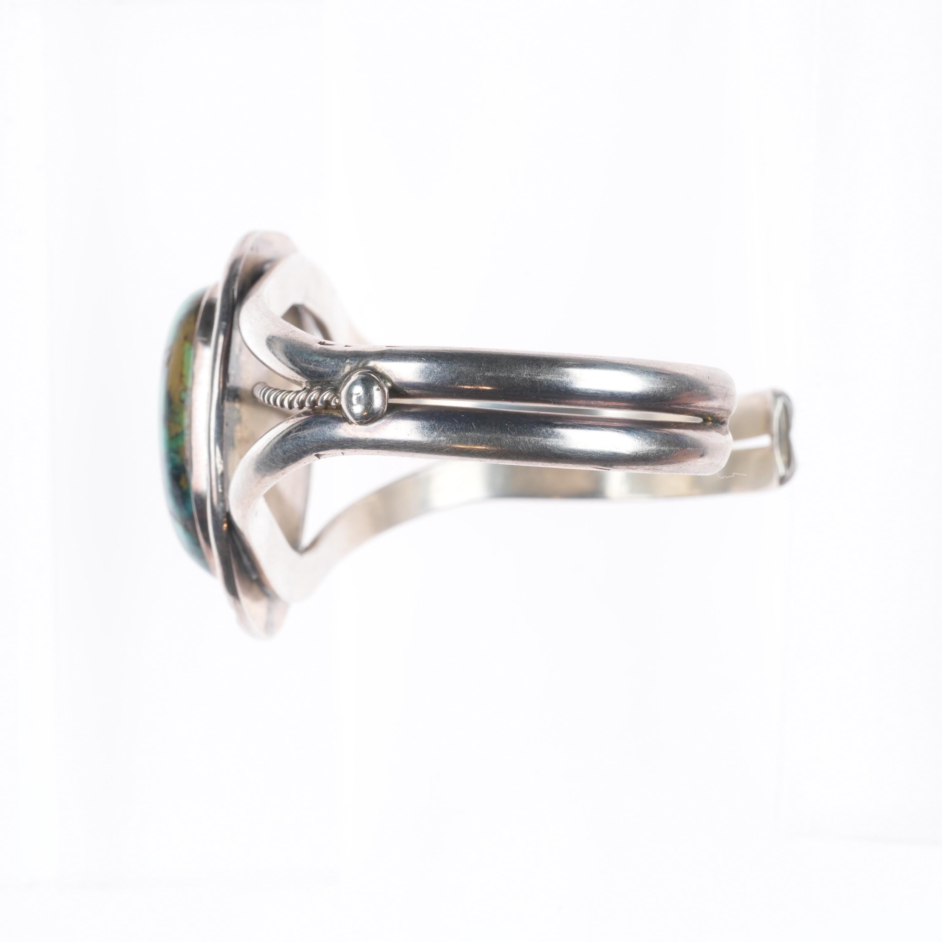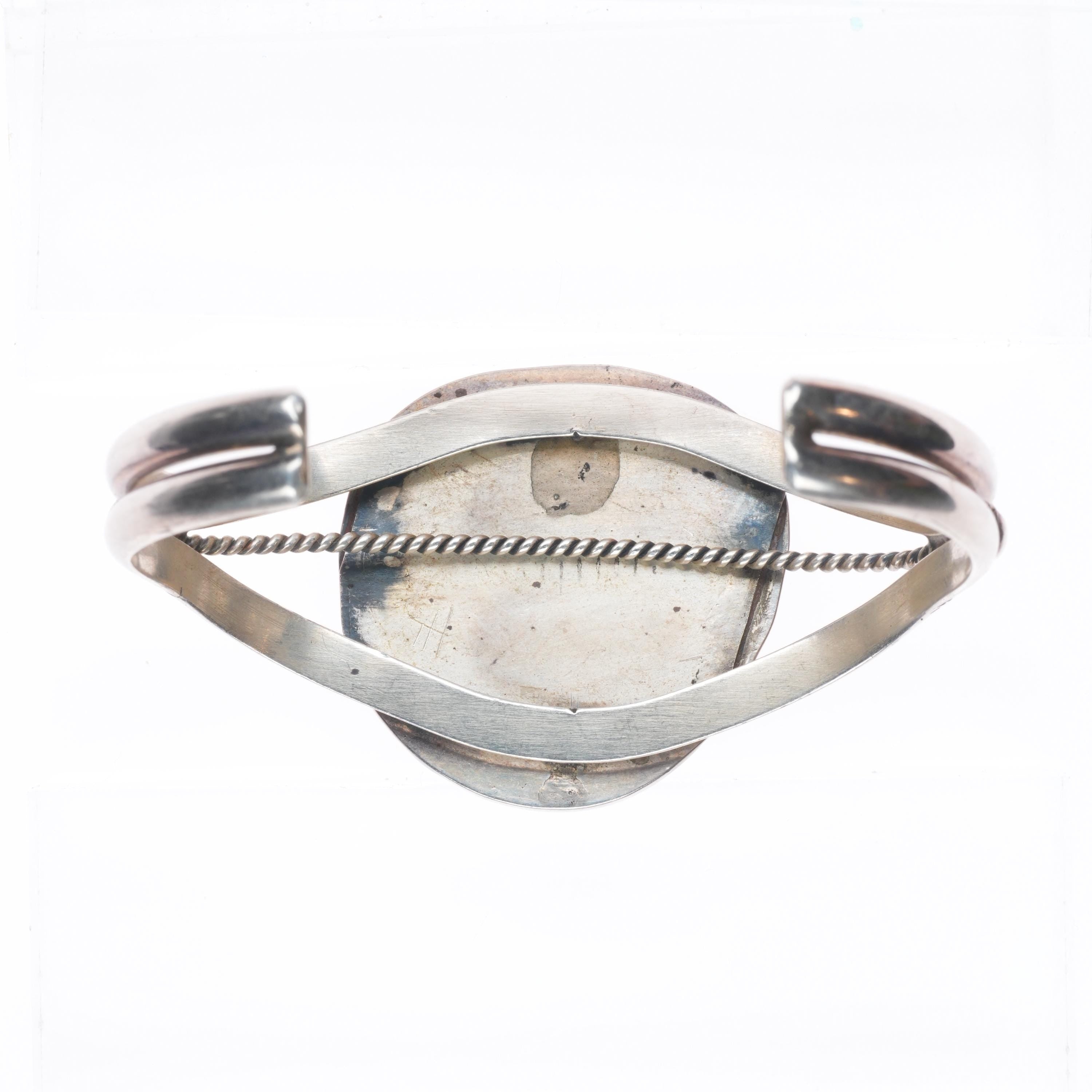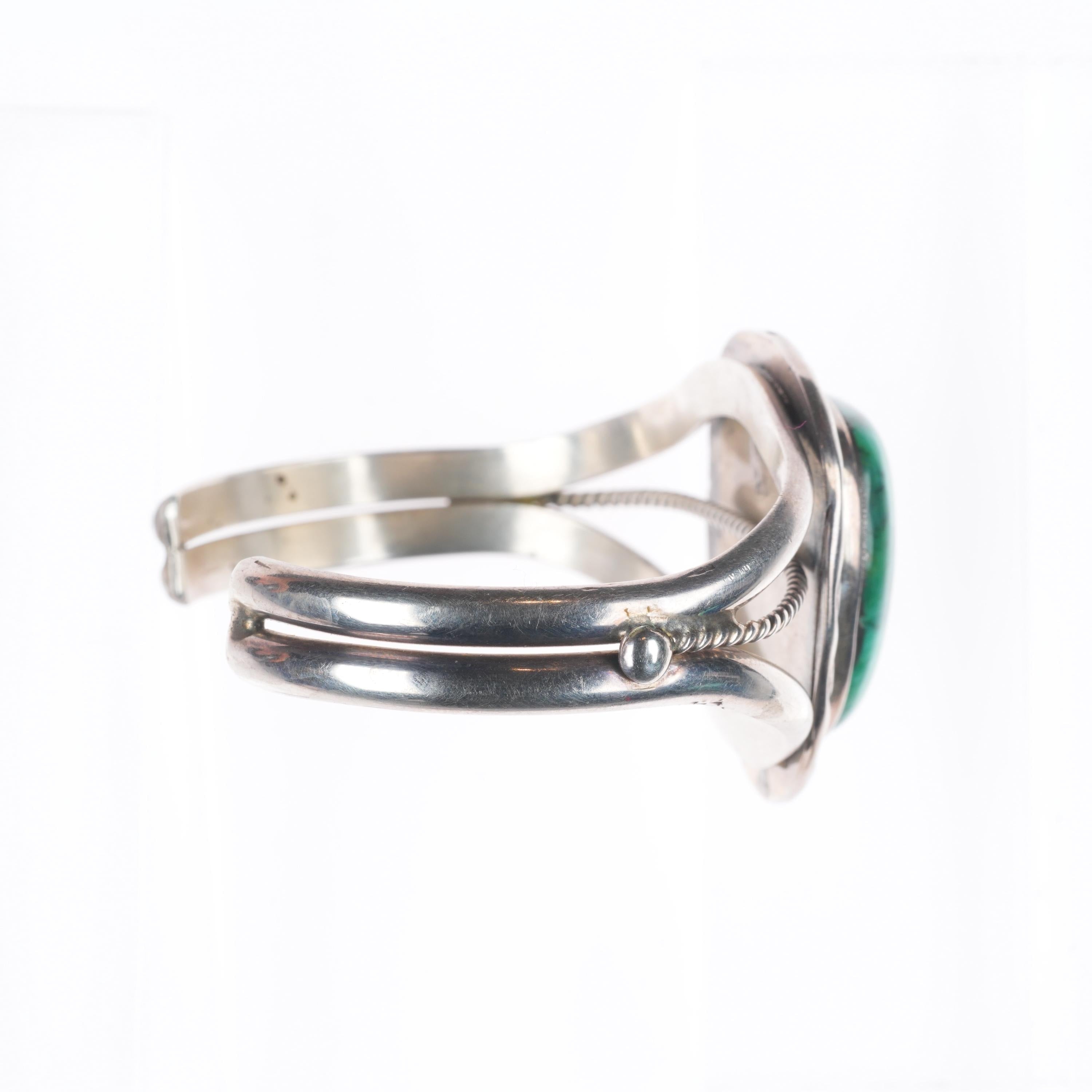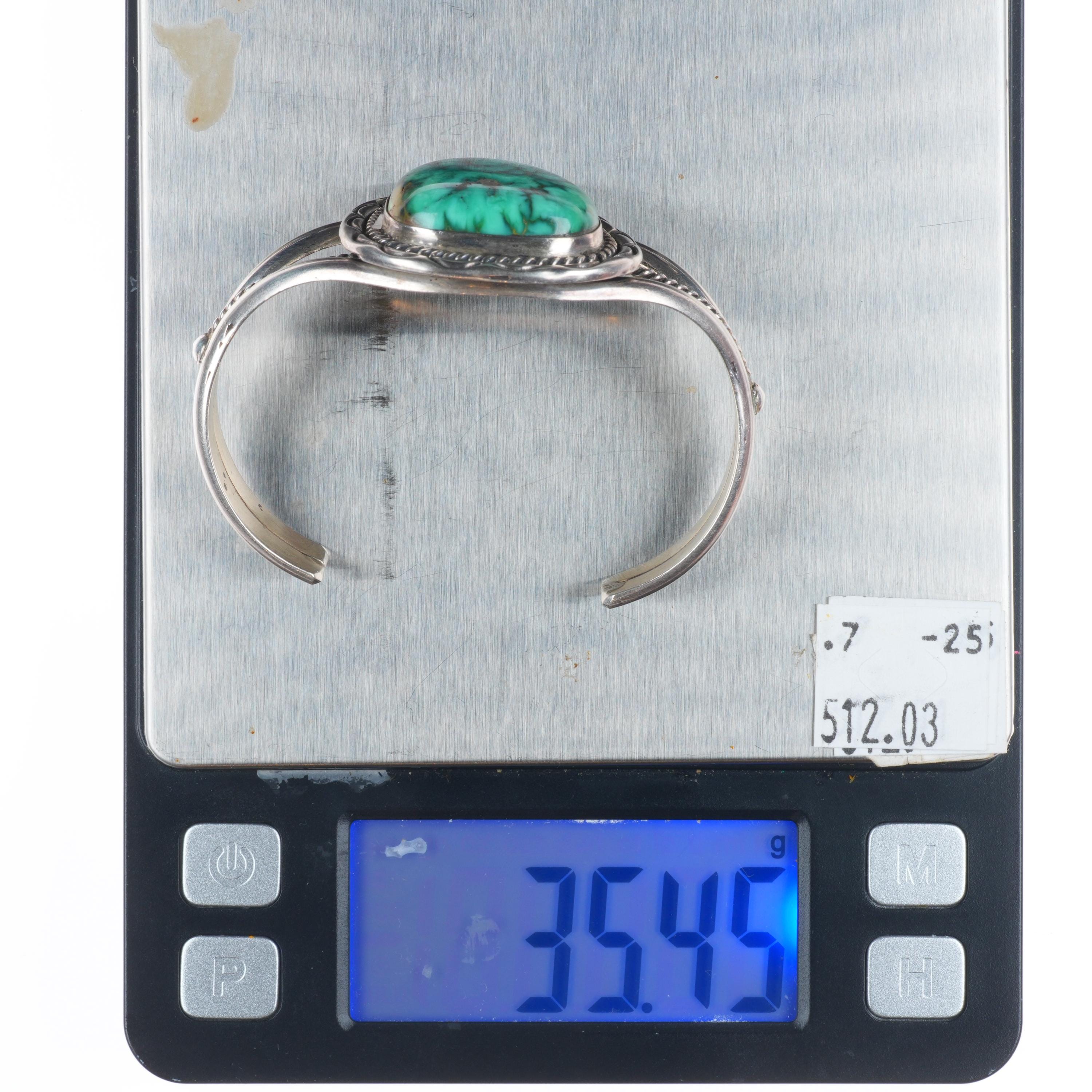6.1" Vintage Navajo sterling silver high grade turquoise cuff bracelet. Tested and guaranteed solid sterling silver with weight and measurements in pictures. Circa third quarter of the 20th century with some expected age appropriate wear.