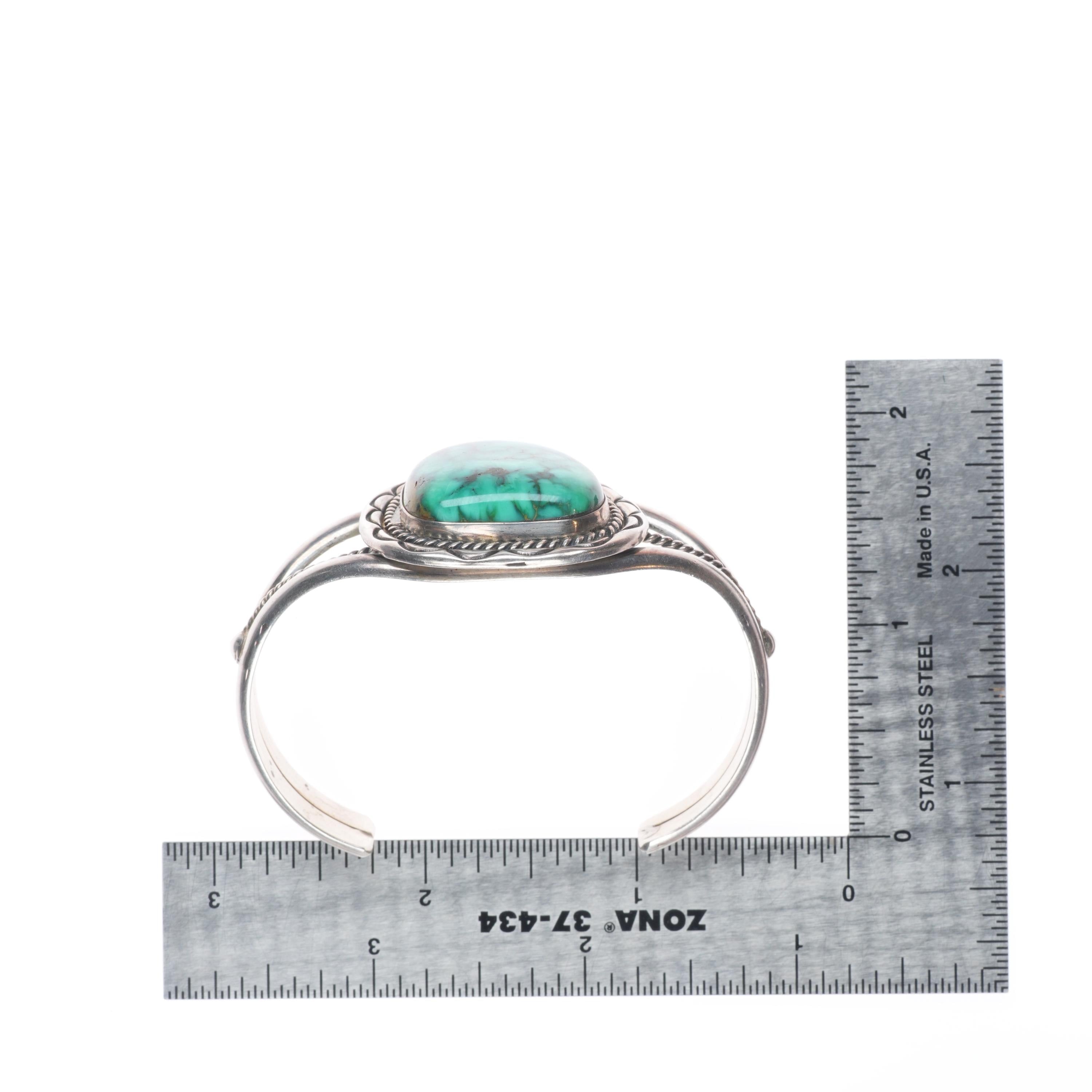6.1" Vintage Navajo sterling silver high grade turquoise cuff bracelet