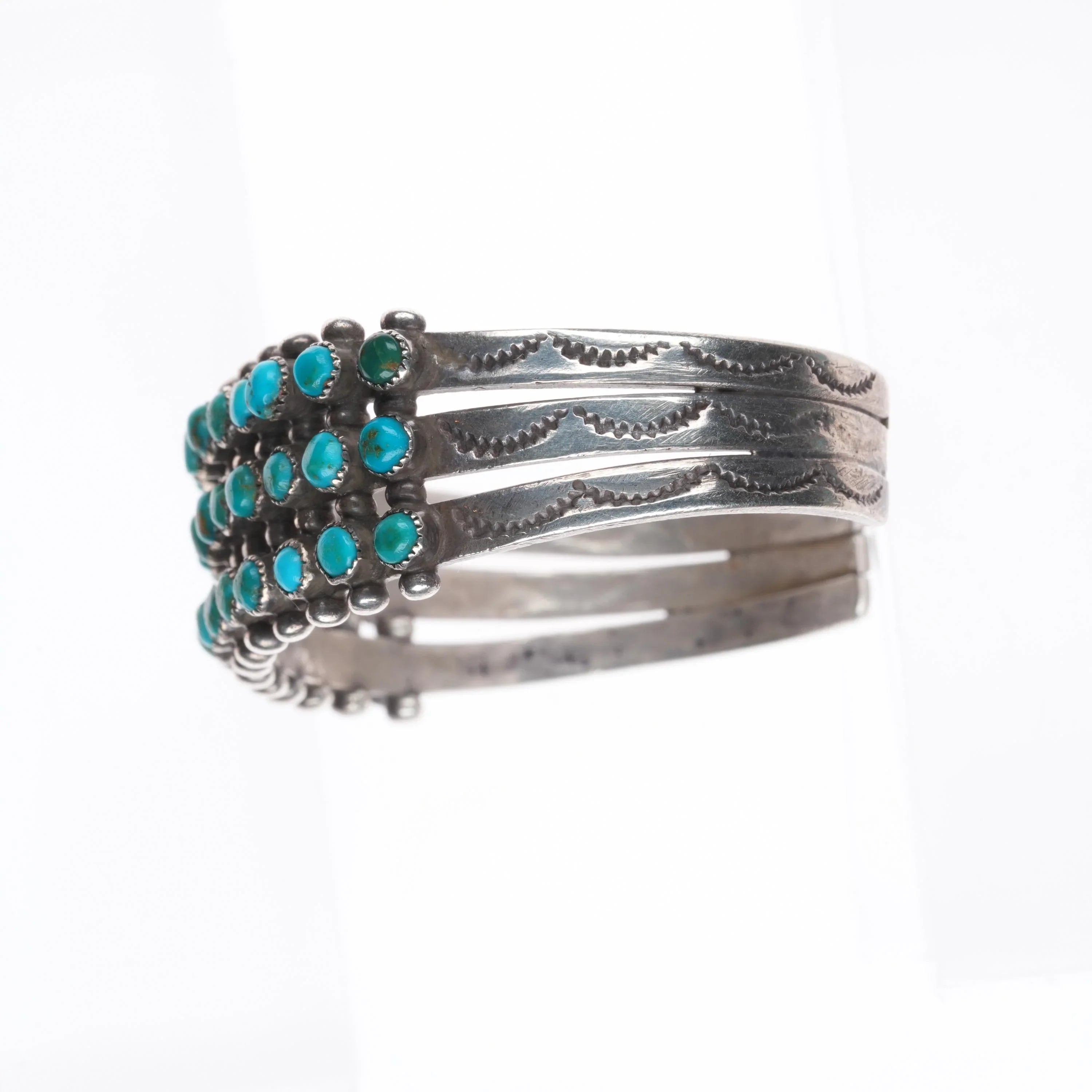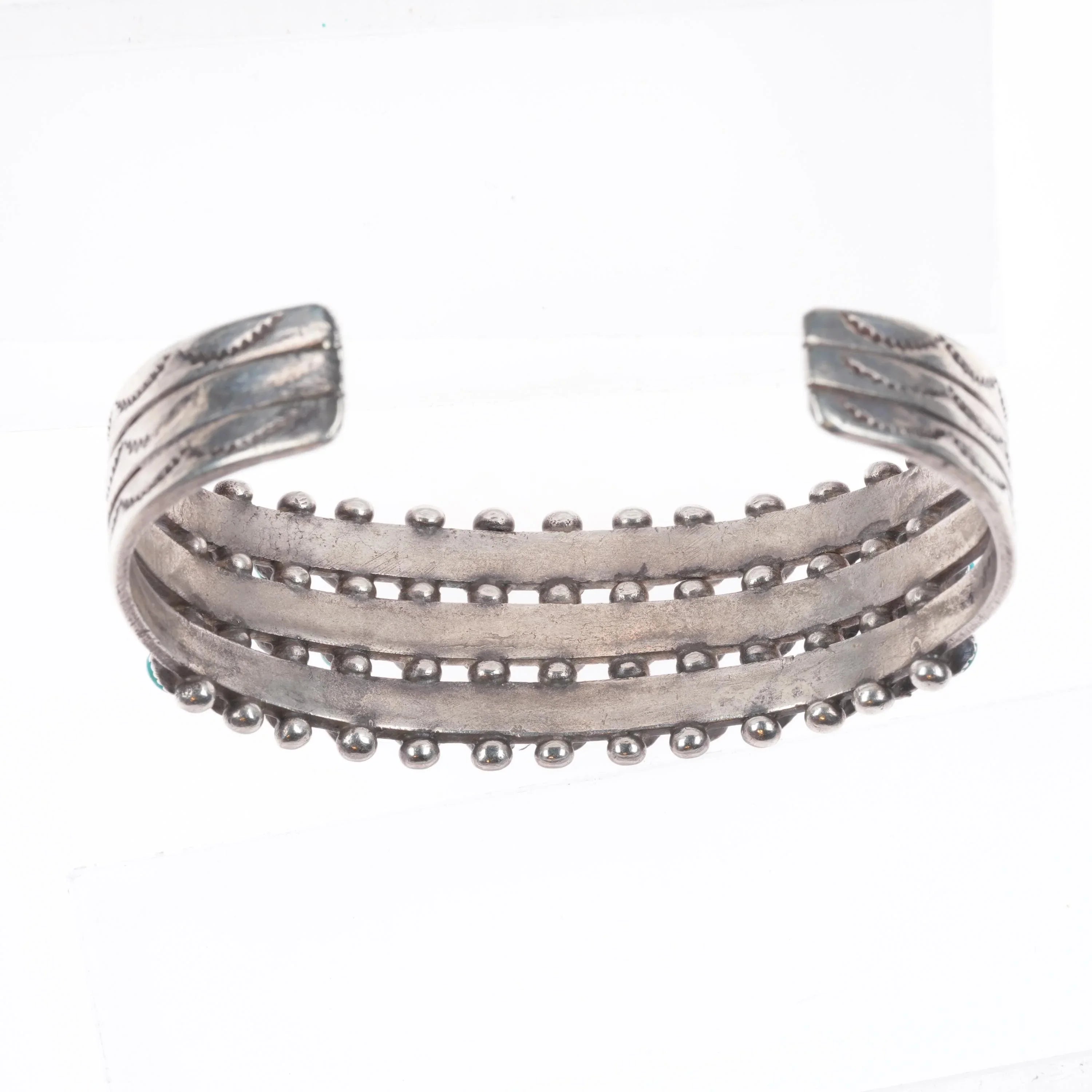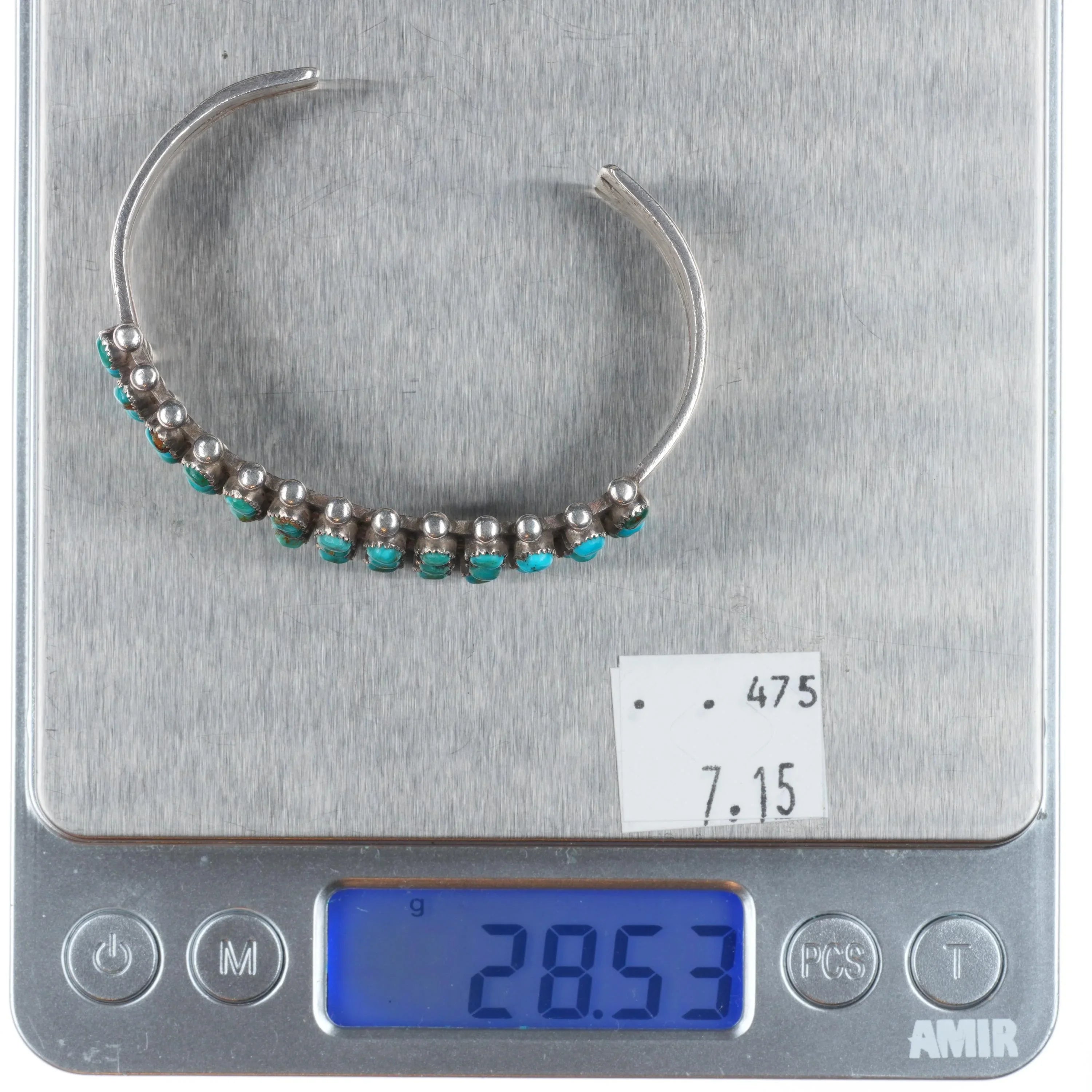 6" 1940's Zuni 3 row snake eye turquoise cuff bracelet sterling silver