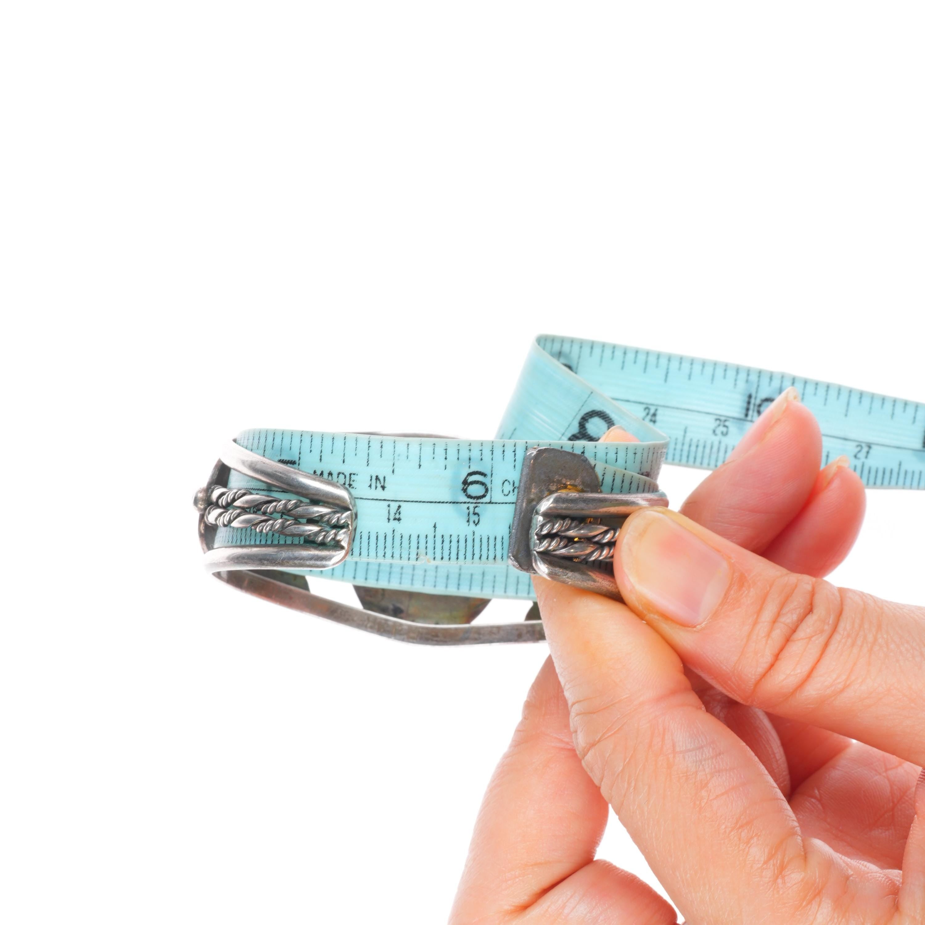 Bracelets are shown in the photos with a tape measure inside the bracelet, other photos will typically show the gap size. The size at the beginning of the title includes the gap. Almost all bracelets that don‘t have inlay work should be adjustable by at least .25", please refer to pictures for the gap size to see if it would work if slightly adjusted as the gap would change.