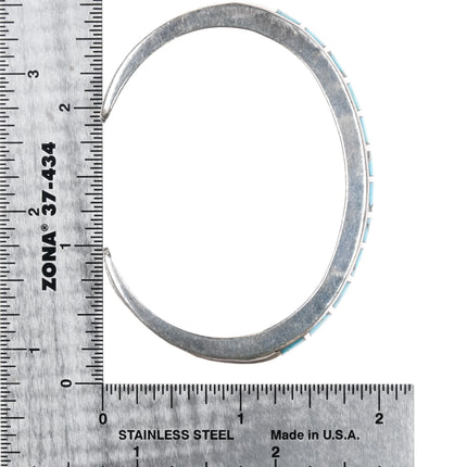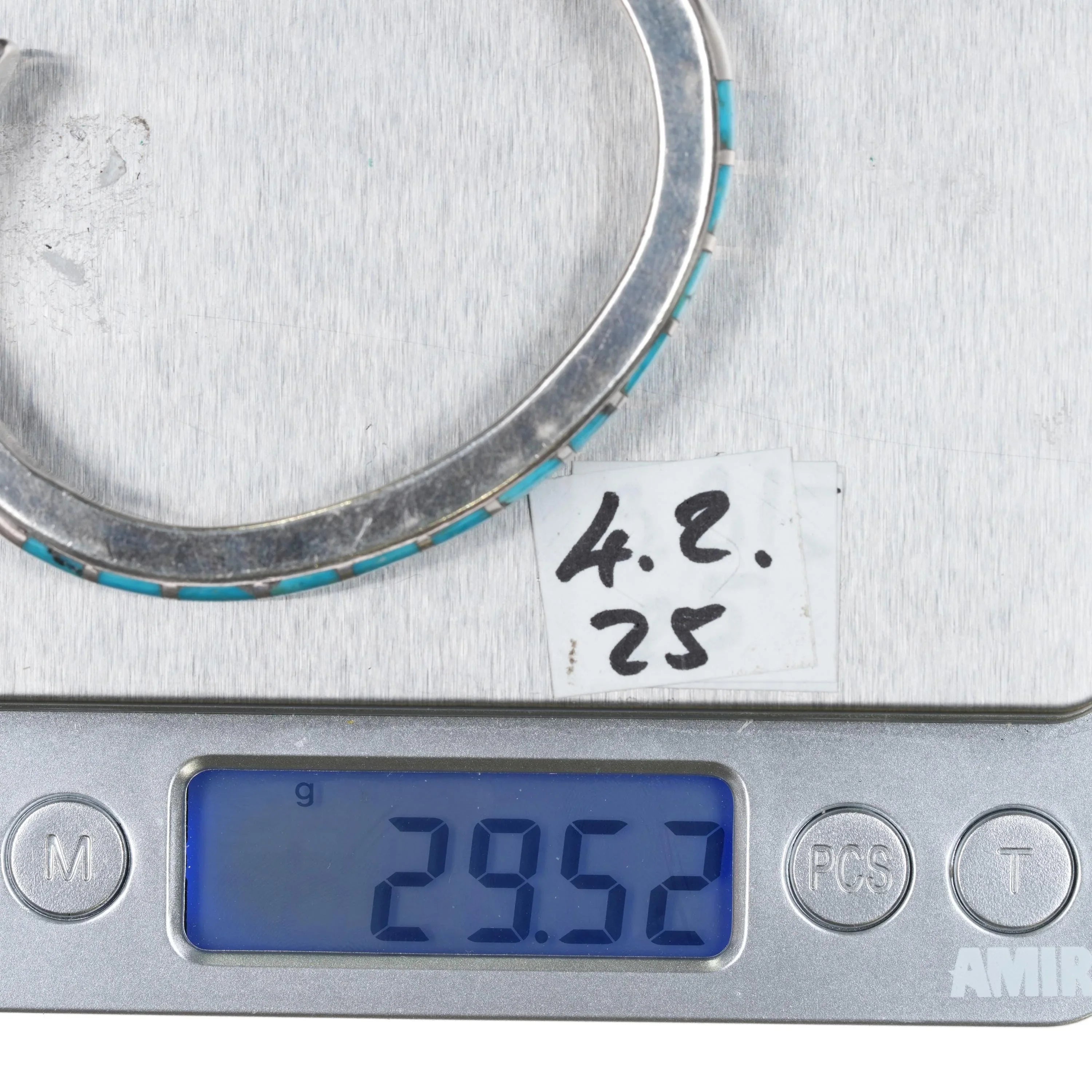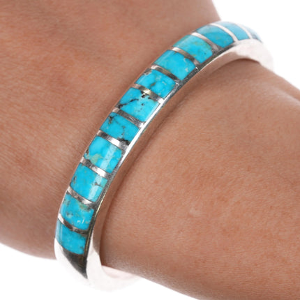 6.2" vintage Zuni sterling silver channel inlay turquoise row cuff bracelet