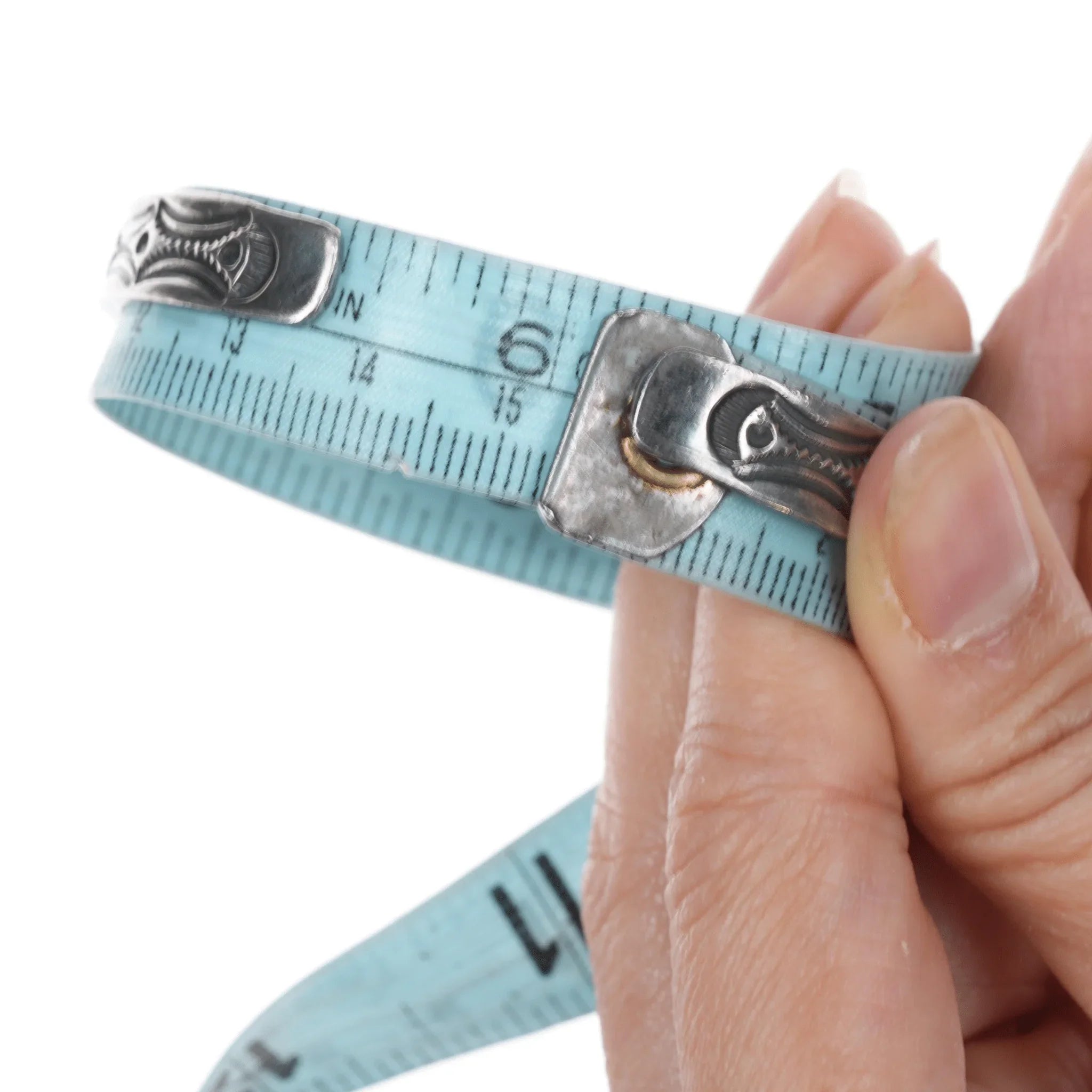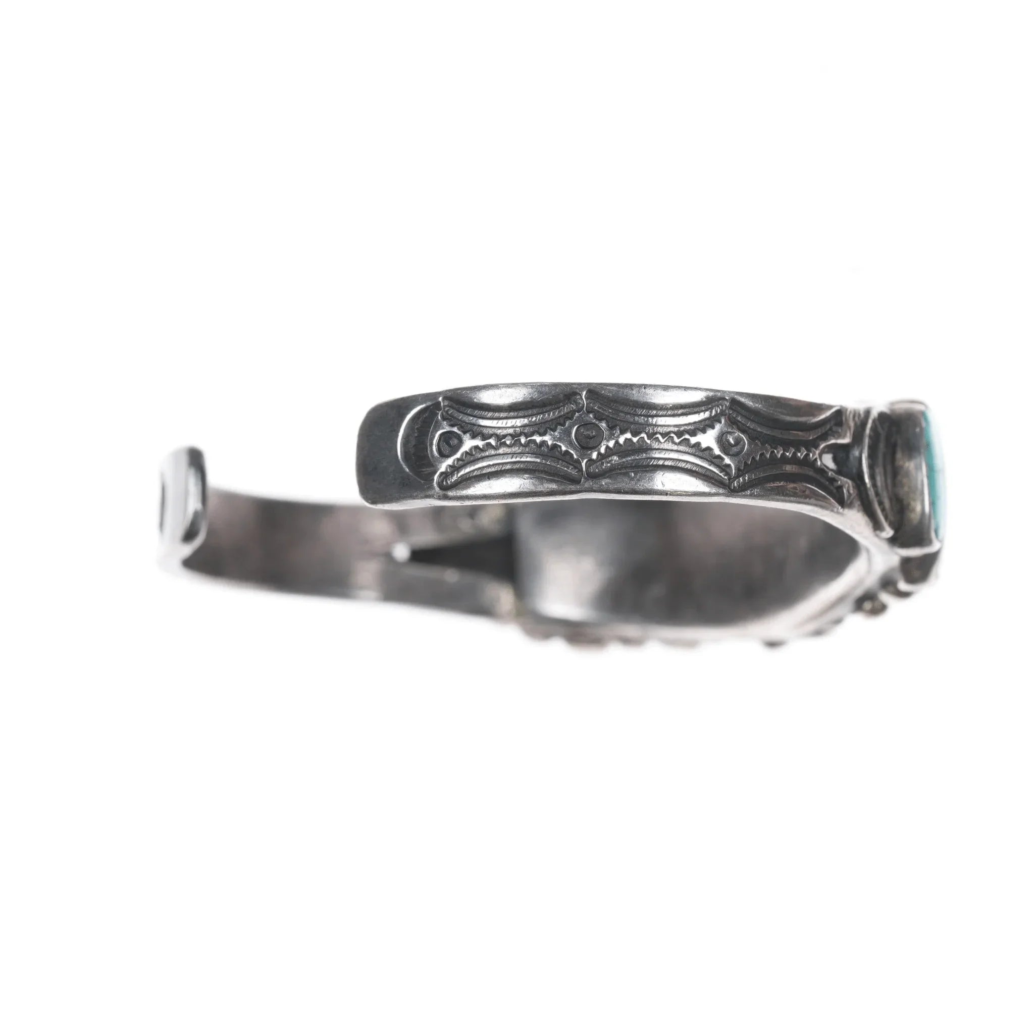 All precious metals are tested and guaranteed, any Native American jewelry<br>referred to as Silver or Sterling is guaranteed to be a minimum of 90% (coin)<br>silver and possibly higher content. Anything marked is guaranteed to be what<br>it's marked, most bracelets are photographed on a 6" wrist (non hairy), rings<br>photographed on the appropriate sized finger when possible. With bracelets if<br>the measurement is not given in the description then inside circumference is<br>shown where the metal meets the number on the the cloth tape measure.