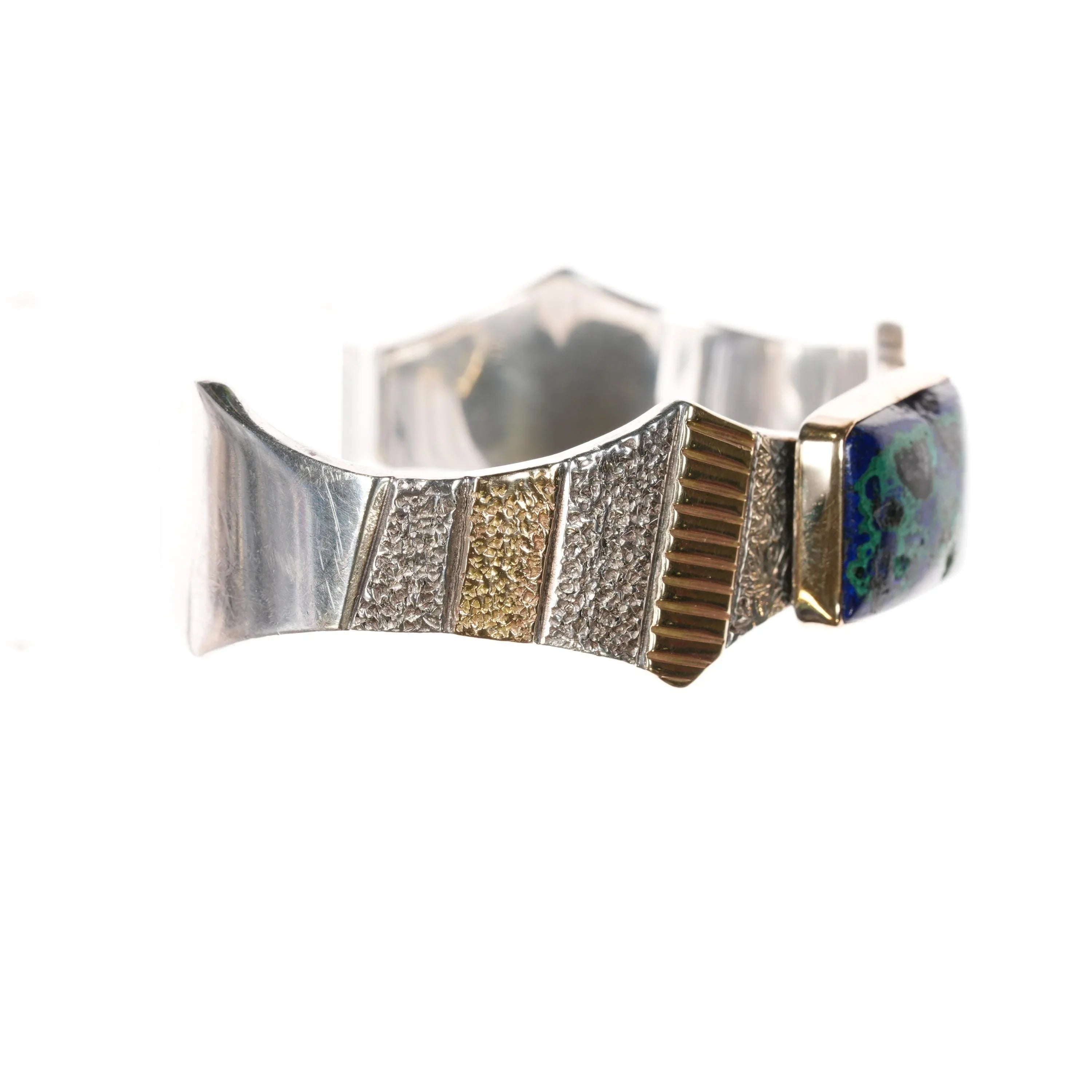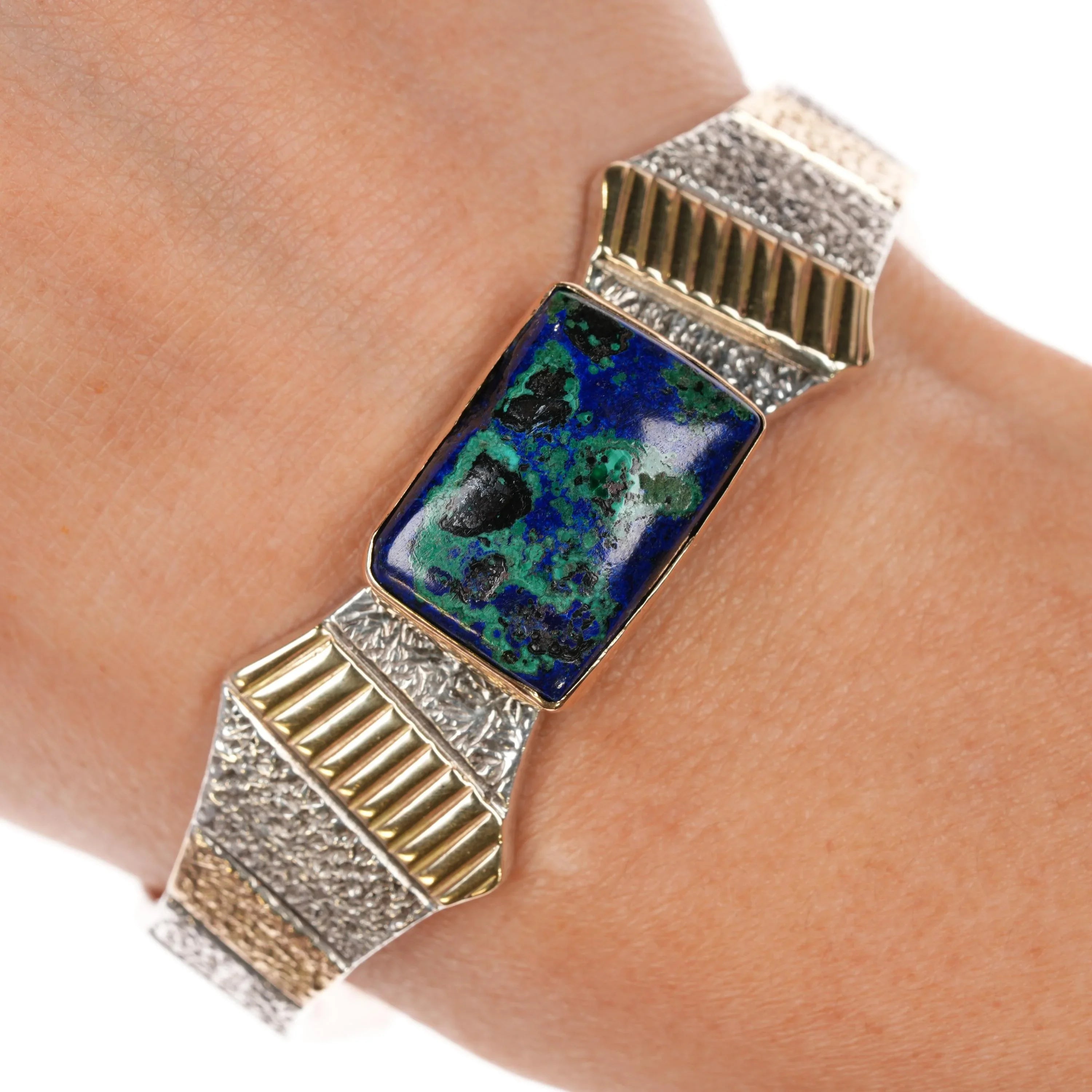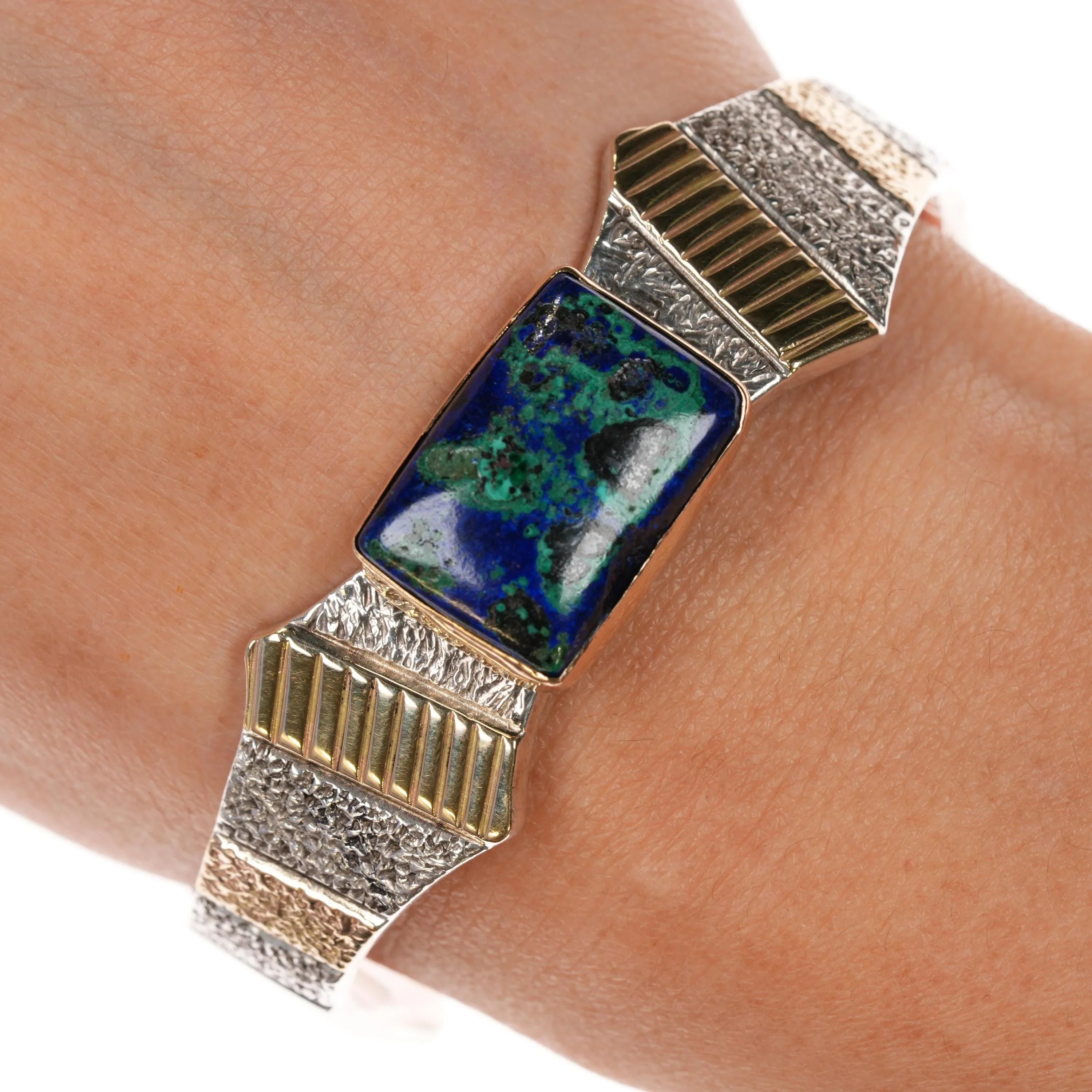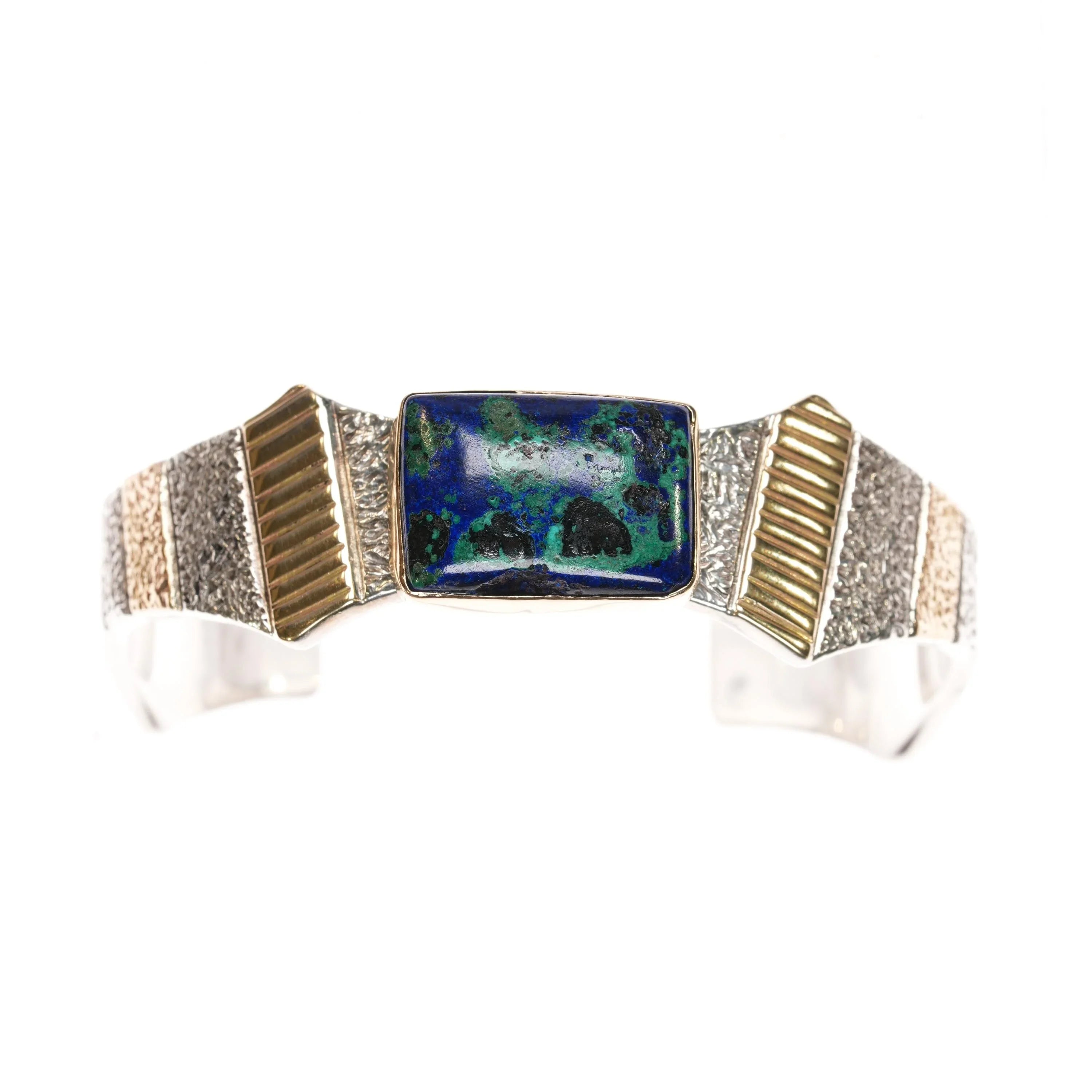 6.25" Marc Antia Apache 14k/Sterling Azurite cuff bracelet, clean with no damage or significant wear. Weight and mearements in pics.