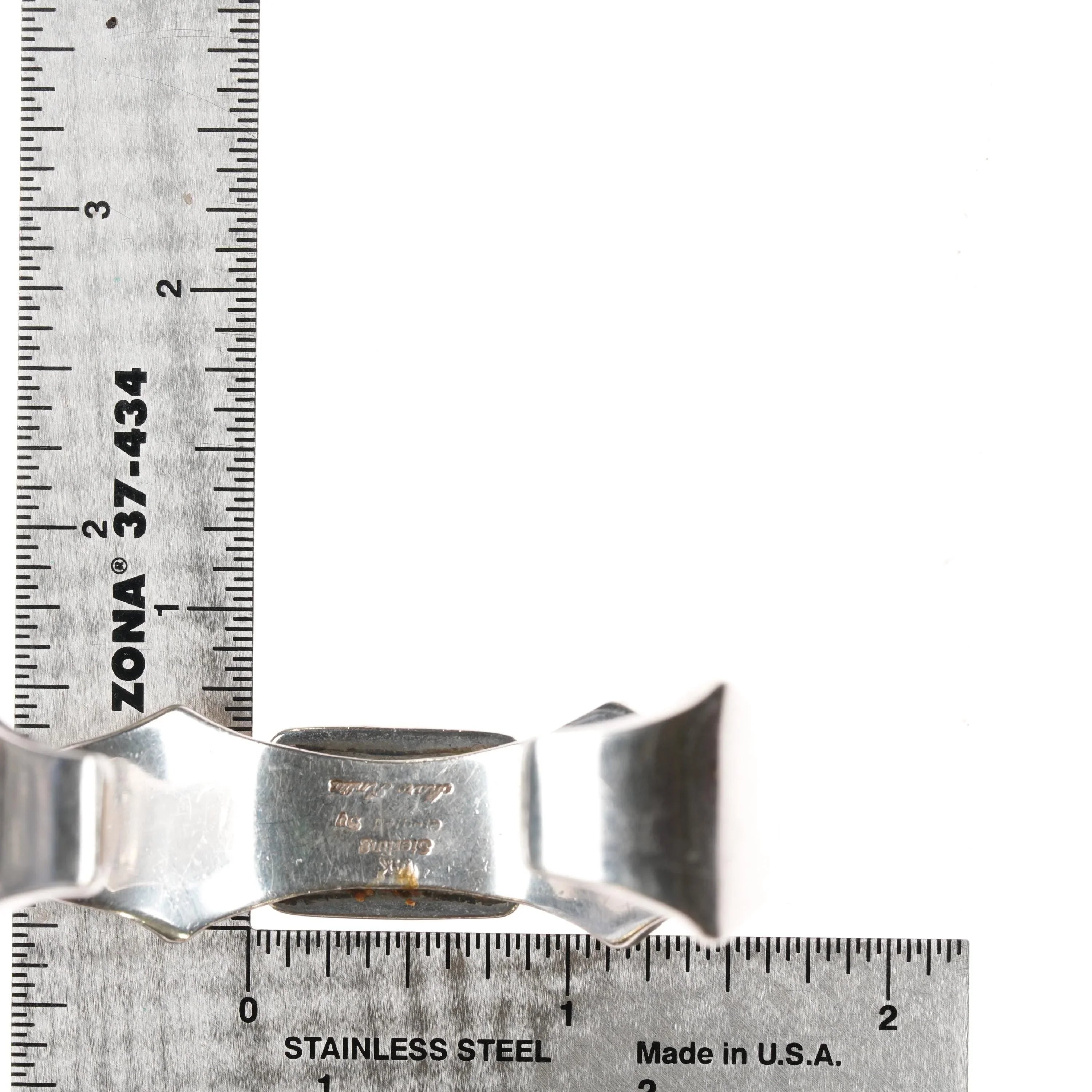 One well-versed in Native American jewelry might notice that the traditional Navajo stamp style seen in Marcs jewelry is liken to a fellow Native American artists work: Emerson Bill. This is no coincidence, as both artists learned the ways of their trade together. This occurred in their salad days, and they grew to be close friends. Marcs work can be distinguished from Emersons by his addition of extra embellishments and flourishes in his stamp work.