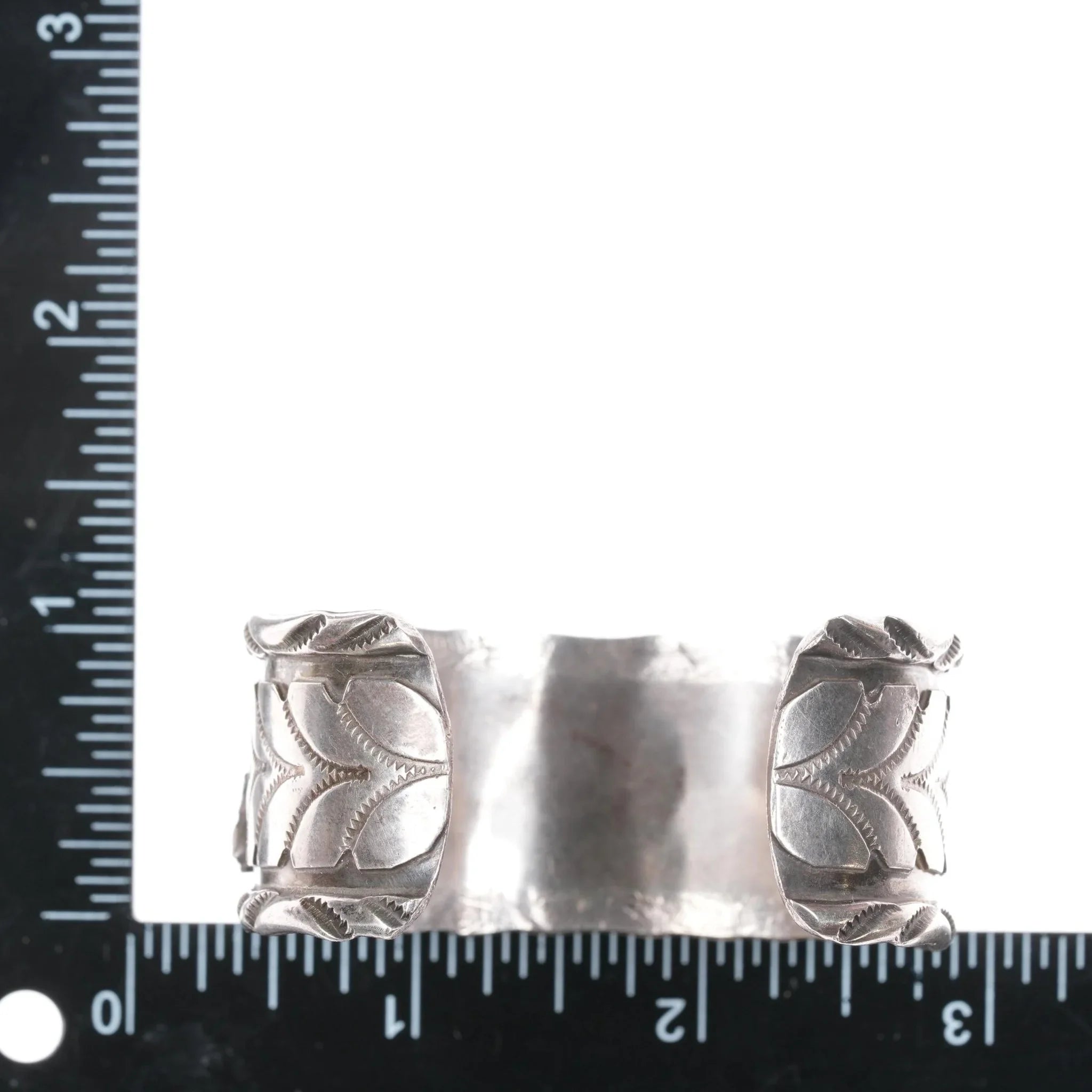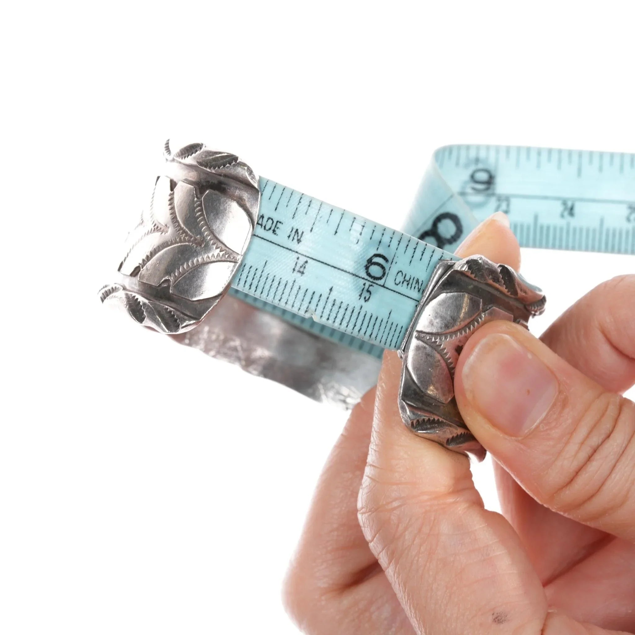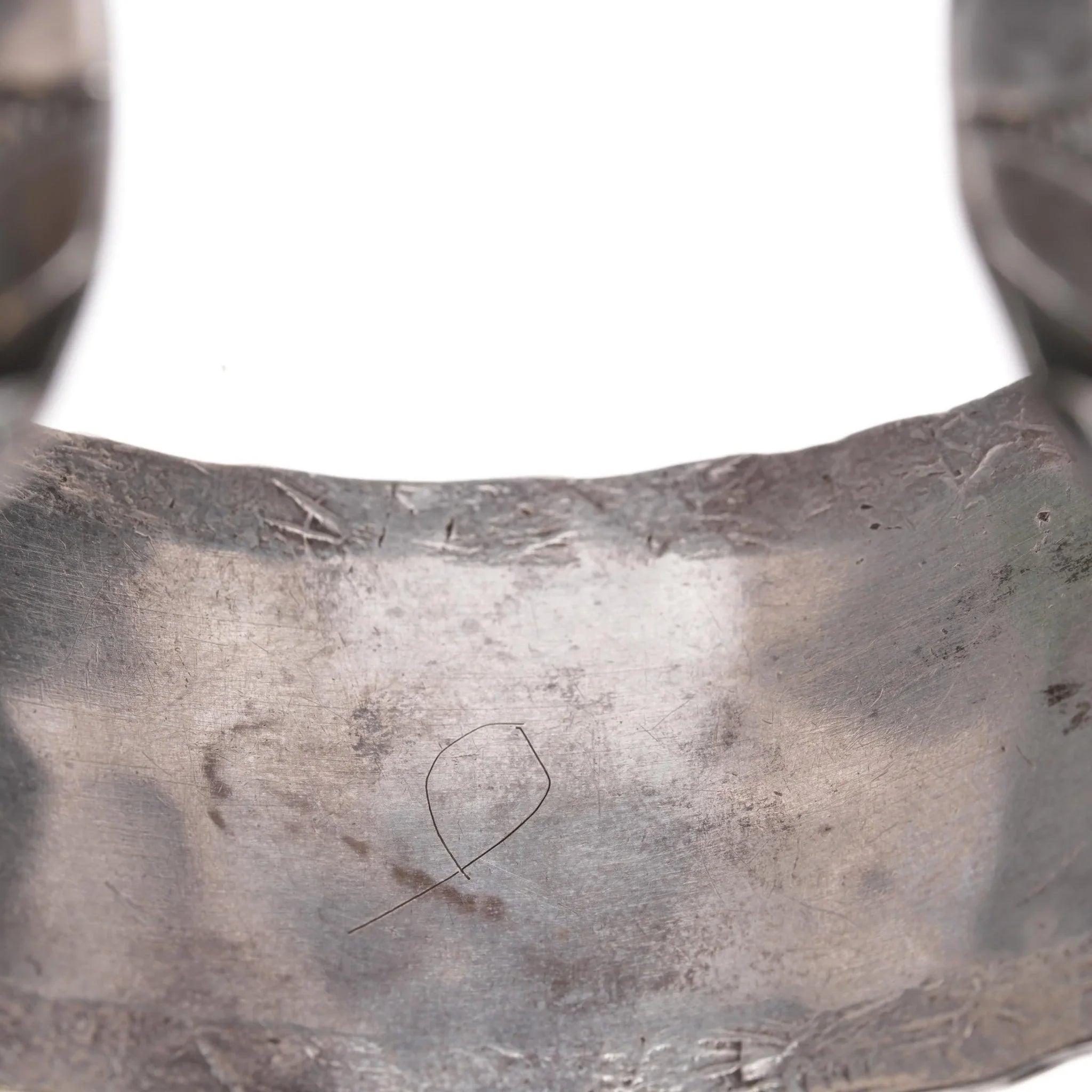 All precious metals are tested and guaranteed. A Native American jewelry piece referred to as "silver" or "ingot" is guaranteed to be at least 90% silver. I rarely use the word "sterling" when referring to older Native American silver or really any older silver jewelry as silver contents vary and "sterling" is 92.5% silver. No older jewelry is going to be exactly 92.5% silver, some a little over, some a little under. It wasn‘t an exact thing with handmade jewelry. I‘ve seen thousands of pieces xrf‘d to prove this. Bracelets are photographed on a 6" women‘s wrist.