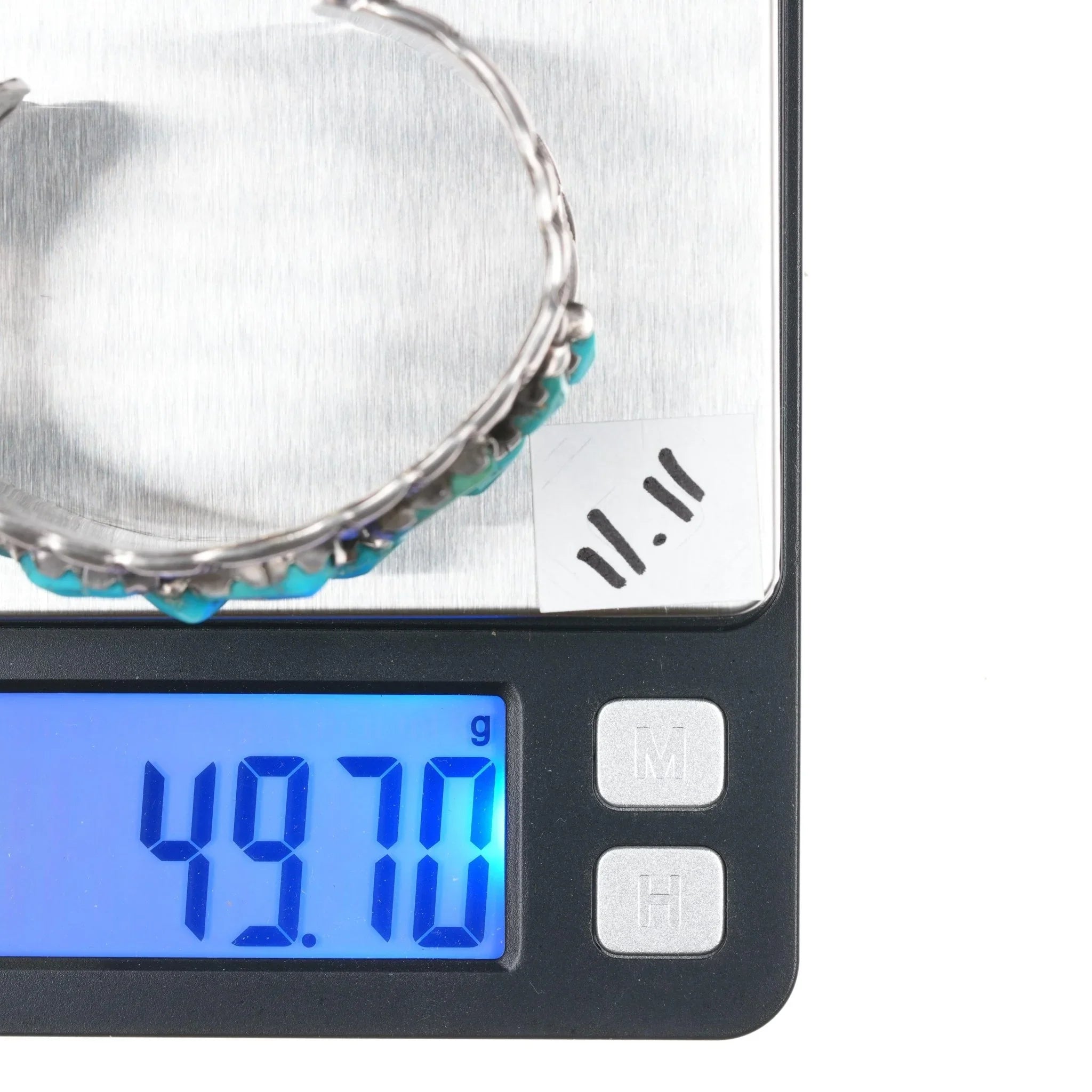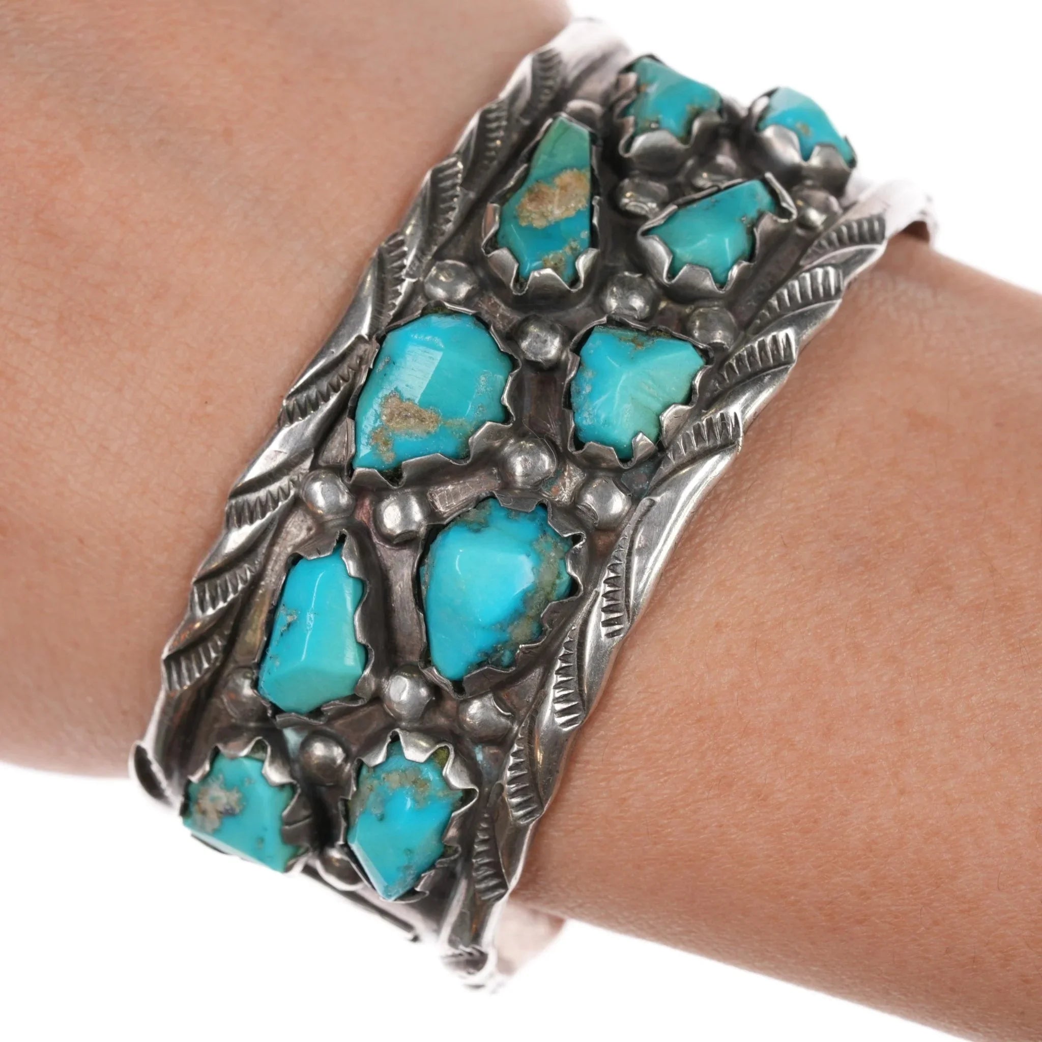 6.25" Vintage Zuni sterling carved turquoise cuff bracelet. Great unmarked solid sterling from the third quarter of the 20th century with no issues.