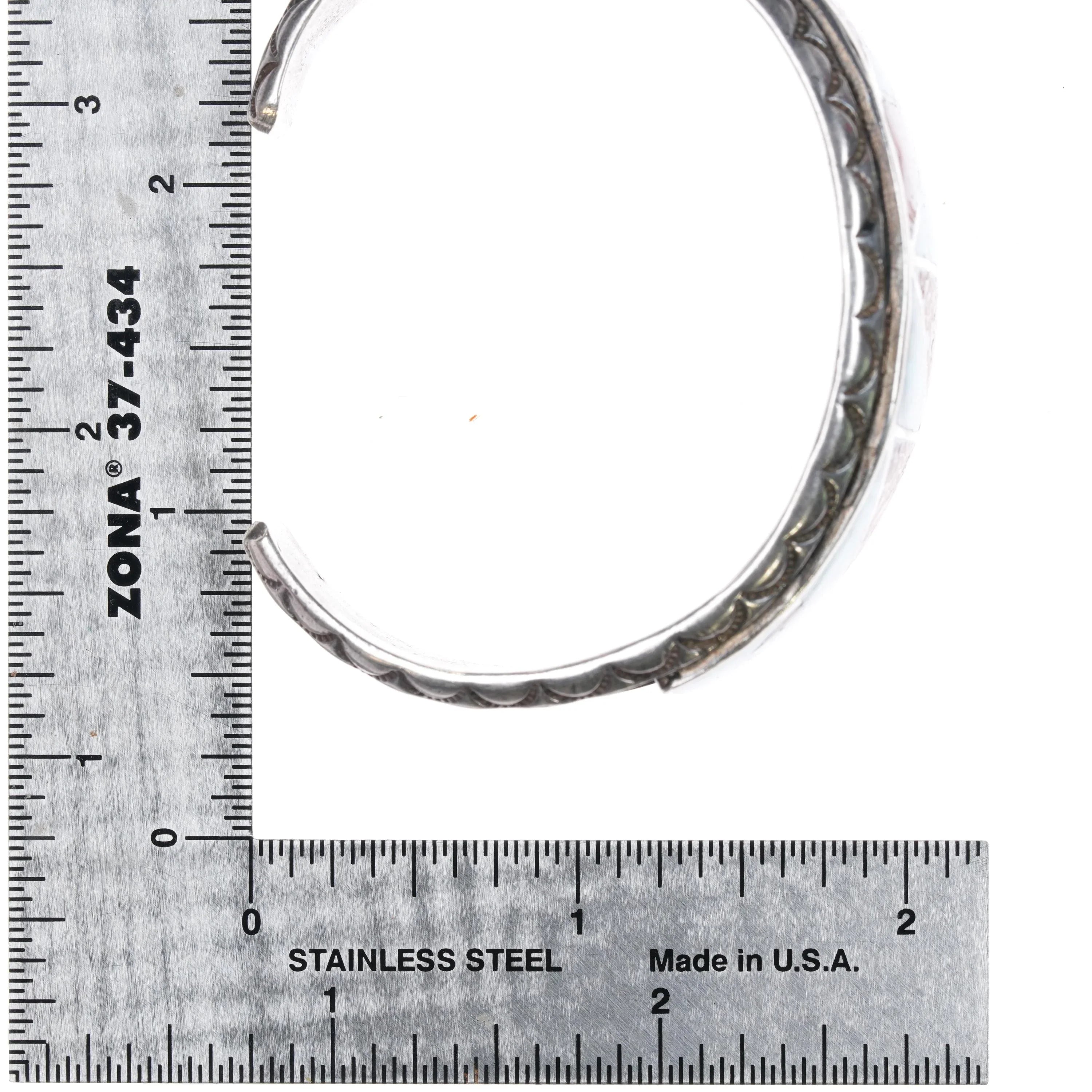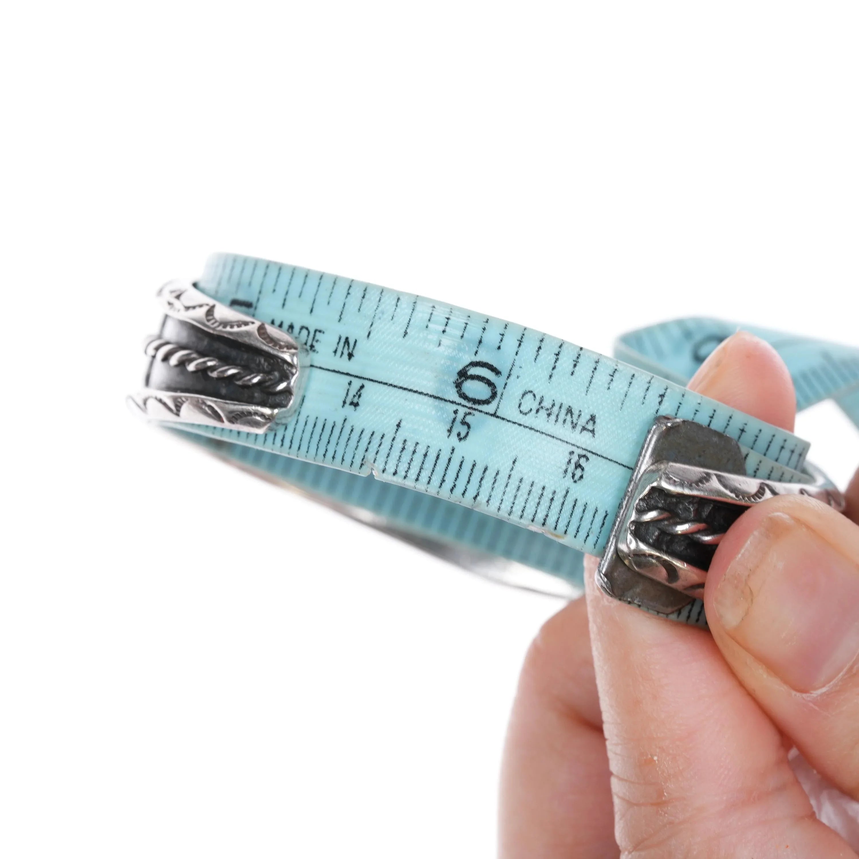 6.4" Vintage Navajo silver chip inlay geometric cuff bracelet nice stamped sides