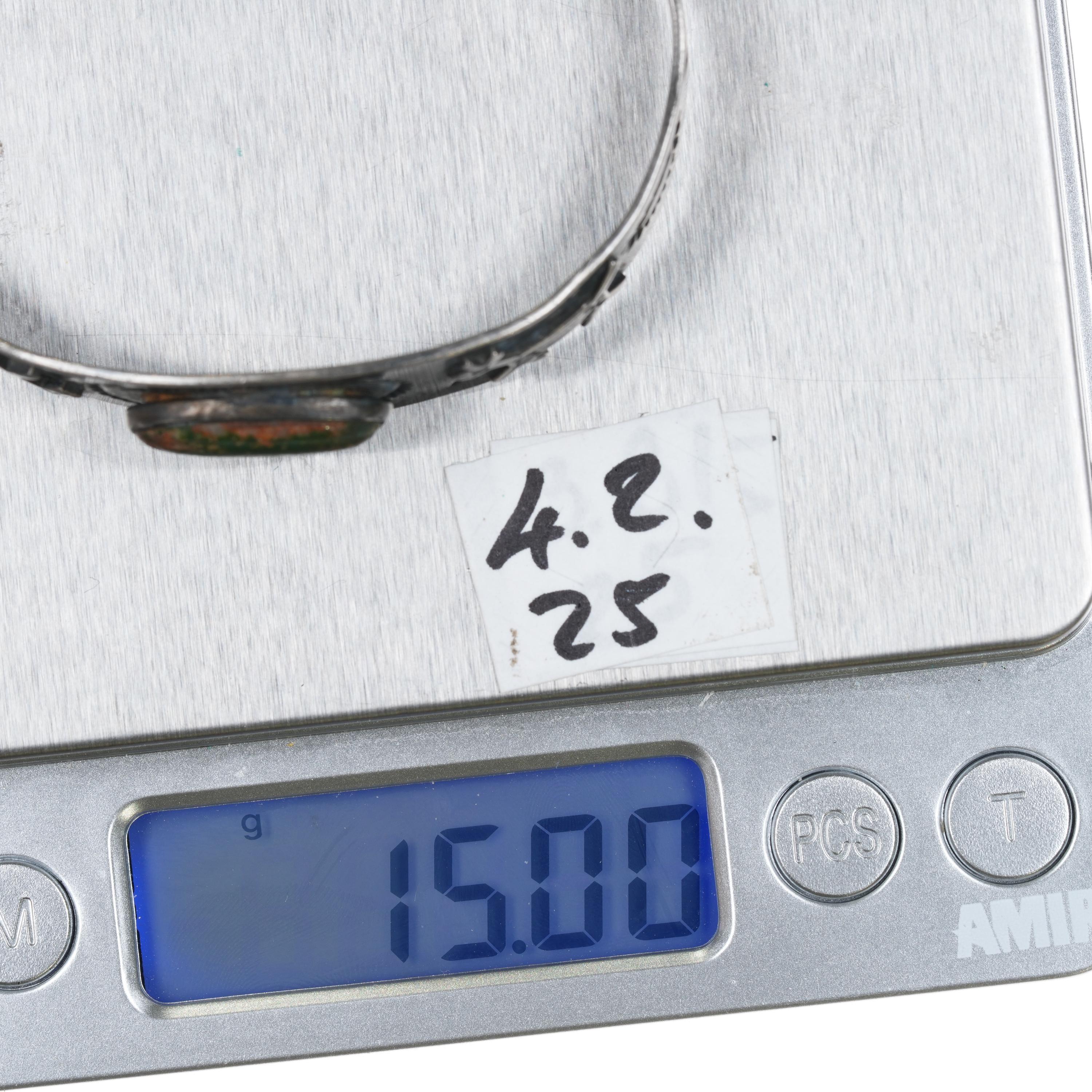 6.5" 30‘s-40‘s Sterling Cerrillos Turquoise Fred Harvey dogs cuff bracelet. Weight and measurements in pictures, solid sterling silver with no issues. Minimal wear.