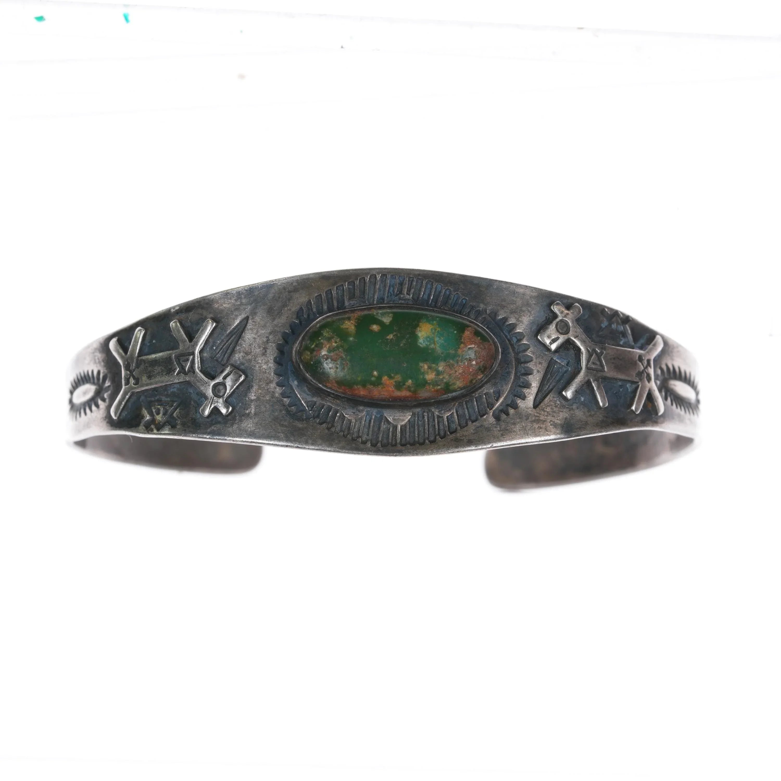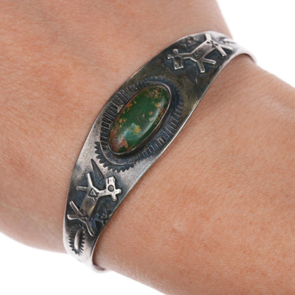 6.5" 30's-40's Sterling Cerrillos Turquoise Fred Harvey dogs cuff bracelet