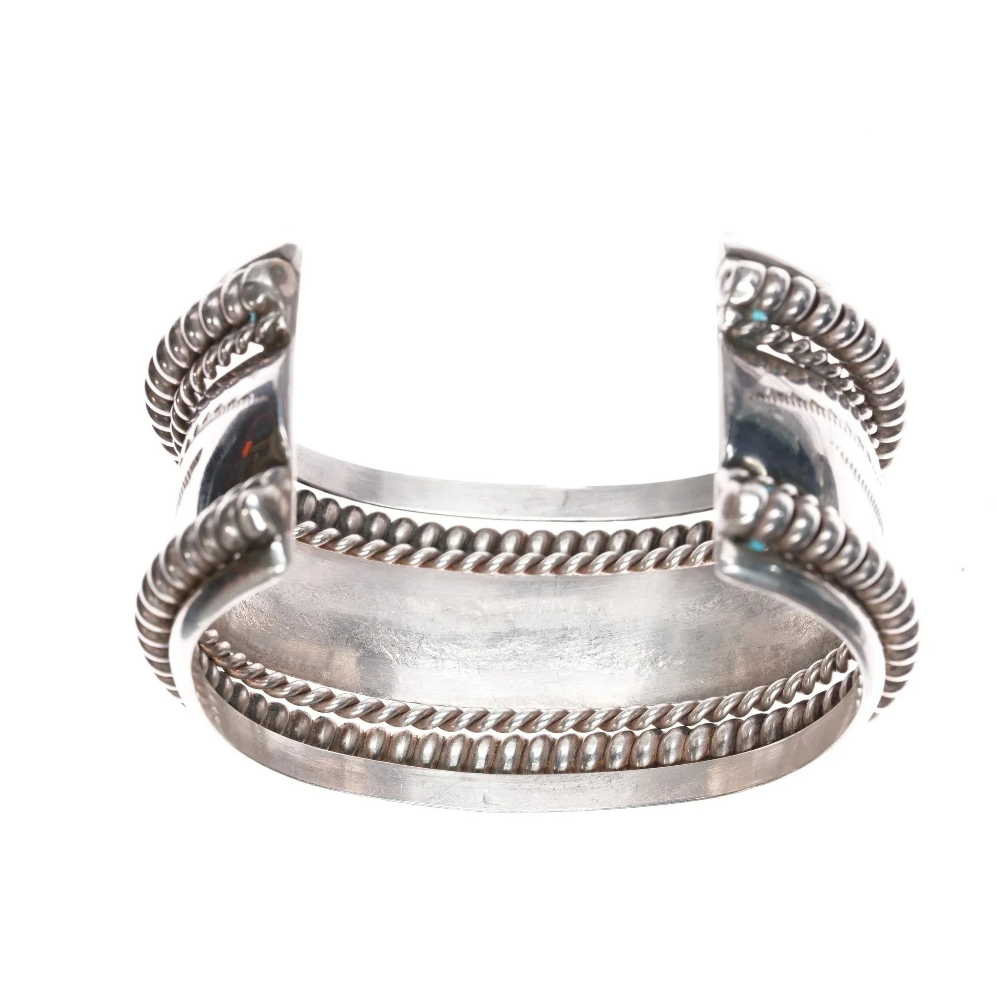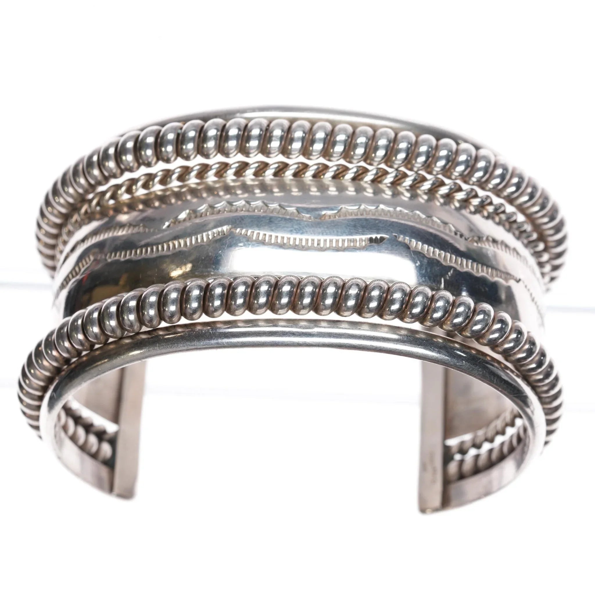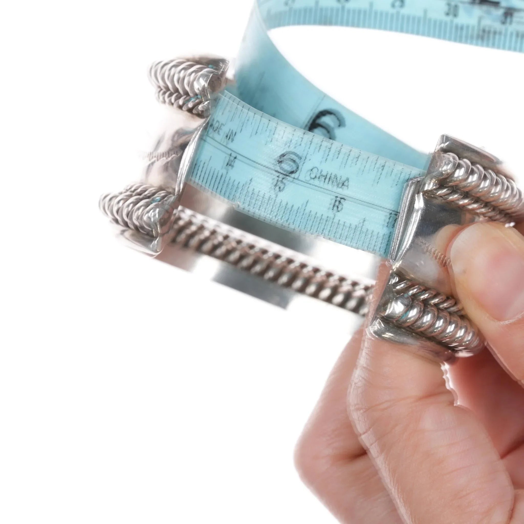 6 5/8" Tahe Heavy Sterling twisted wire wide band cuff bracelet. No issues, weights and measurements in pics. Stamped TAHE and Sterling by the opening, not shown in pics.