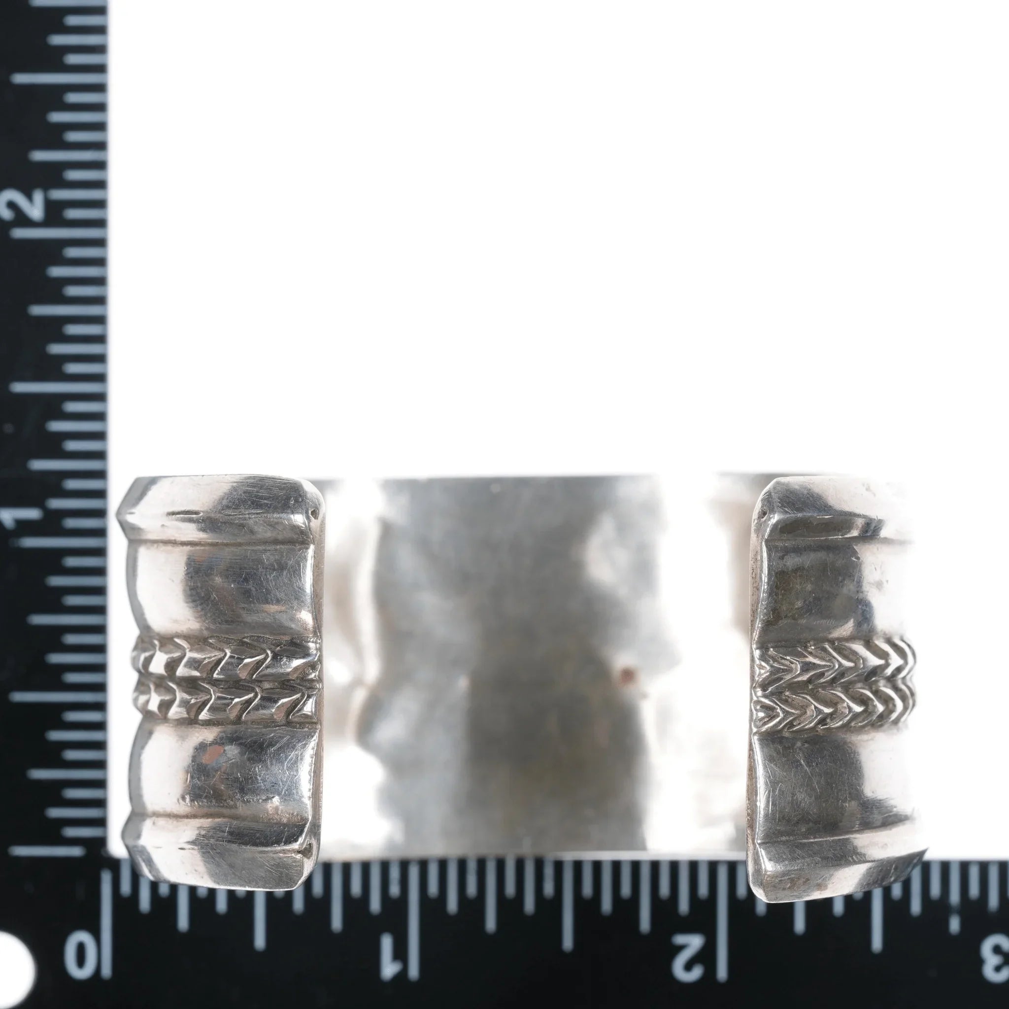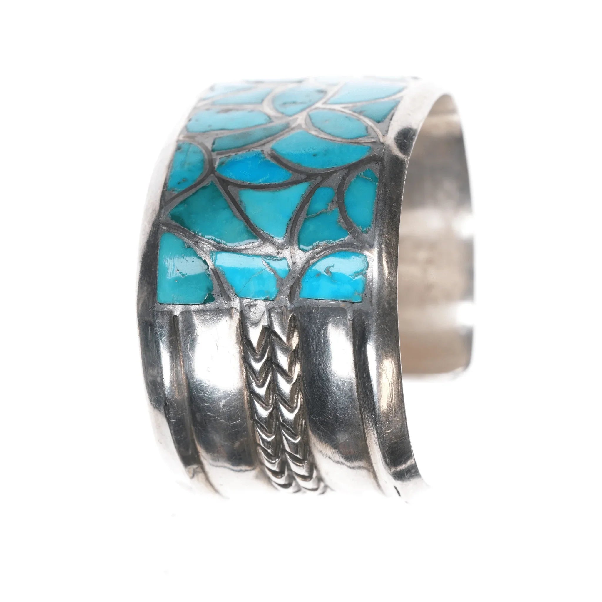 6.5" Alice Leekya Homer sterling fishscale turquoise channel inlay cuff bracelet. Hallmarked as shown, no issues. Weight and measurements in pics.