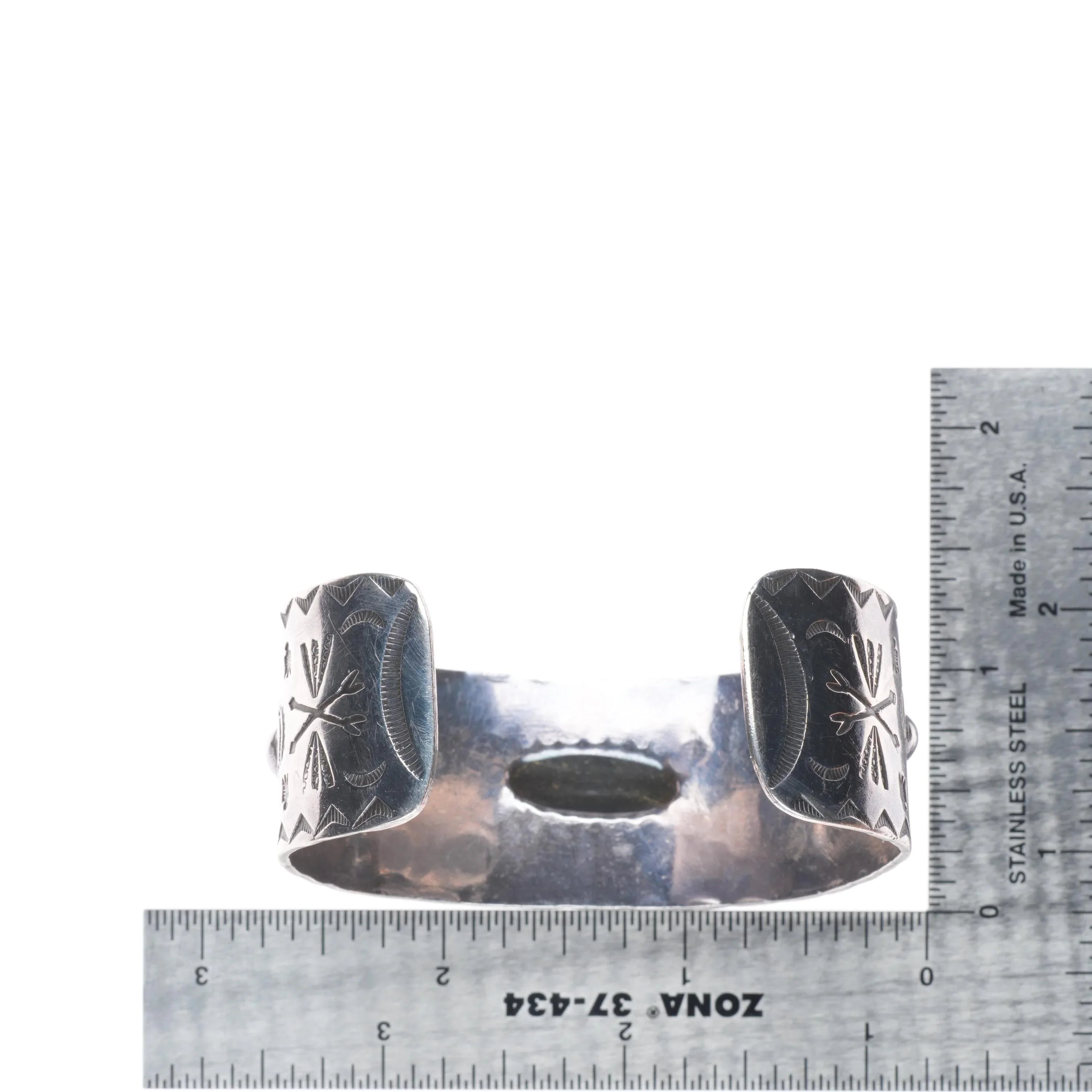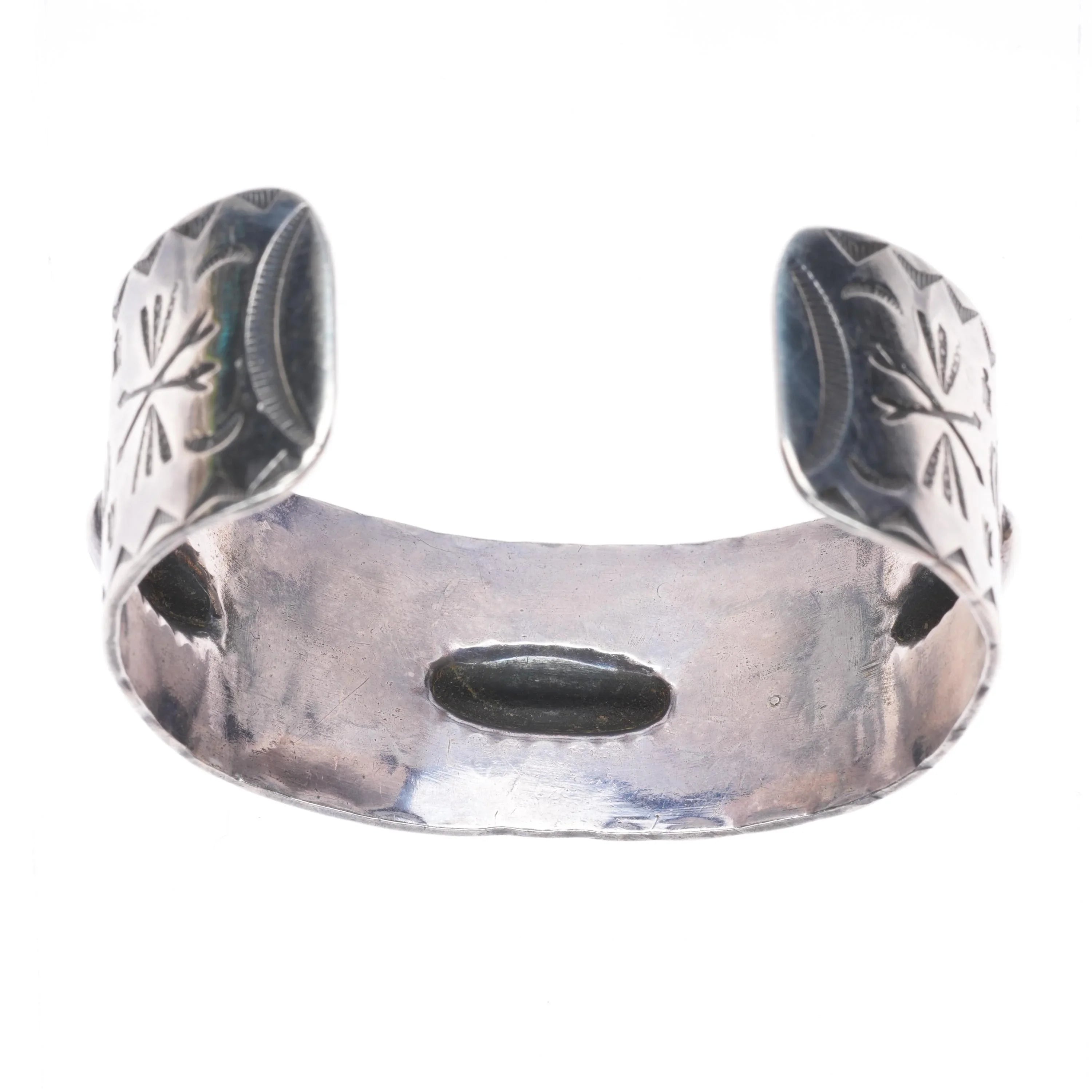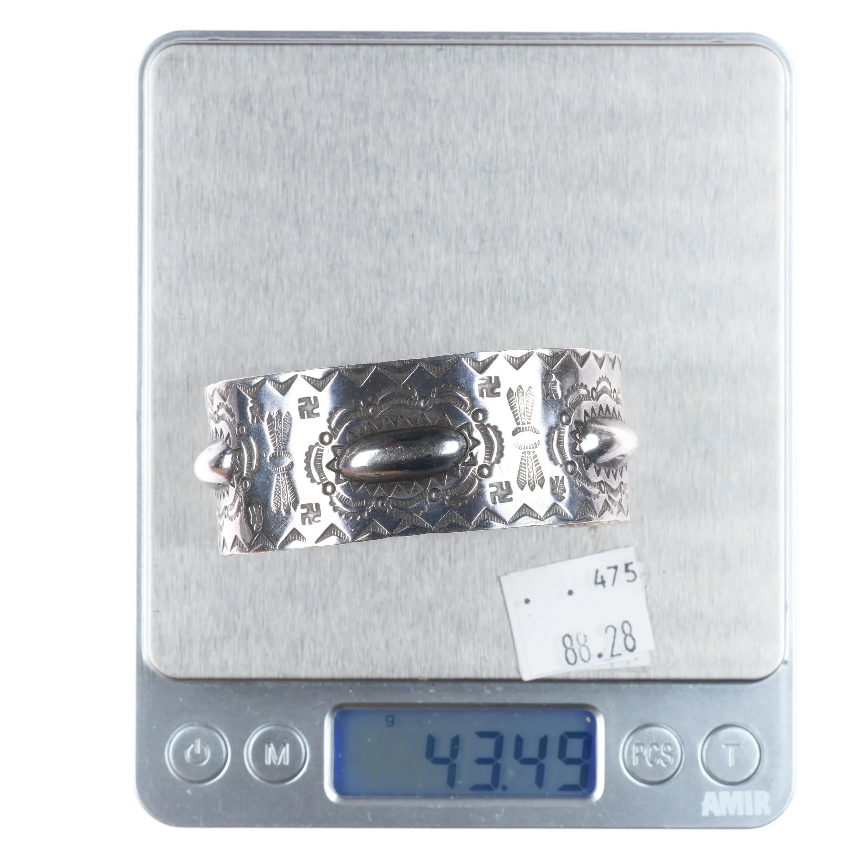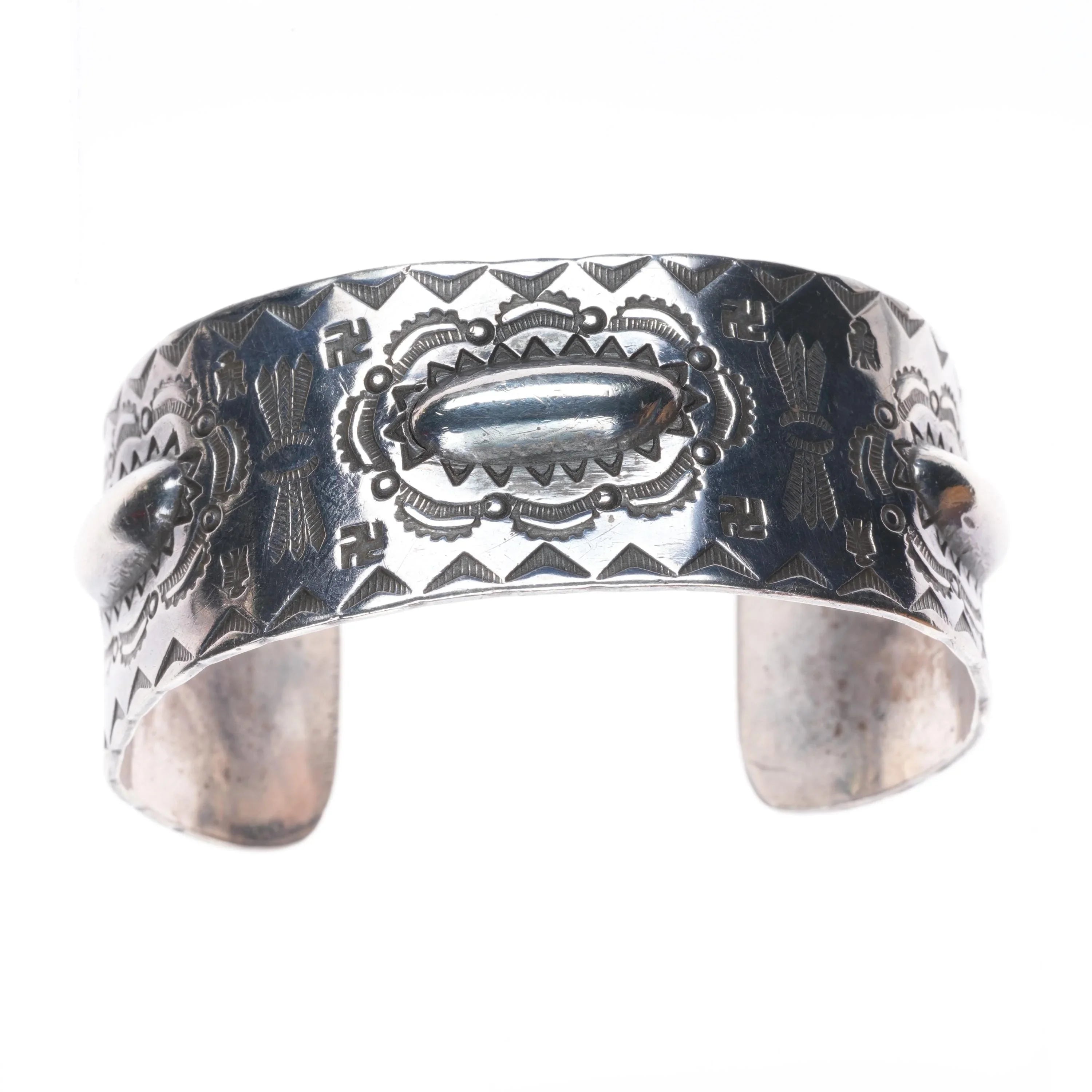 6.5" c1930 Navajo Fred Harvey Whirling log stamped sterling silver cuff bracelet
