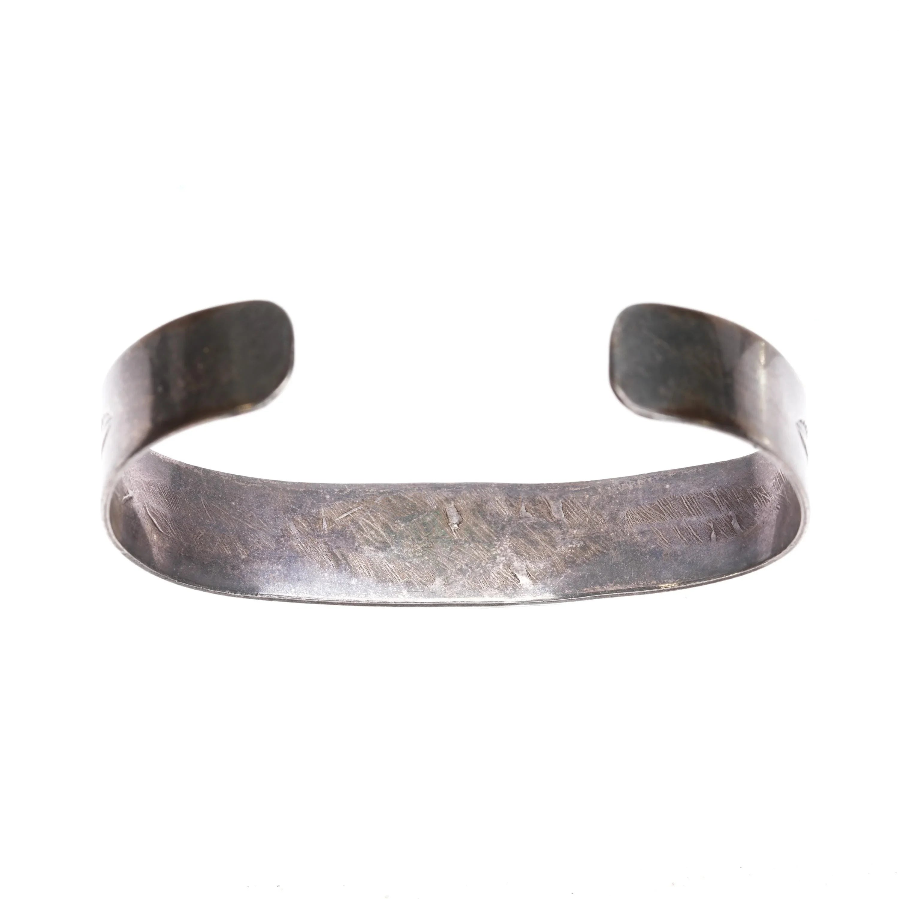 6.5" c1940's Navajo silver heavily stamped cuff bracelet thunderbirds