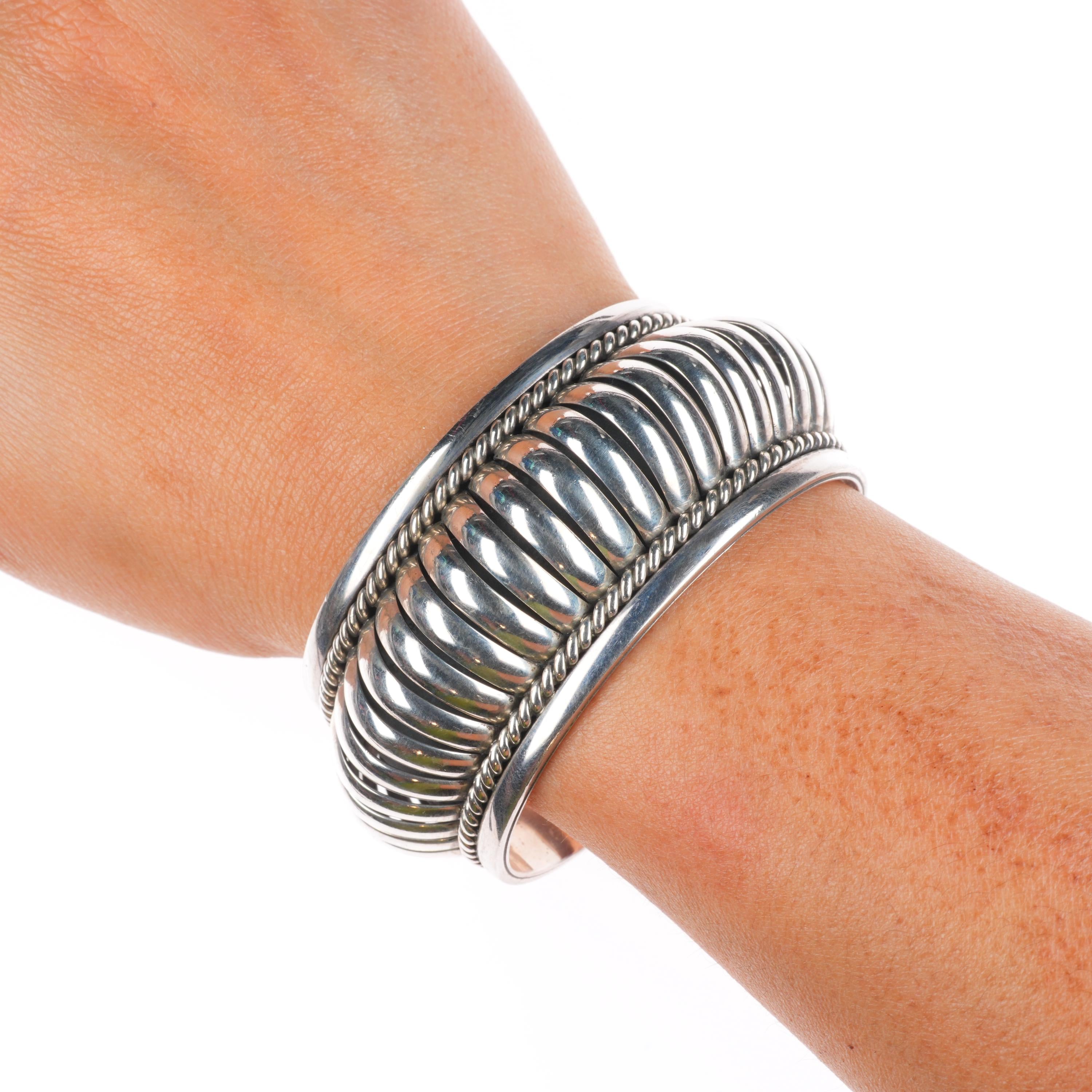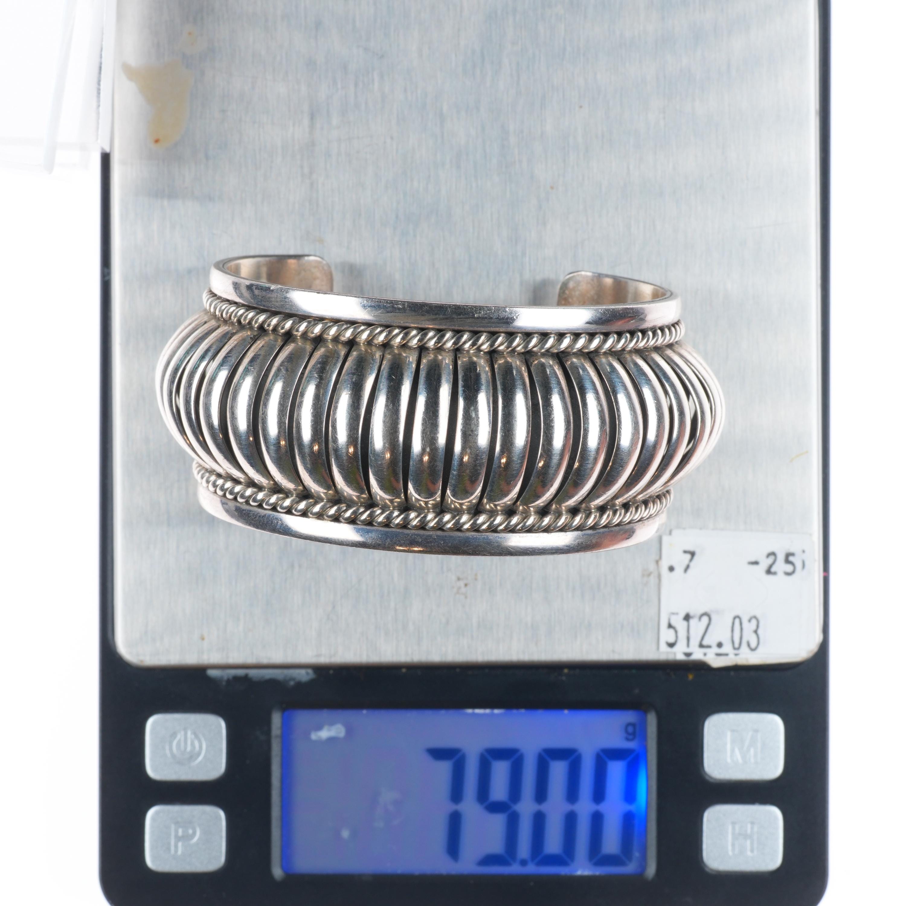 6.5" Priscilla Apacheto sterling silver melon ribbed Navajo cuff bracelet Tested and guaranteed solid sterling silver with weight and measurements in pictures. Circa last quarter of the 20th century with some expected age appropriate wear.