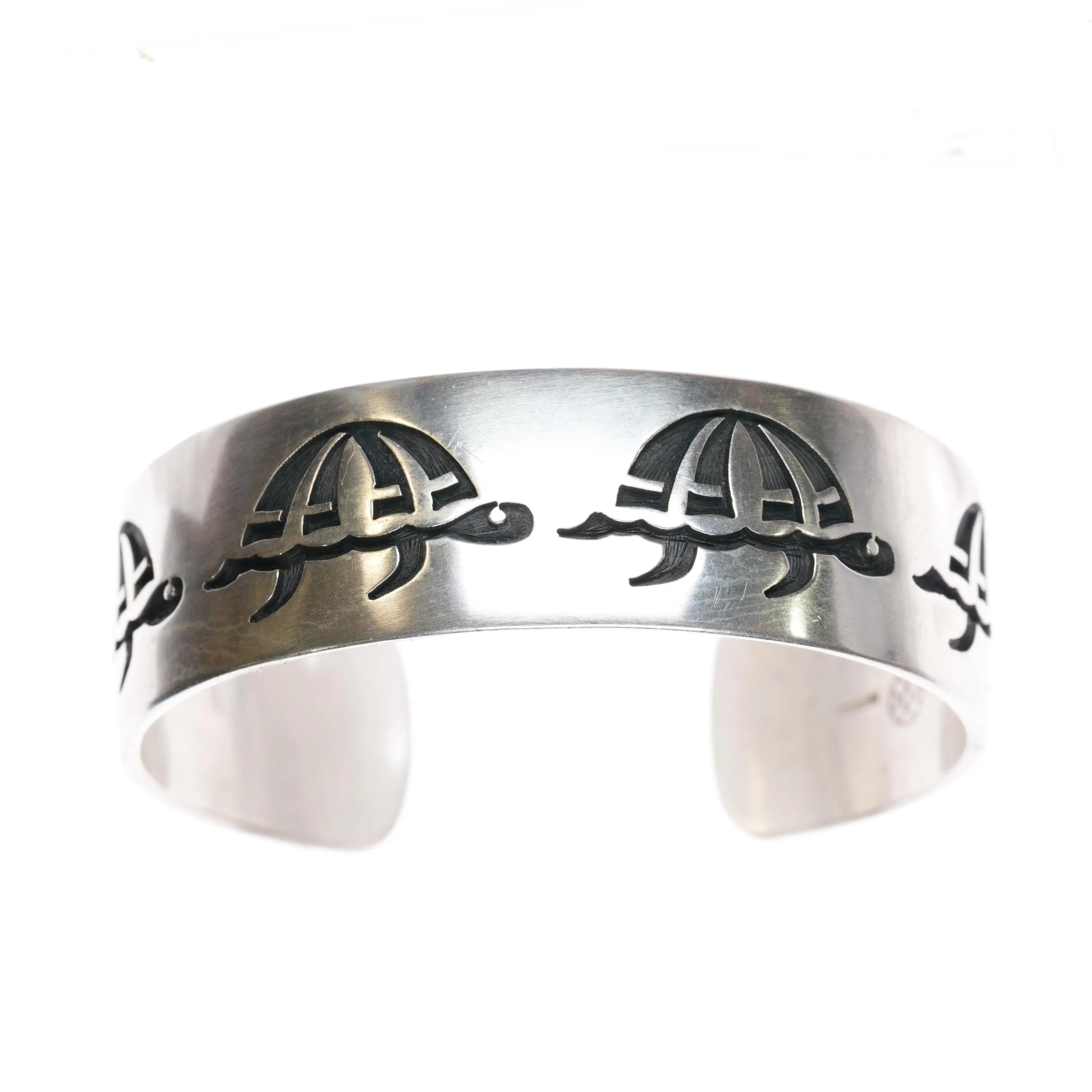 6.5" Willie Archie Talahaftewa Hopi sterling silver Turtle cuff bracelet Overlay