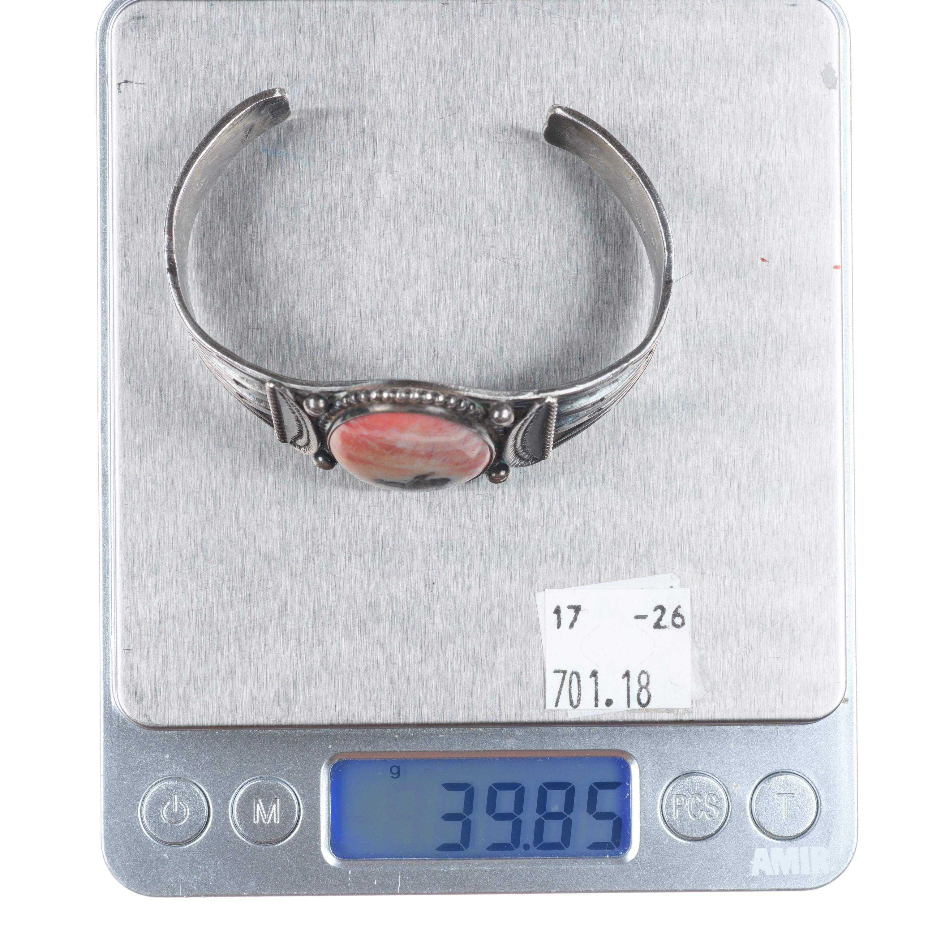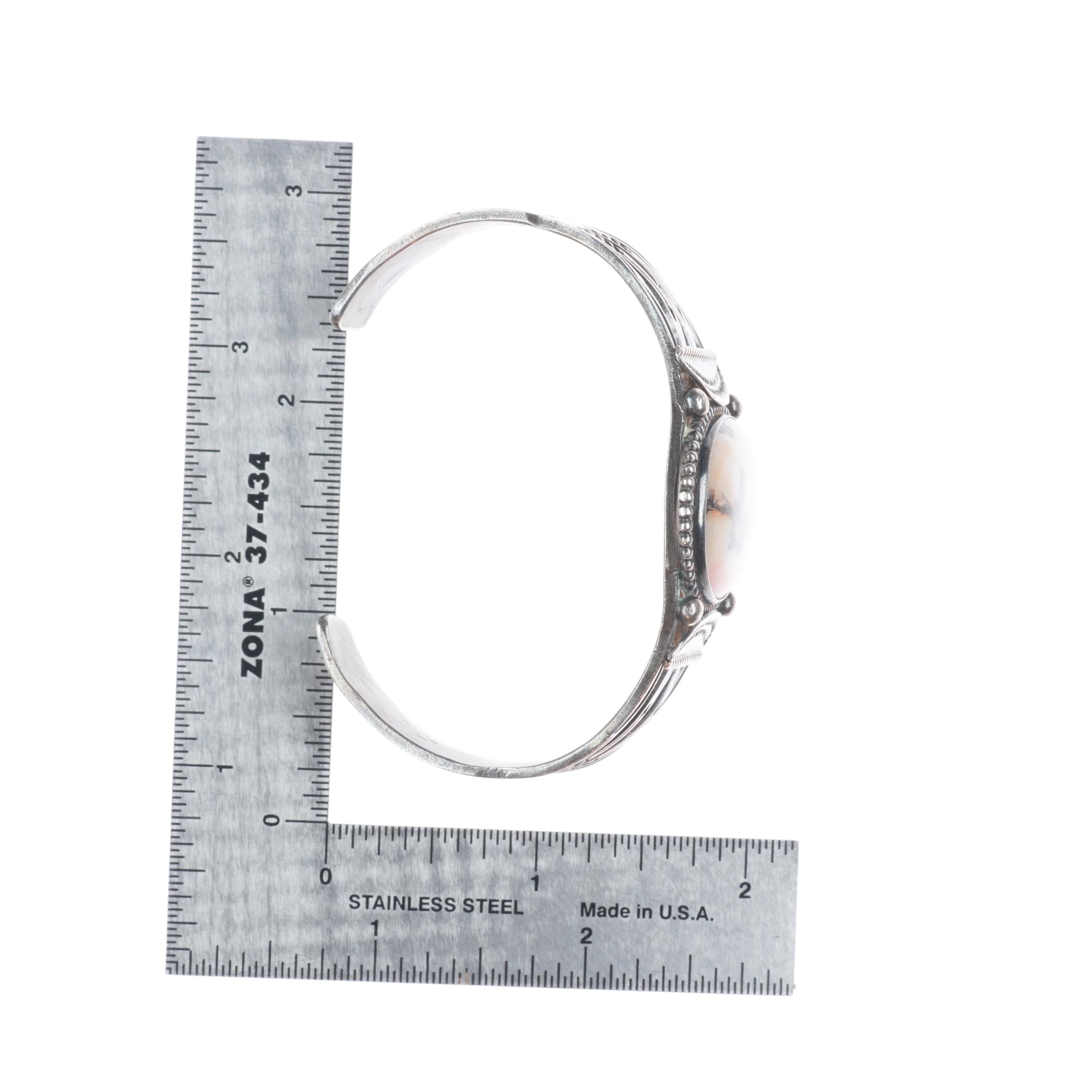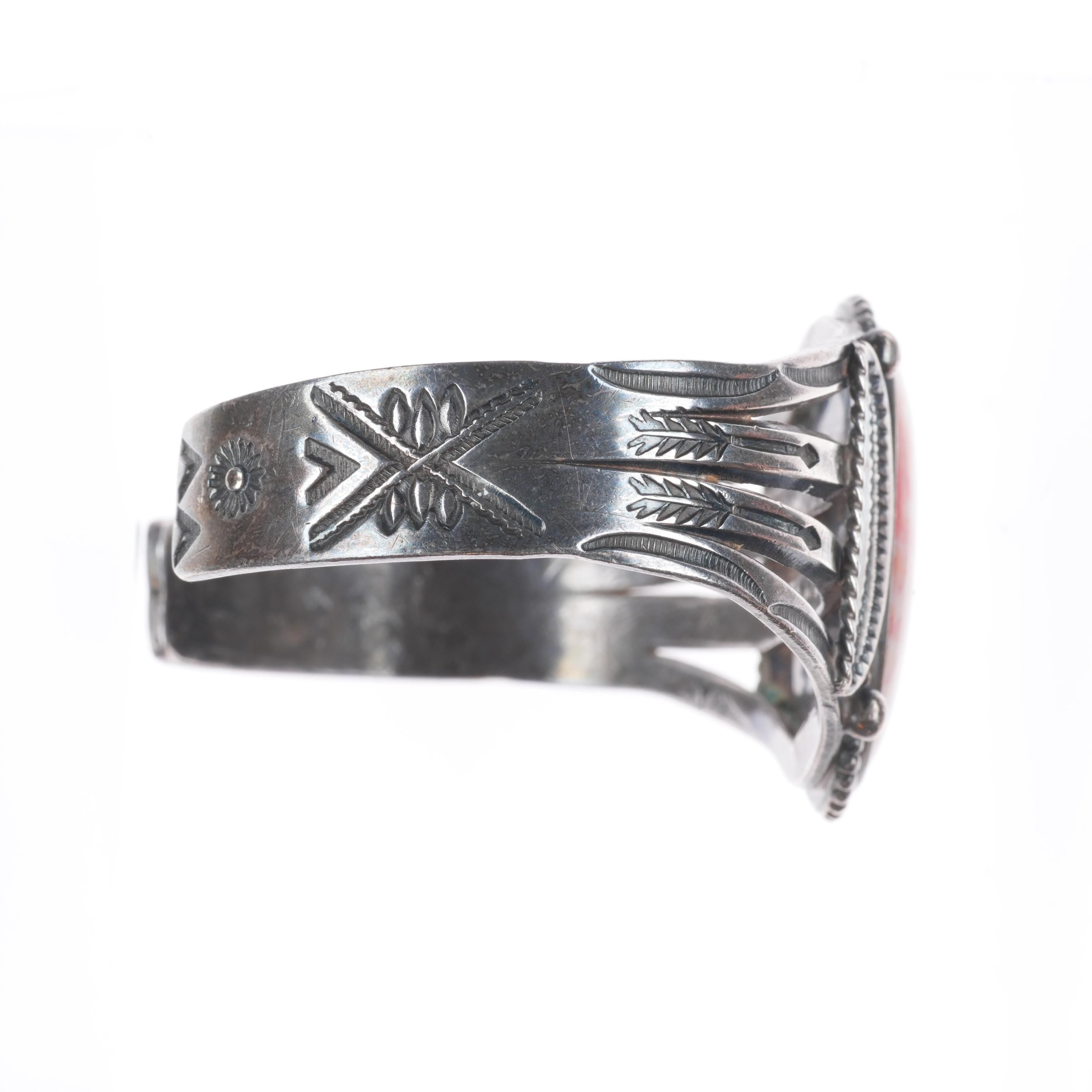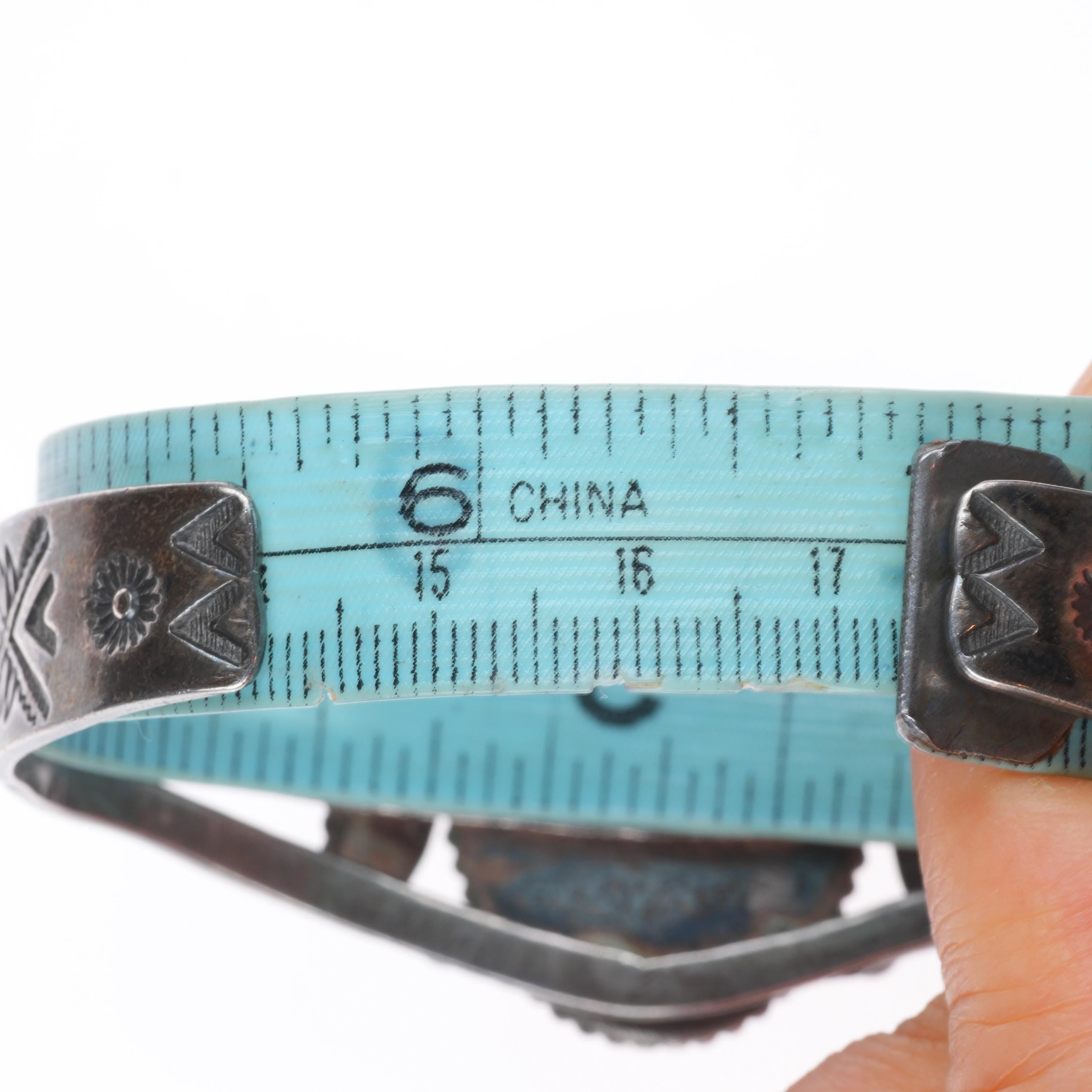 6.8" 30's-40's Vintage Navajo sterling silver petrified wood cuff bracelet. Tested and guaranteed solid sterling silver with weight and measurements in pictures. Overall expected wear circa second quarter of the 20th century.