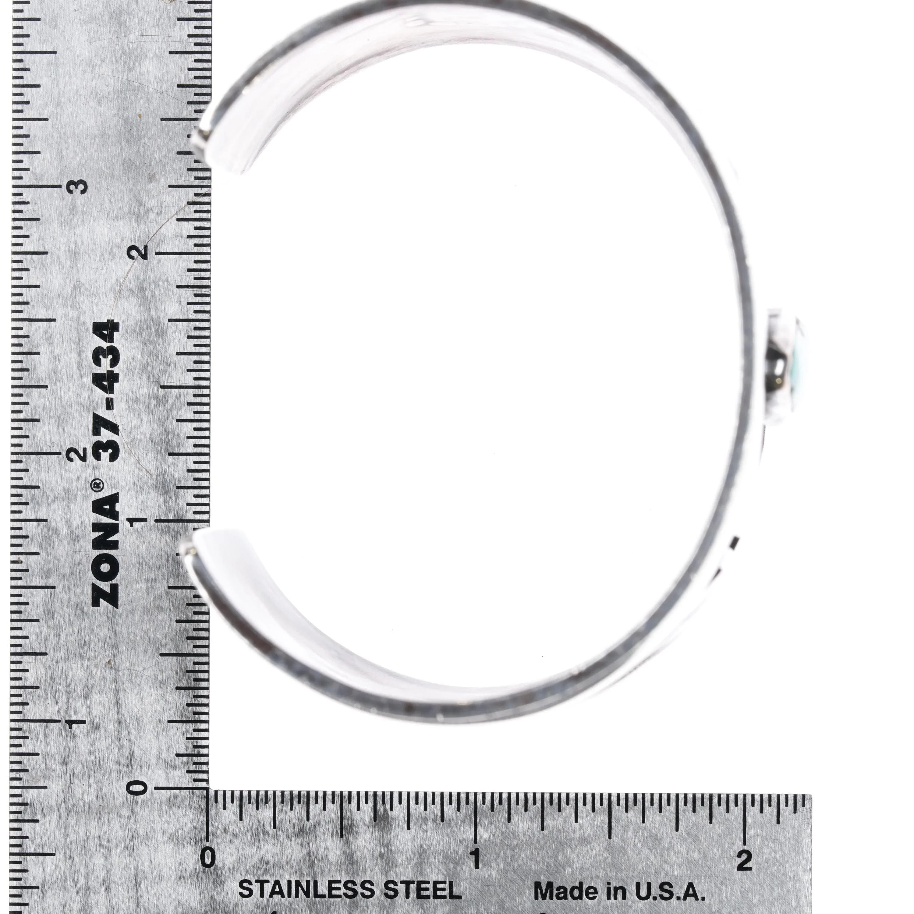7 1/8" Tony Kyasyousie Hopi overlay cuff bracelet silver with turquoise. Solid sterling silver. Will fit up to a 7 1/8" wrist, gap size and other measurements in pictures. No issues.