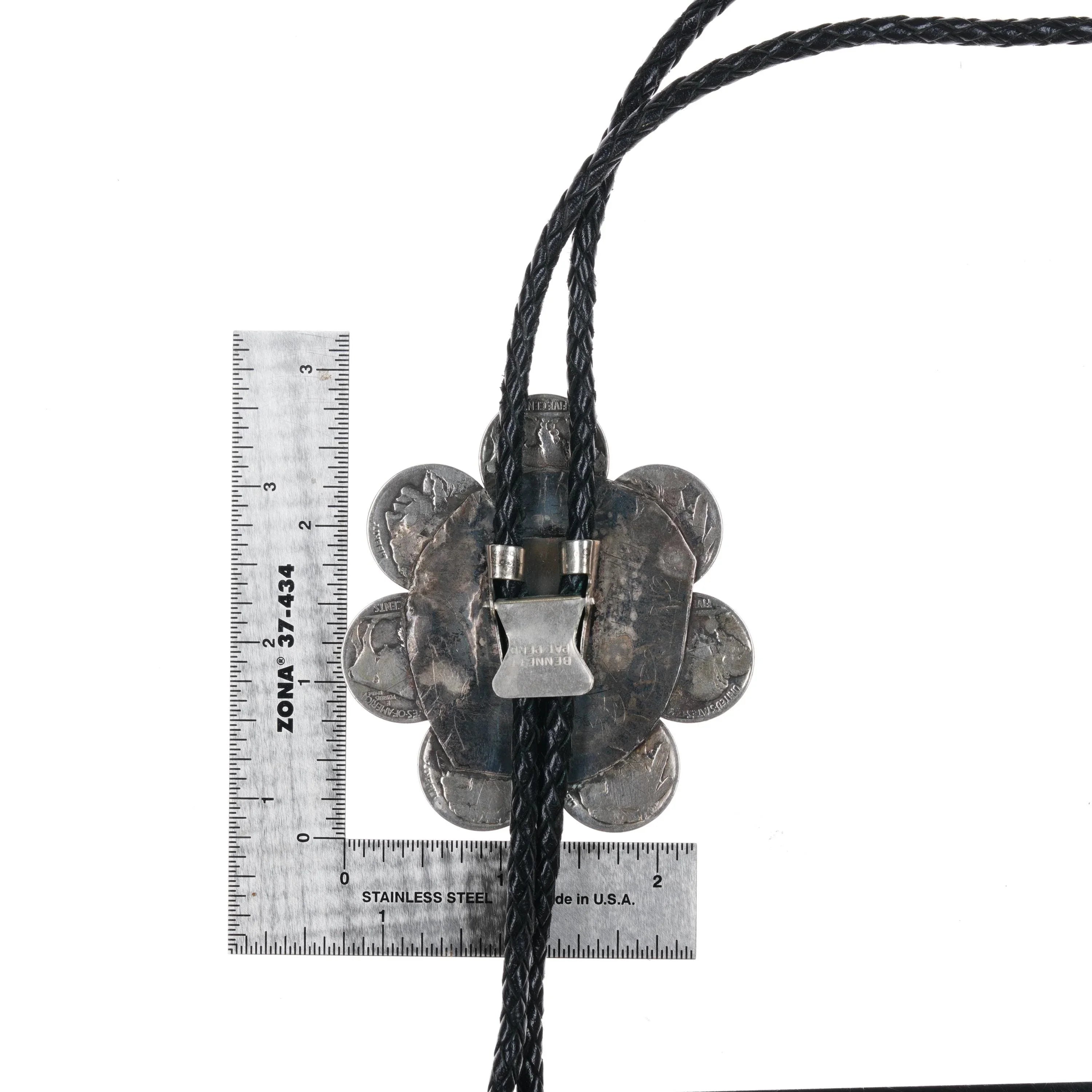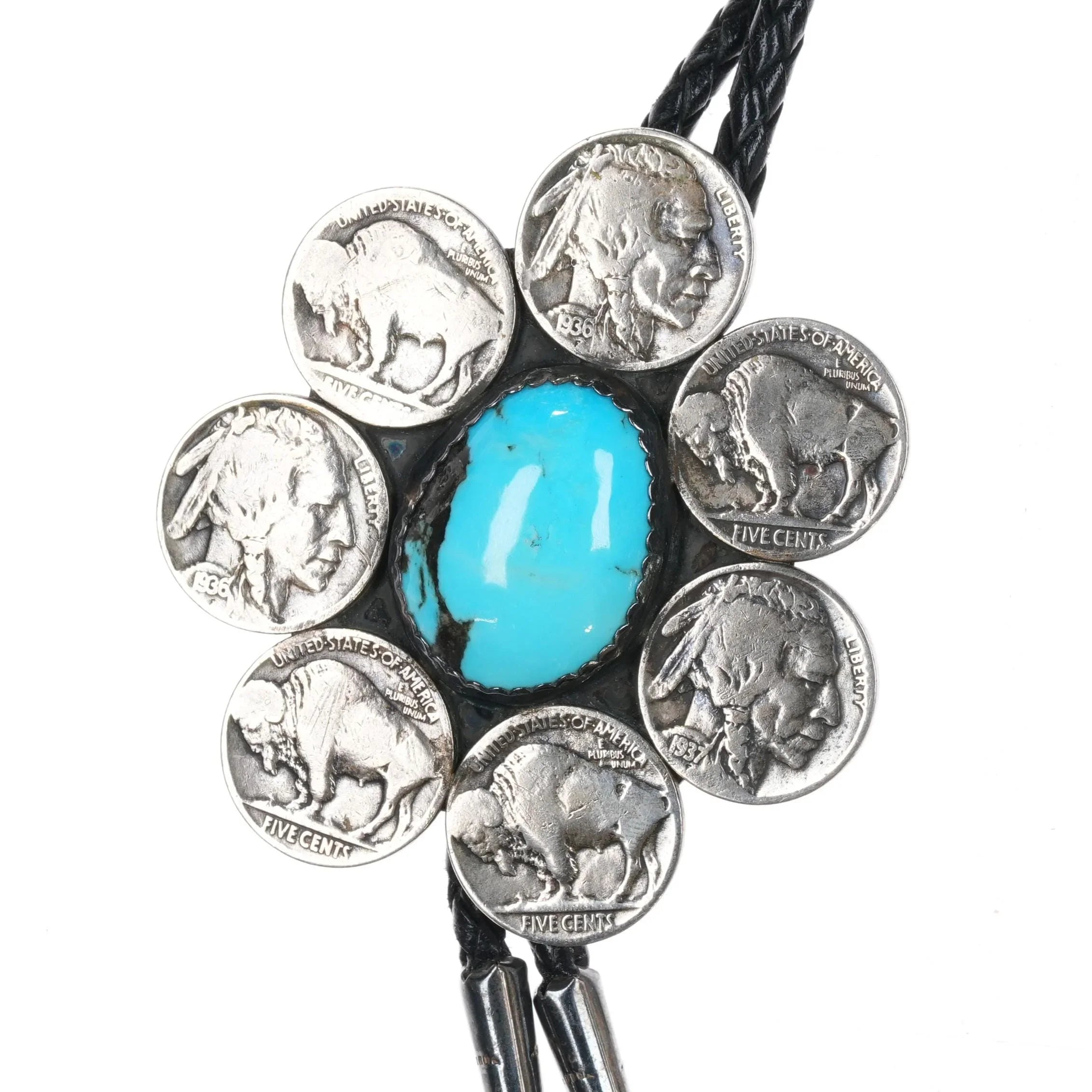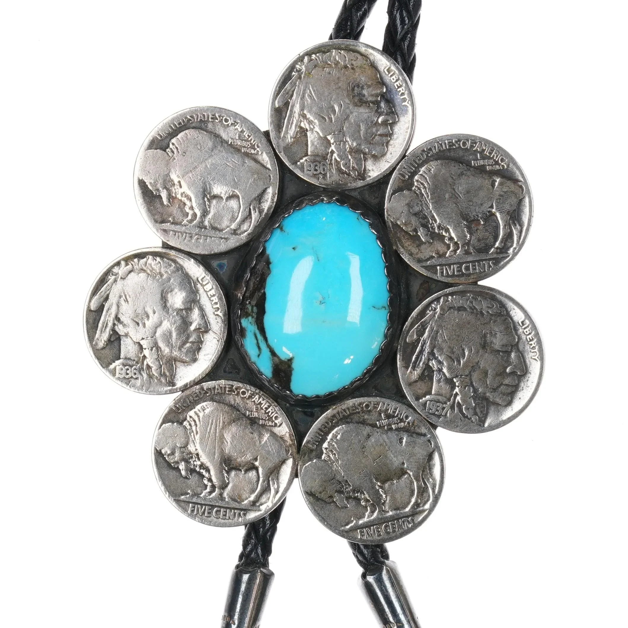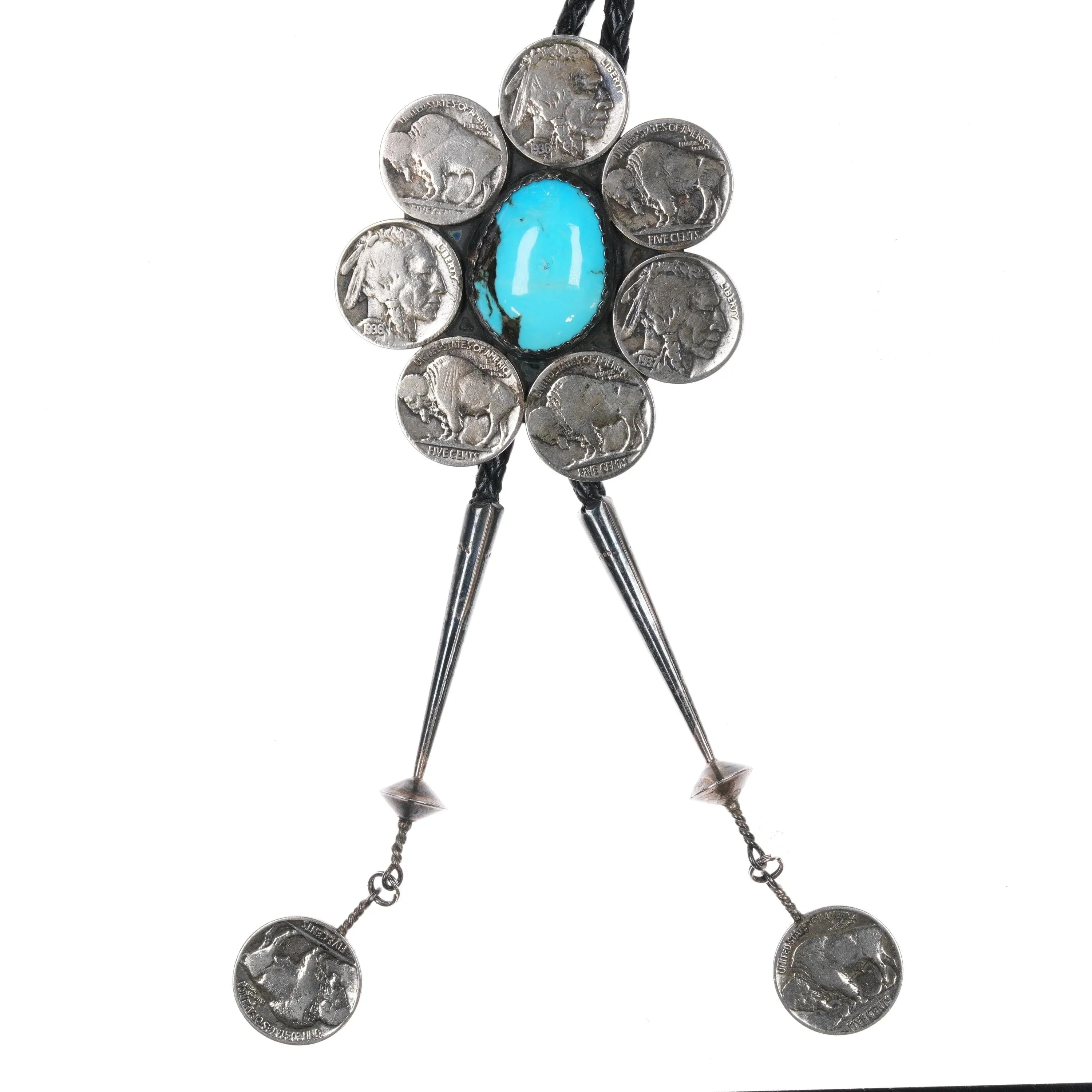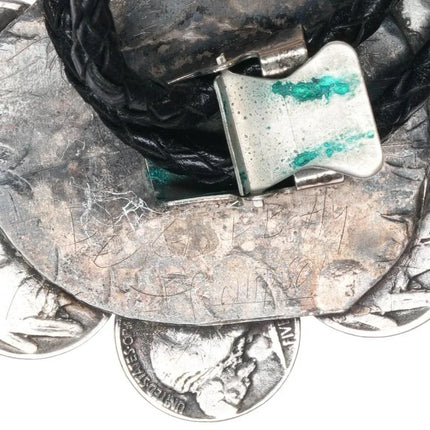 c1970 Sterling buffalo nickle Native American turquoise bolo tie