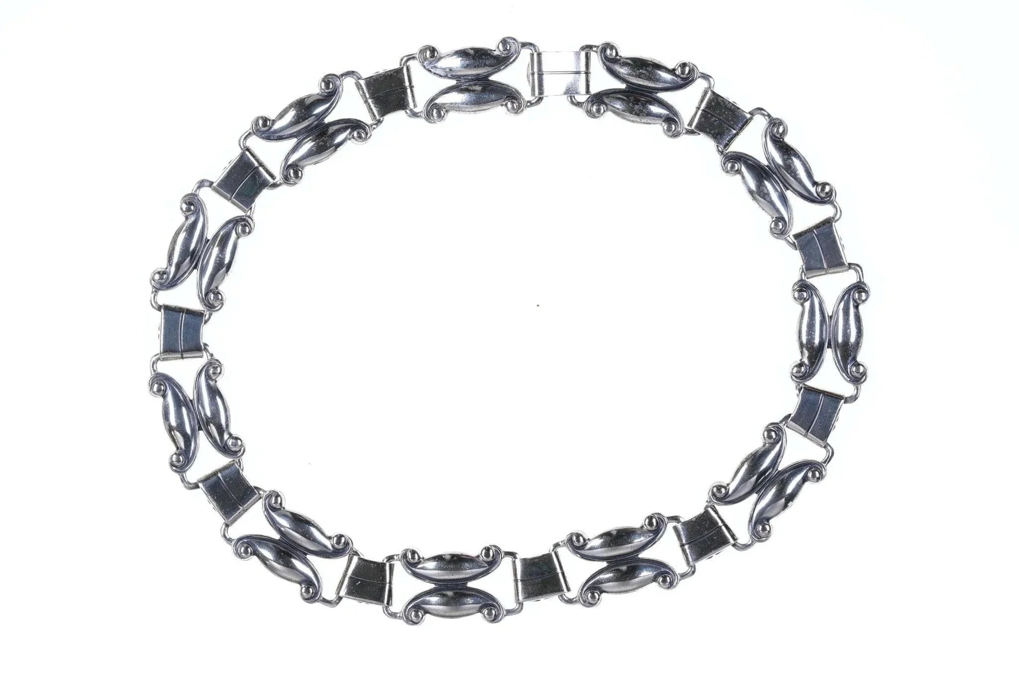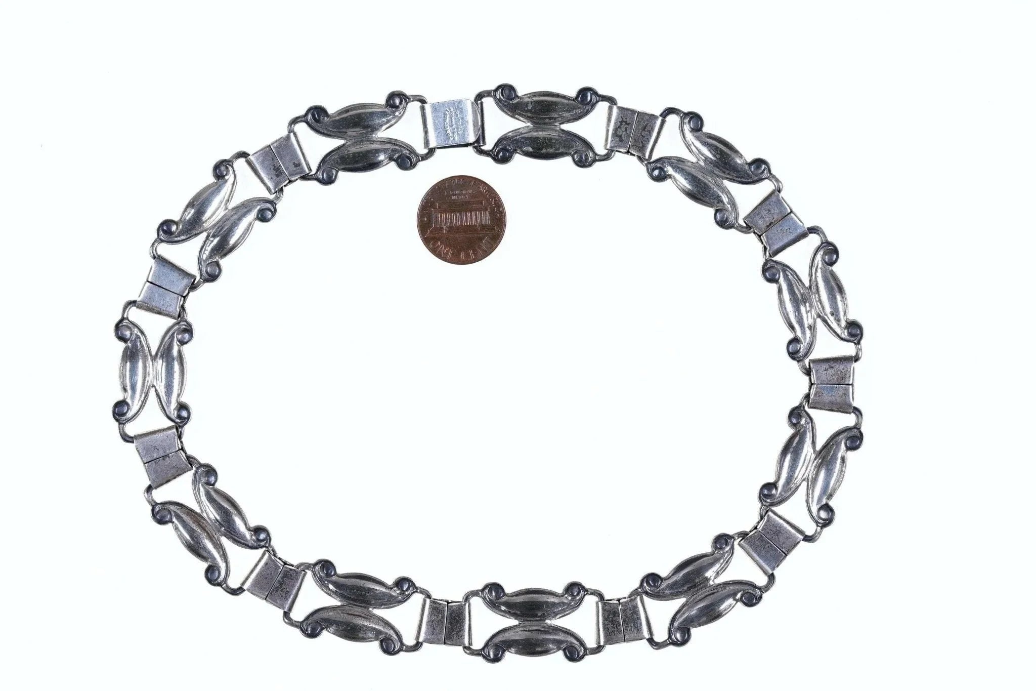 MCM Sterling Danecraft Necklace 16" long 43.5 grams. Great design with no damage<br>or issues.<br><br>In the early 1900s, as Italy was continuing to become the world leader in<br>fashion, the Primavera family worked as jewelry artisans in the beautiful area<br>of Pescara, Italy. In 1918, the family founded Primavera Designs and by 1921 it<br>had become the largest jewelry company in the Abruzzo region.<br><br><br><br>It was there that the family became well known throughout the region for their<br>ability to design and make jewelry for royalty and wealthy families. Often one<br>of the Primavera jewelry artisans would go directly into the home of a patron to<br>design and reproduce a cherished object of art into jewelry.<br><br><br><br>This continued in Italy until 1934, when Mr. Victor Primavera, Sr. immigrated to<br>the United States and incorporated his company in Rhode Island; the jewelry<br>capital of the United States. Primavera Designs now had a United States<br>division, known as Danecraft, with a small factory and Mr. Victor Primavera, Sr.<br>heading up the design and model making teams.<br><br><br><br>His forte in designing product was always timeliness. He often said that it was<br>easy to design a piece to be shown in a museum, but it took research and talent<br>to design product that would be worn by a woman with fashion sense.<br><br><br><br>Although the candlelight has been replaced by fluorescent light and some of the<br>painstaking handwork has been supplemented by modern machinery, the rich and<br>beautiful handcrafted look of distinction continues.<br><br>Since 1934, Danecraft has been privately owned and operated by the Primavera<br>family.