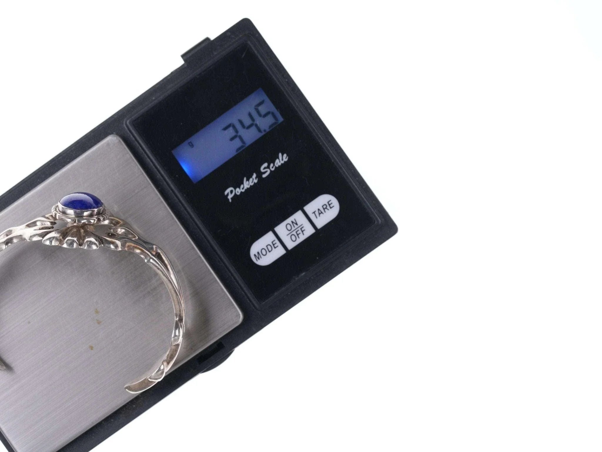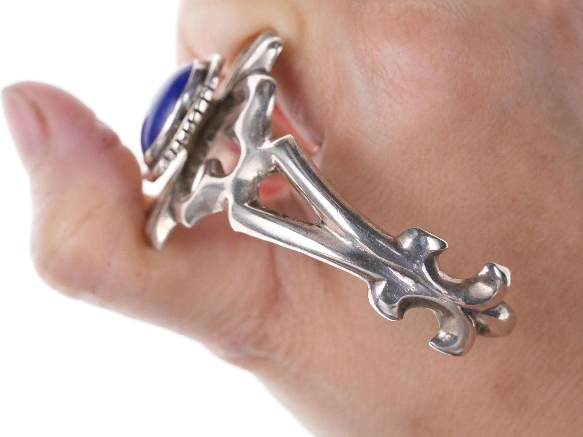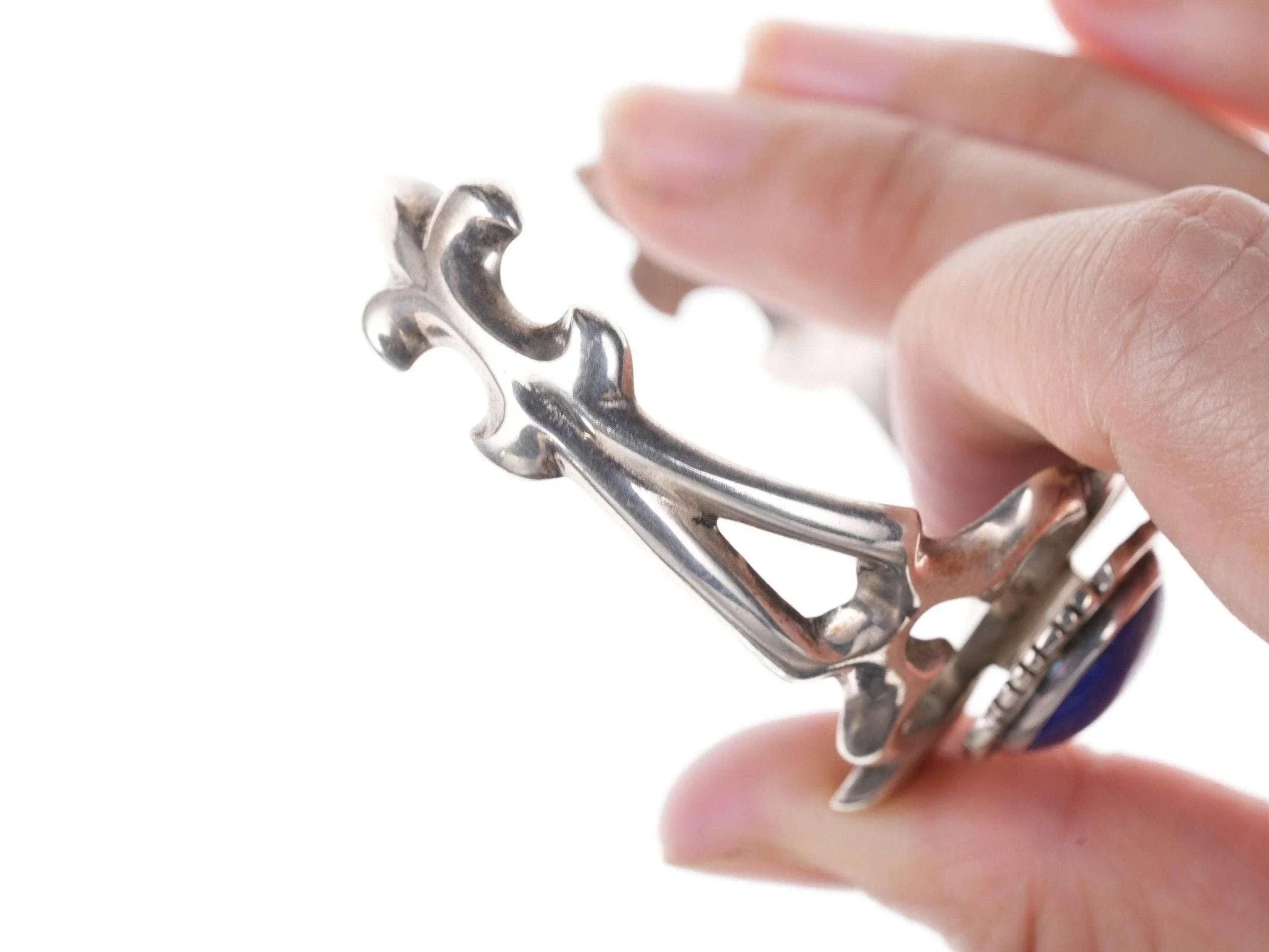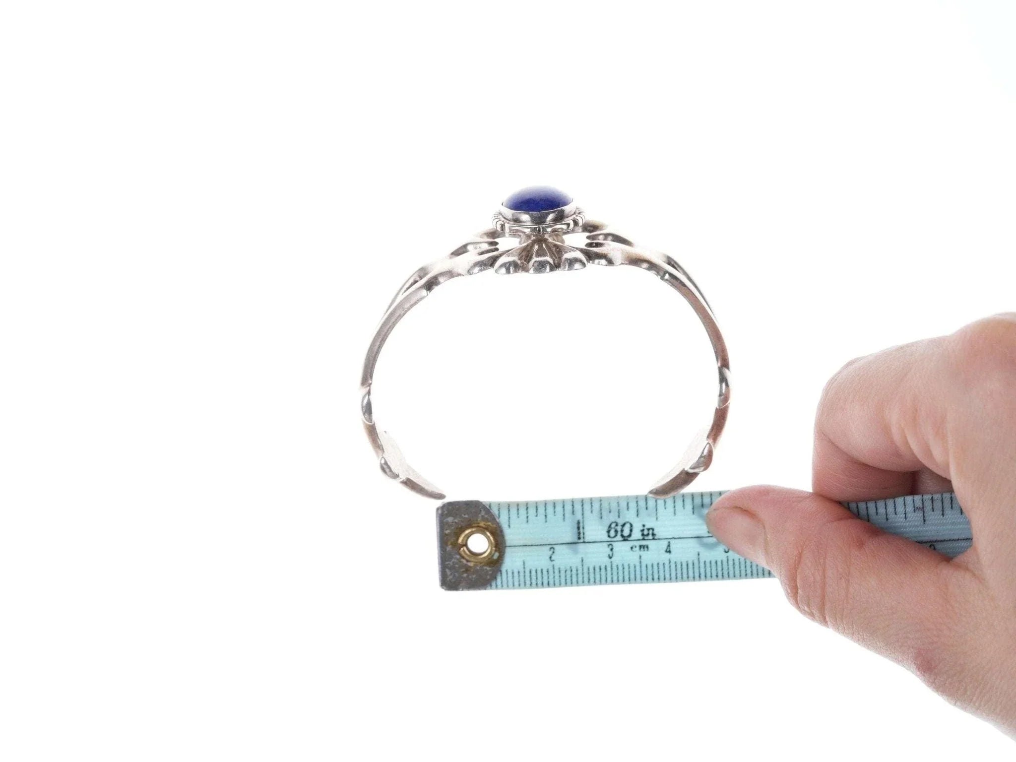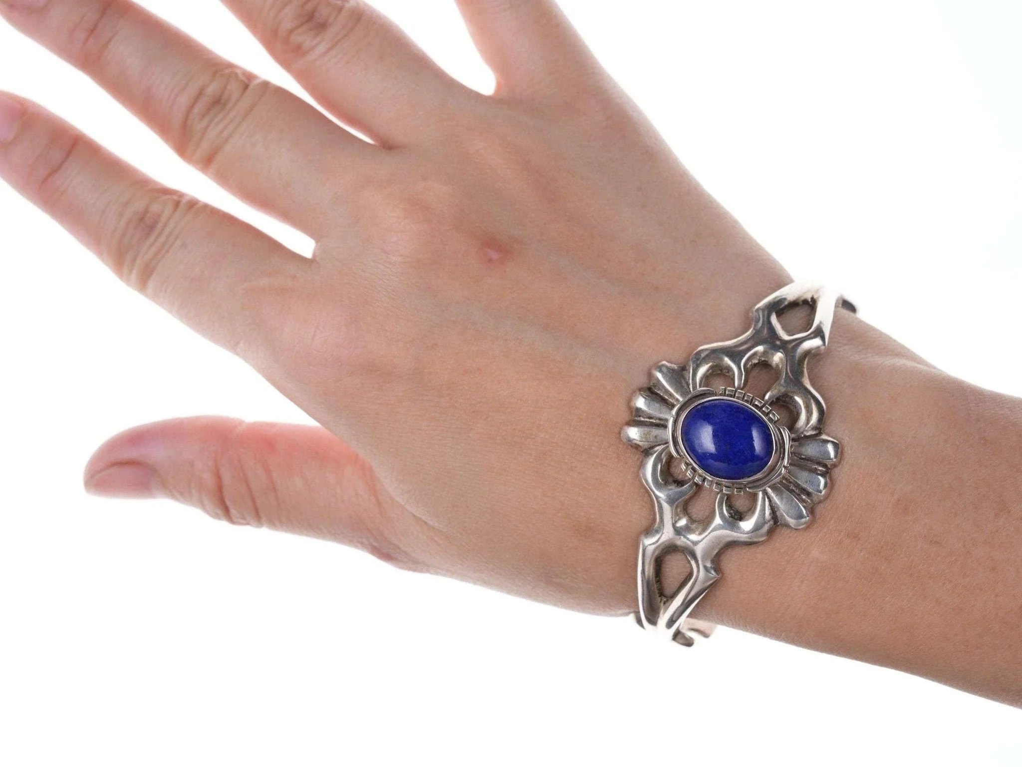 Francis L Begay Tufa Cast Lapis cuff bracelet, fits up to a 6 5/8" wrist with no<br>issues.<br><br>All precious metals are tested and guaranteed, any Native American jewelry<br>referred to as Silver or Sterling is guaranteed to be a minimum of 90% (coin)<br>silver and possibly higher content. Anything marked is guaranteed to be what<br>it's marked, most bracelets are photographed on a 6" wrist (non hairy), rings<br>photographed on the appropriate sized finger when possible. With bracelets if<br>the measurement is not given in the description then inside circumference is<br>shown where the metal meets the number on the the cloth tape measure.