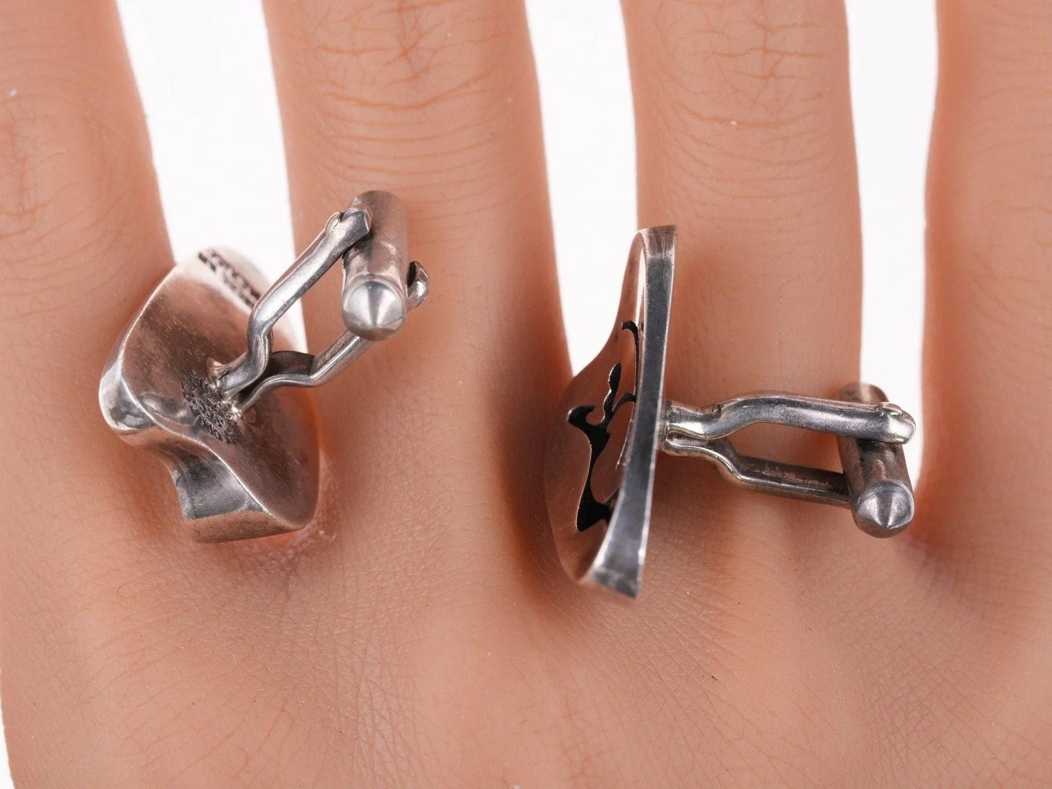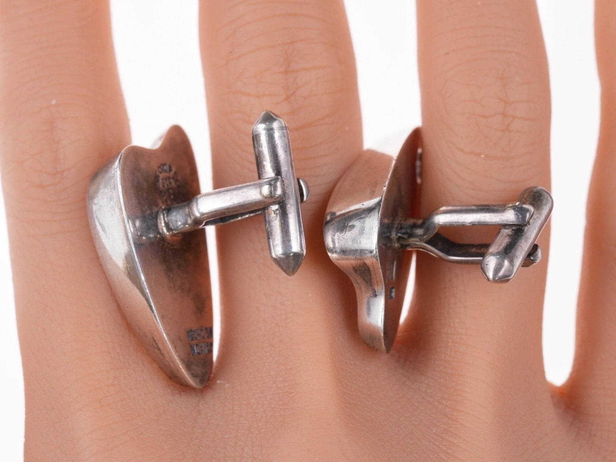 Antonio Pineda (1919-2009) Los Castillo Modernist space age sterling cufflinks 1 5/16" x .75" face, 24.7 grams.