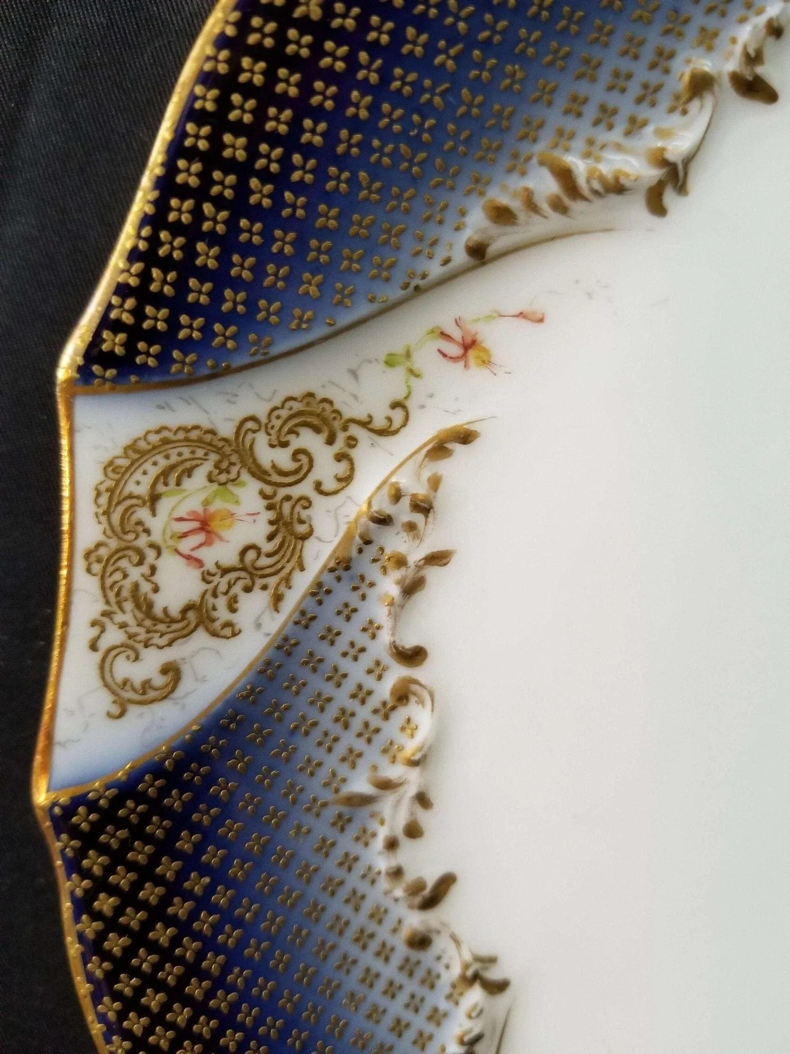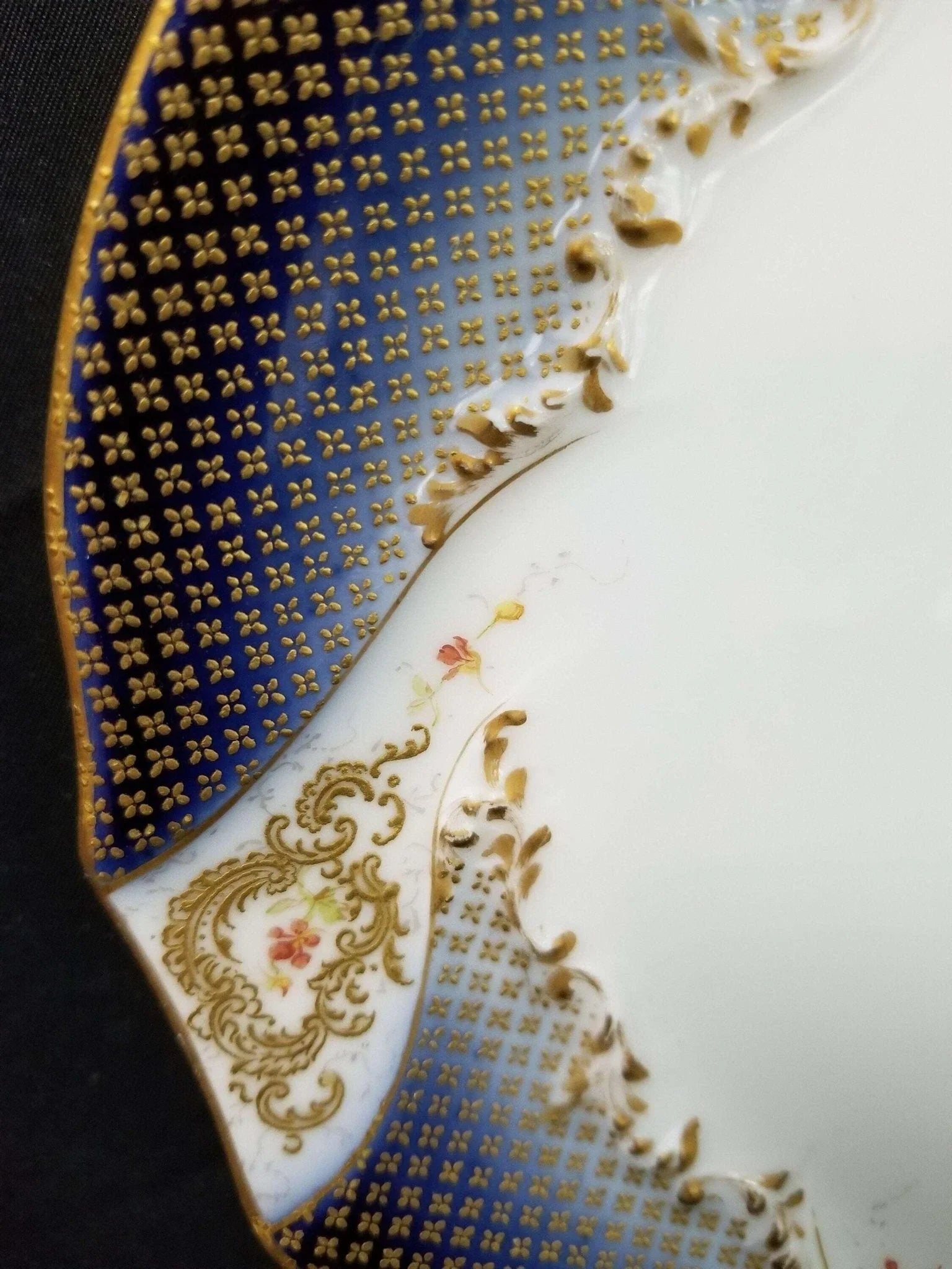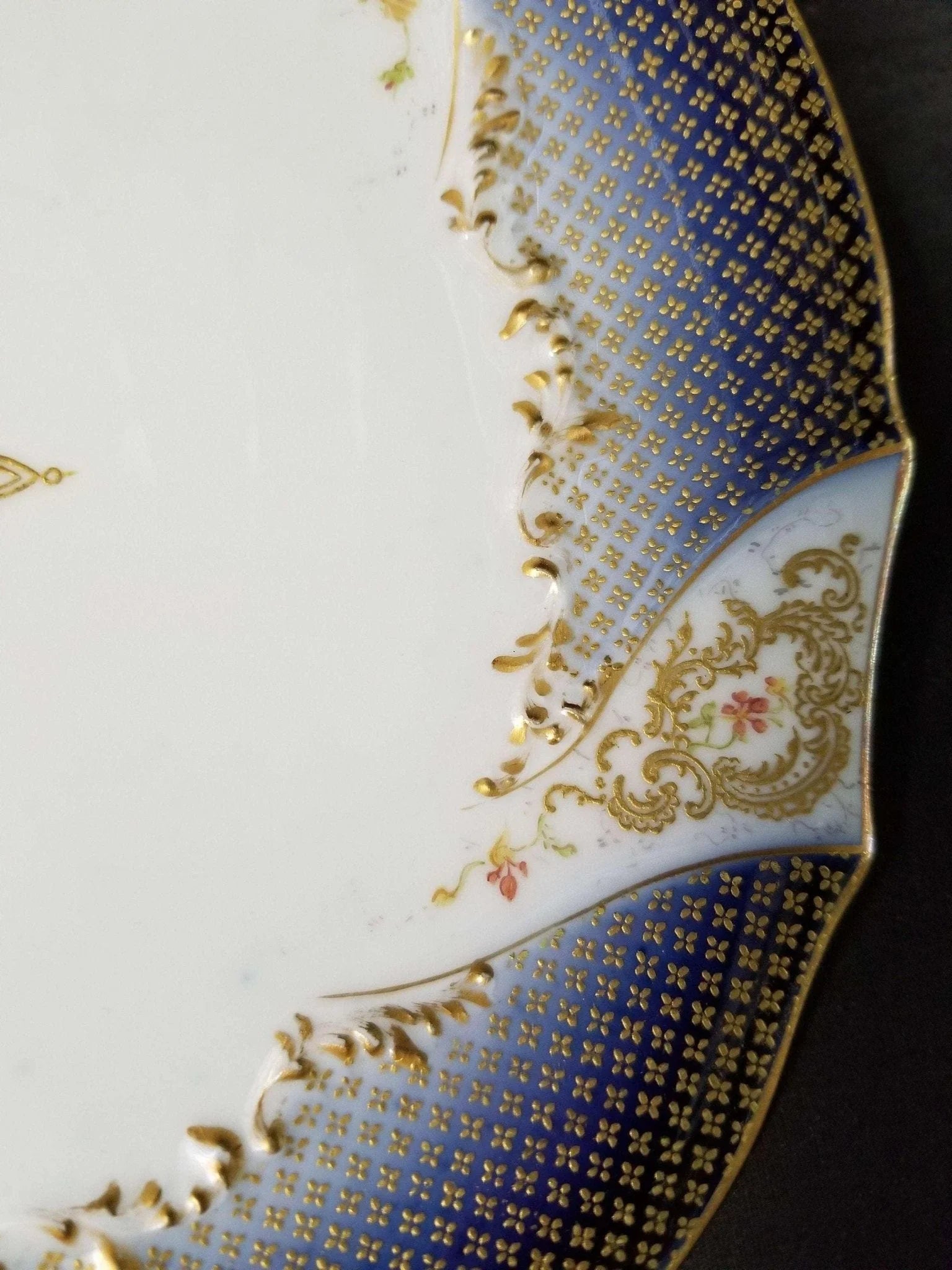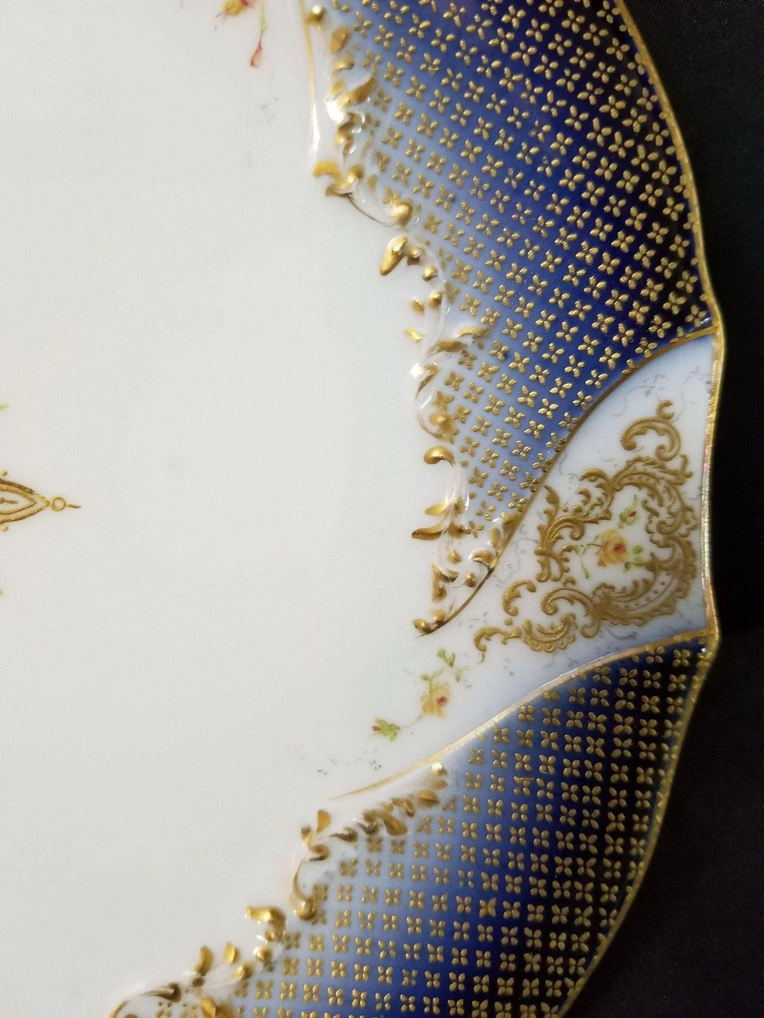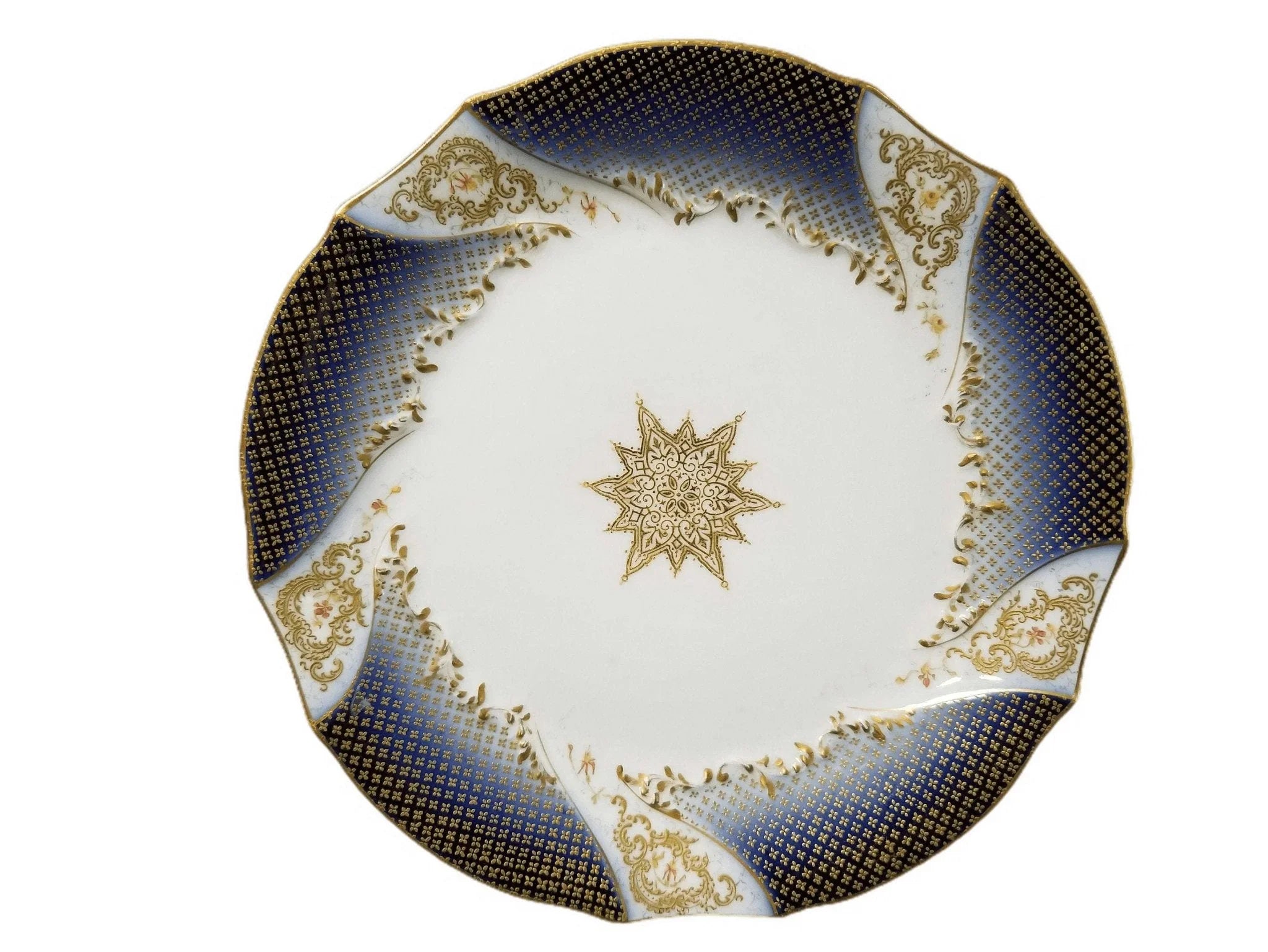 L Straus & Sons Cobalt Limoges Plate 8 3/8" Hand Painted heavy gold c.1900