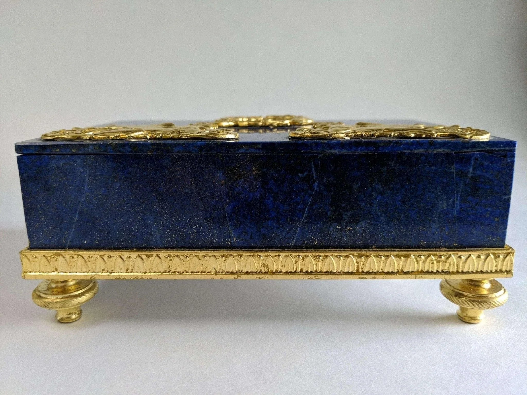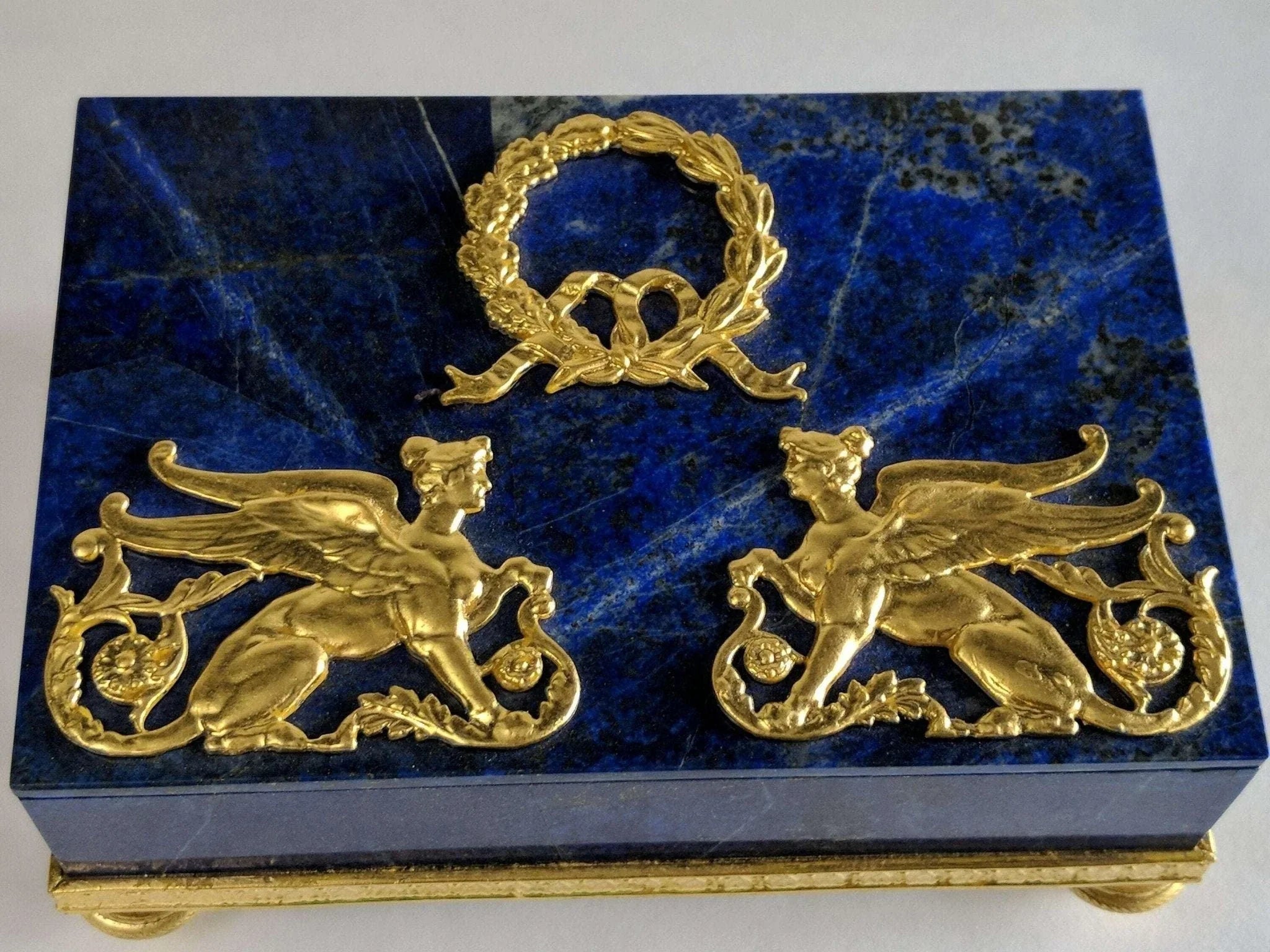 Gilt Bronze Mounted Lapis Lazuli Jewelry Box 6" x4" x 3" tall. No damage or significant wear. 20th century.
